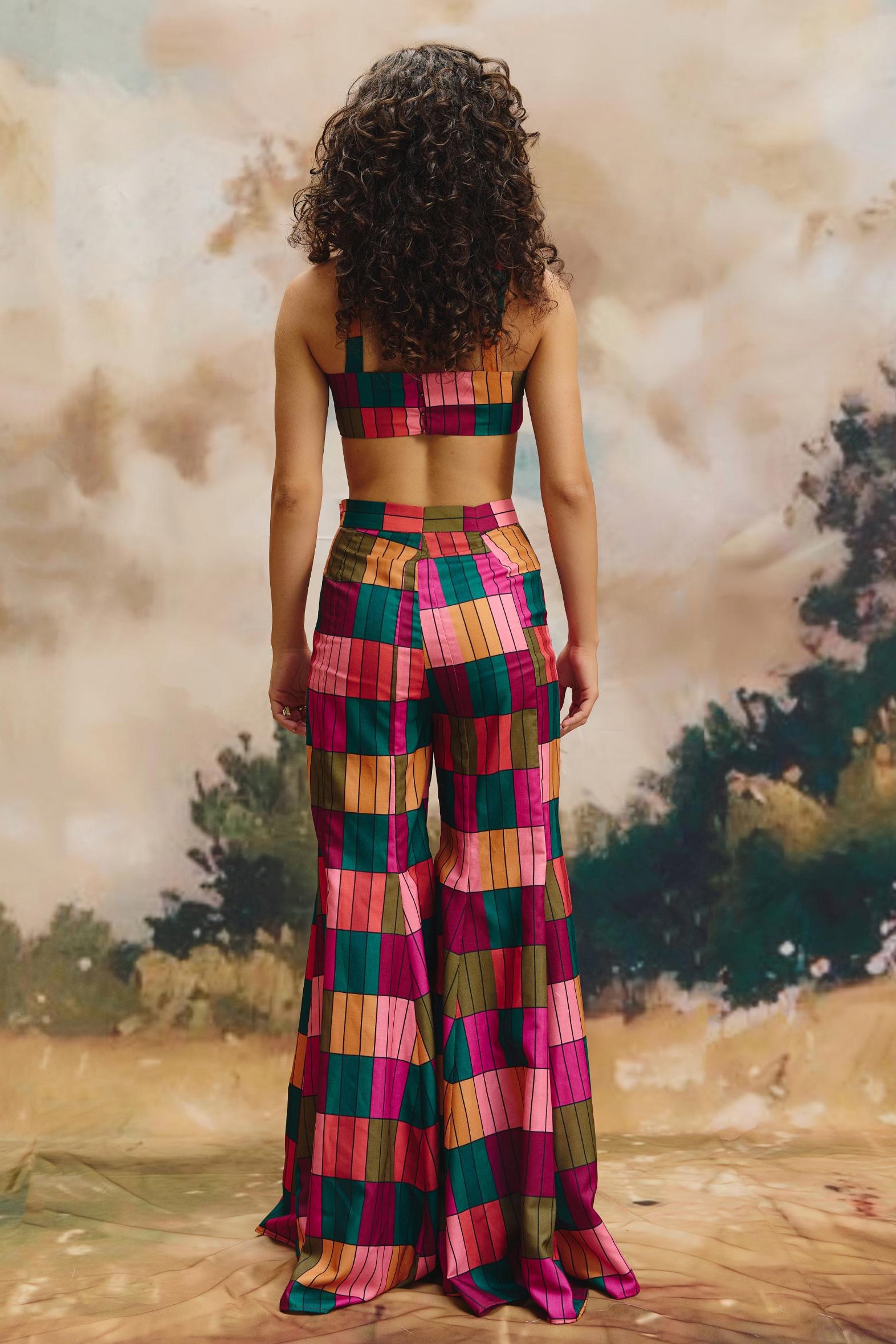 Payal & Zinal’s Multicolor mosaic co-ord set includes a top and bottom in mosaic-inspired multicolor patterns, perfect for casual summer outings, brunches, or day events. Lightweight and comfortable, this co-ord set allows freedom of movement while maintaining a modern silhouette. Pair with sandals or heels for versatile styling. The Multicolor mosaic co-ord set blends playful charm with contemporary design, making it essential for chic summer wardrobes.