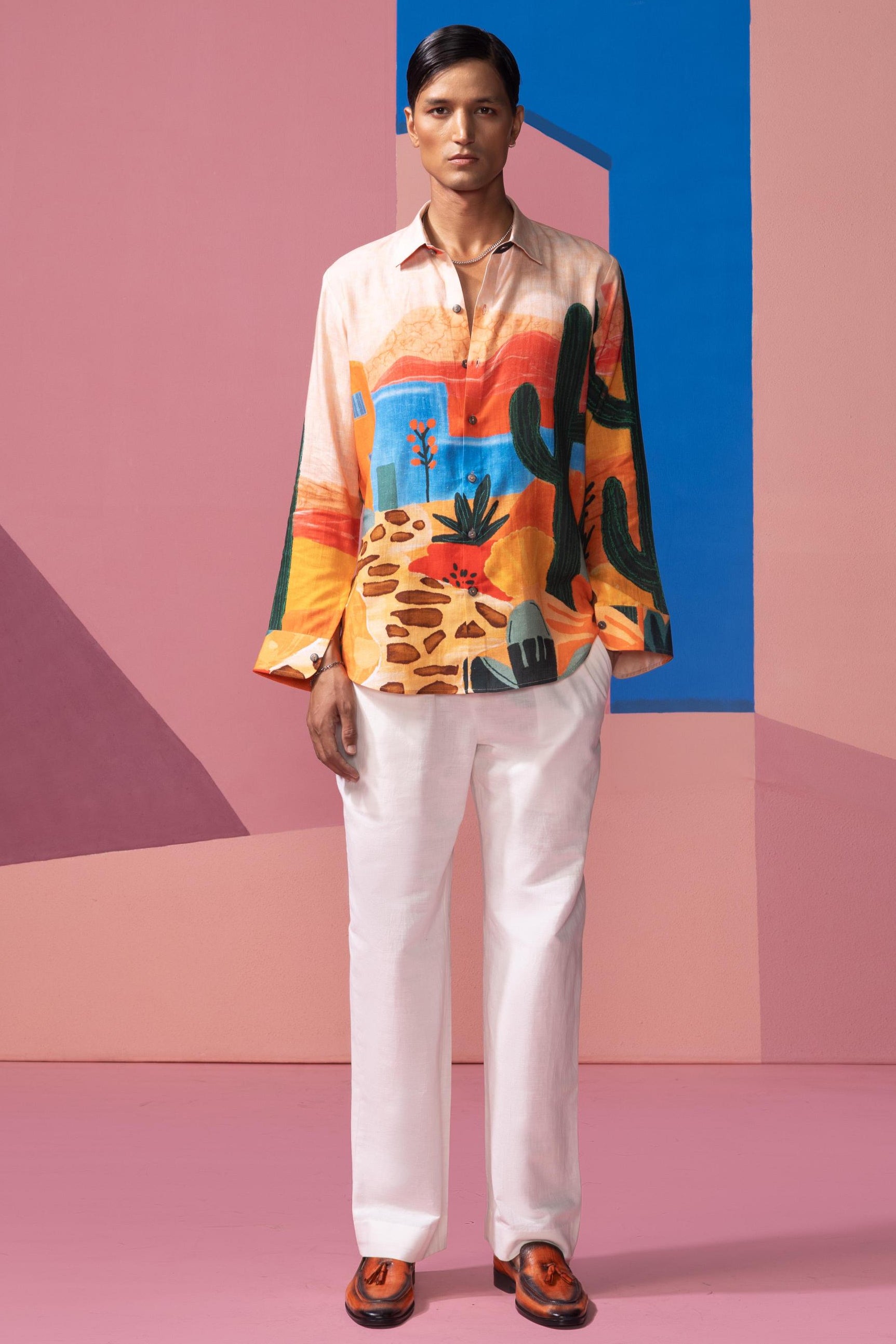 The Peach The Desert Postcard Full Sleeve Shirt is a warm and earthy piece that captures the serene beauty of desert landscapes at sunset. Featuring a soft peach hue paired with desert-inspired prints, this shirt evokes the calm and warmth of vast desert plains bathed in golden light. The full-sleeve design offers comfort and versatility, perfect for layering or wearing on its own. Ideal for those who love the quiet beauty of the desert and the peacefulness of open spaces, this shirt brings a relaxed yet stylish touch to your wardrobe.