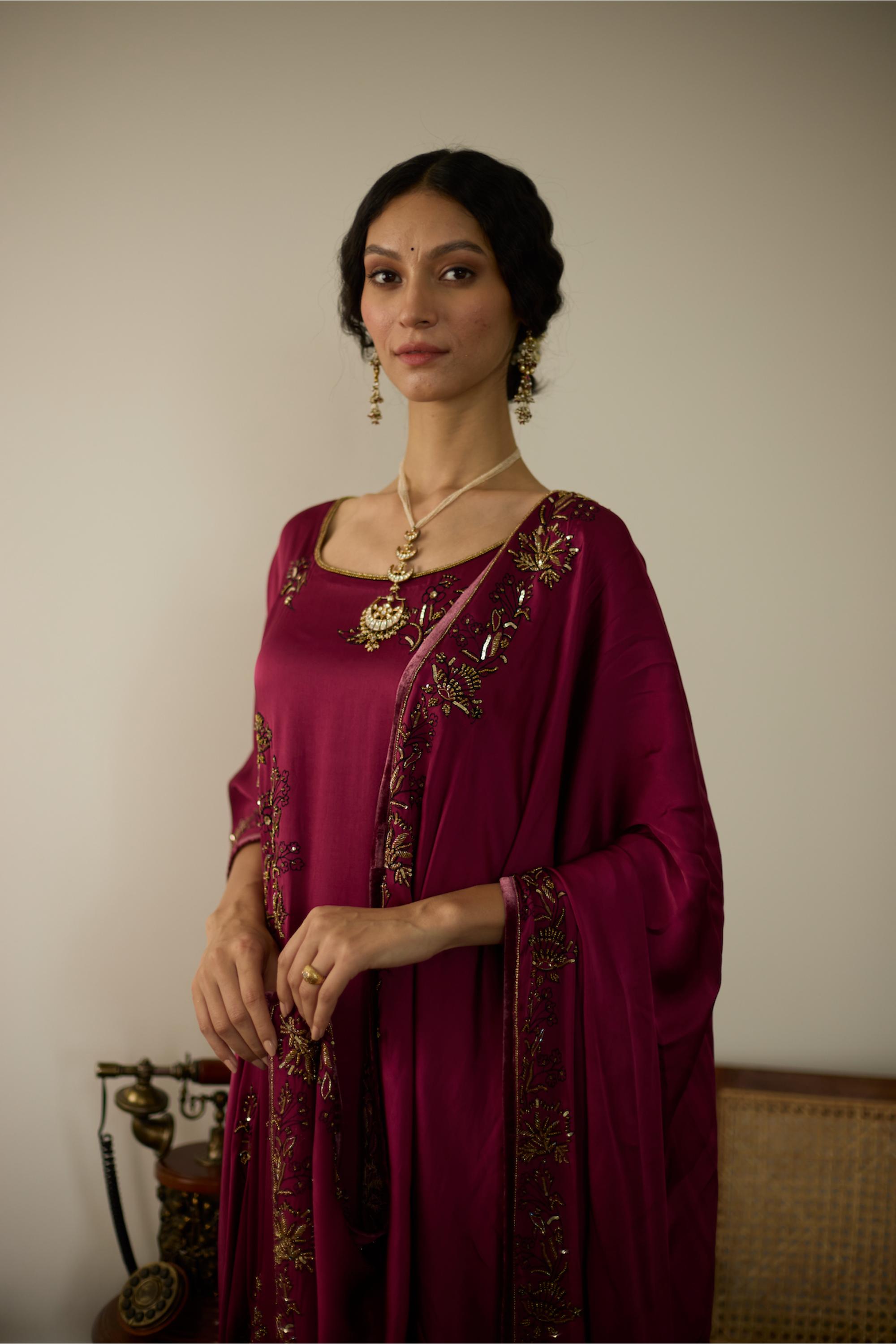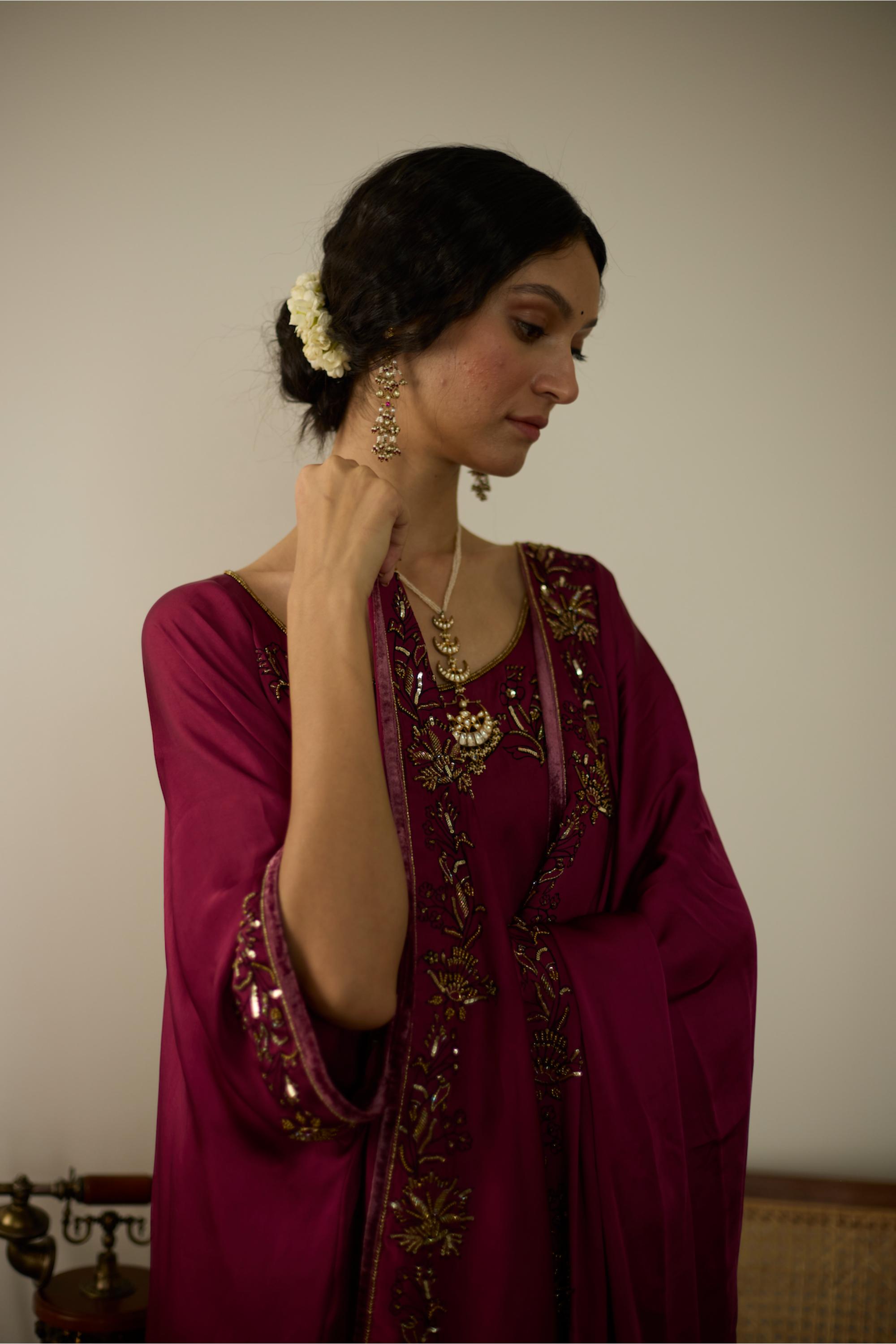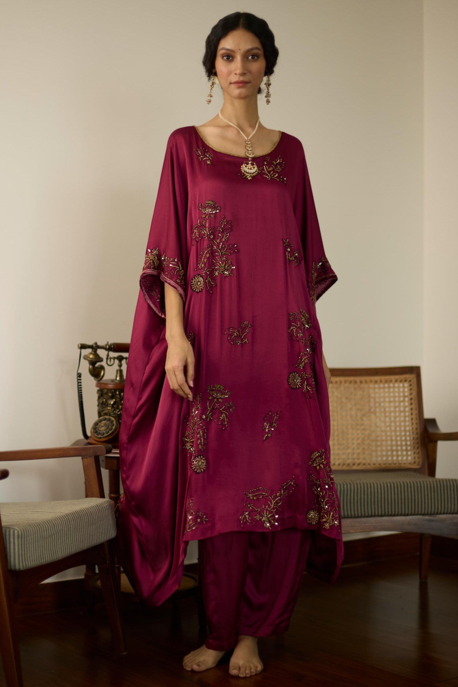 Exude grace and sophistication in the Pink Aarohi Hand-Embroidered Kaftan Set. With delicate embroidery and a flowing silhouette, this ensemble is perfect for festive celebrations, resort wear, and special occasions.