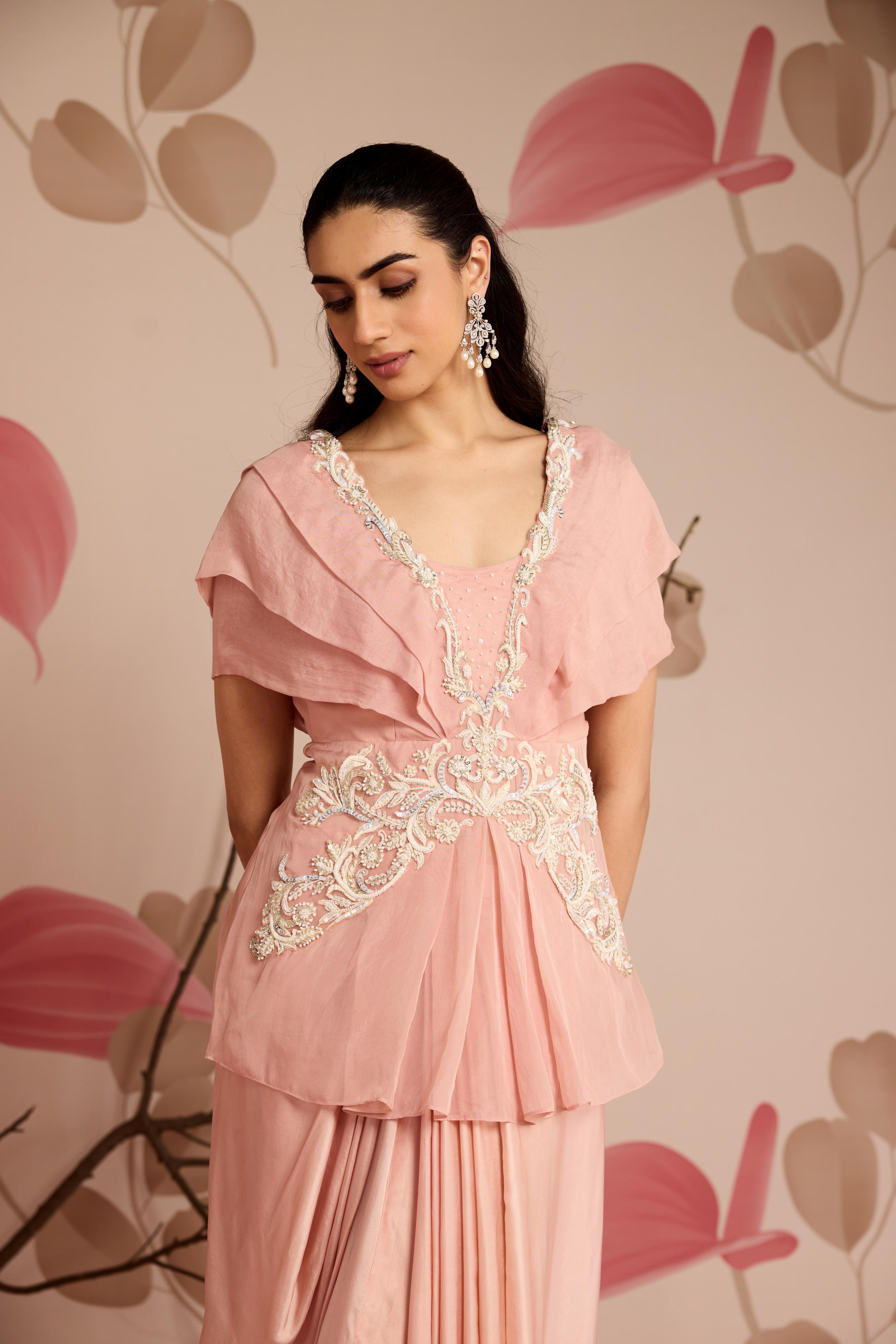 The Pink Amaryllis Under Bloom Peplum Top Set is a vibrant and feminine ensemble that brings together bold design and soft floral inspiration. Featuring a rich pink hue and delicate amaryllis floral accents, the peplum top is crafted to flatter with its structured waist and flowing hemline. Paired with coordinated bottoms, this set offers a sophisticated yet playful look perfect for both casual and festive occasions. The lightweight fabric ensures comfort while maintaining an elegant silhouette. A perfect choice for those who want to add a touch of nature-inspired beauty and contemporary flair to their wardrobe.
