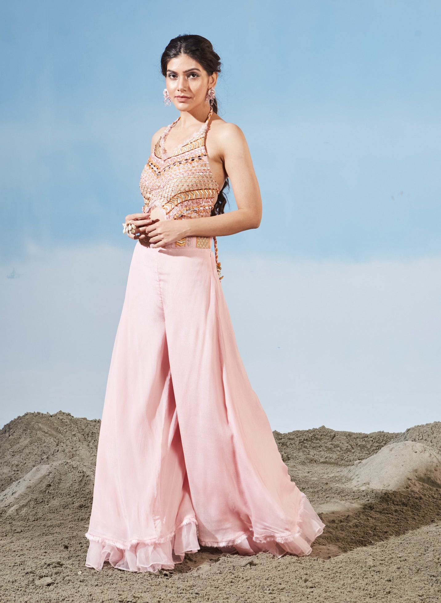 Discover an elegant blend of contemporary design and traditional craftsmanship with our Back-Knotted Embroidered Top, perfectly paired with Double-Layered Pants. The top features a unique back-knotted detail that adds a sophisticated twist to classic embroidery, creating a striking focal point. Complementing this is the double-layered pants, which offer a modern silhouette with added texture and depth. Ideal for both special occasions and stylish everyday wear, this ensemble merges intricate detailing with versatile styling, ensuring you stand out with grace and flair.