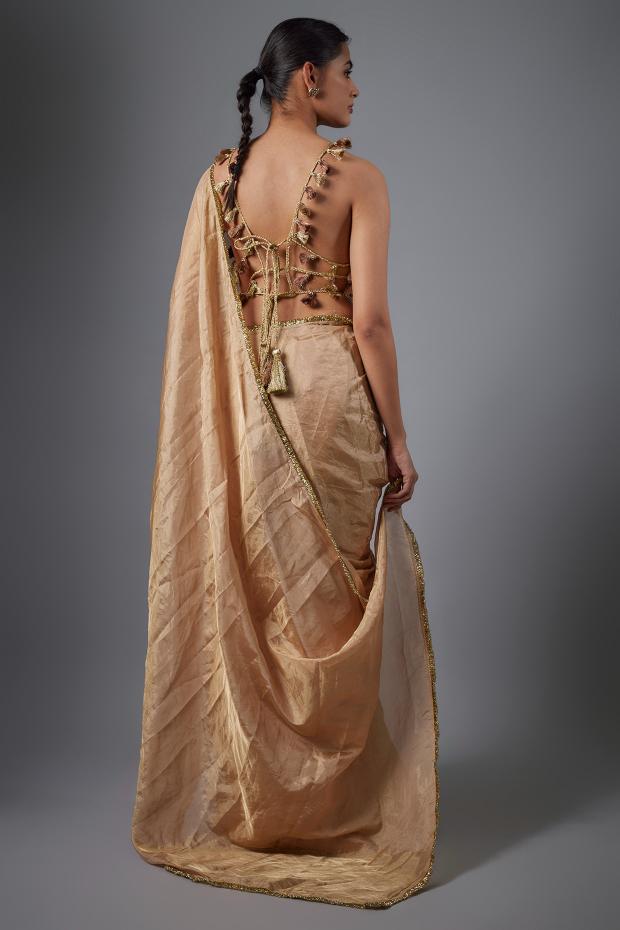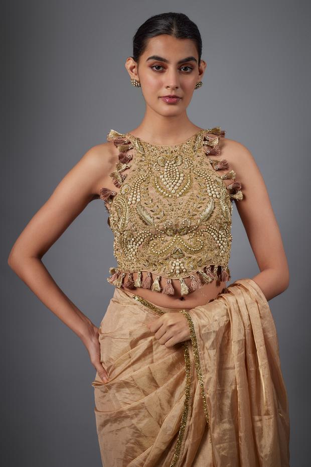 Subtle in tone but rich in presence, the Dull Rose Choli Saree Set blends old-world elegance with new-age charm. The muted rose hue lends a soft, romantic touch, while the structured choli adds a dash of boldness. Thoughtful drapes and delicate detailing make this piece effortlessly graceful. It's an ode to quiet confidence designed for those who command attention without raising their voice.