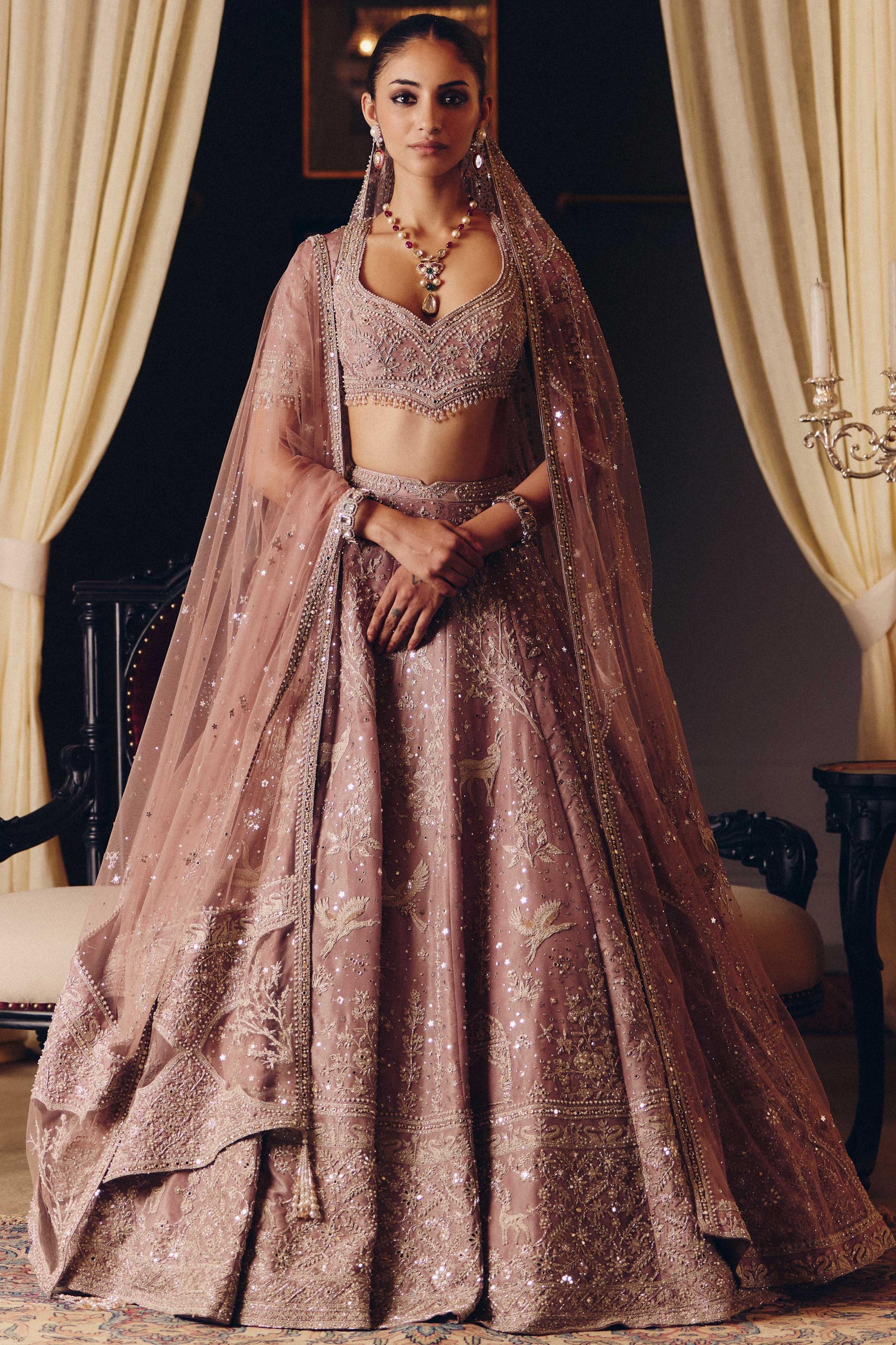 Components: 4 pieces (Lehenga, blouse, dupatta, veil)