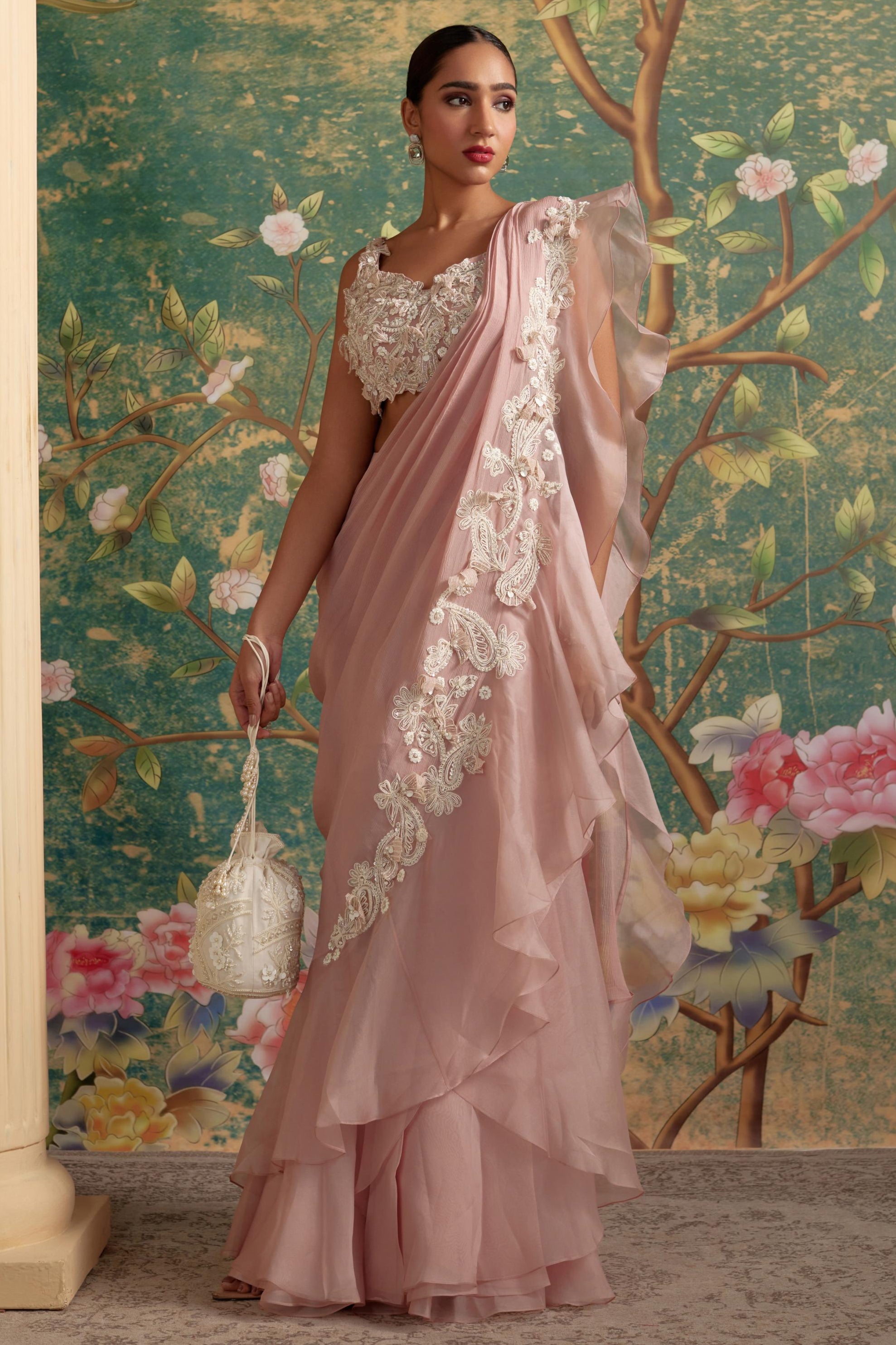 Radiate timeless charm with our Pink Dainty Era Saree Set. This delicate ensemble captures the essence of grace with its soft pink hue and subtle yet intricate embellishments. The saree's refined design drapes elegantly, creating a flattering silhouette that exudes femininity. Ideal for weddings, festive occasions, or intimate celebrations, the Pink Dainty Era Saree Set is perfect for the woman who values elegance, sophistication, and the beauty of understated style.