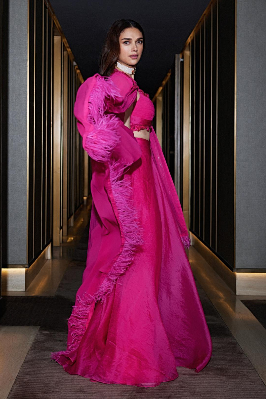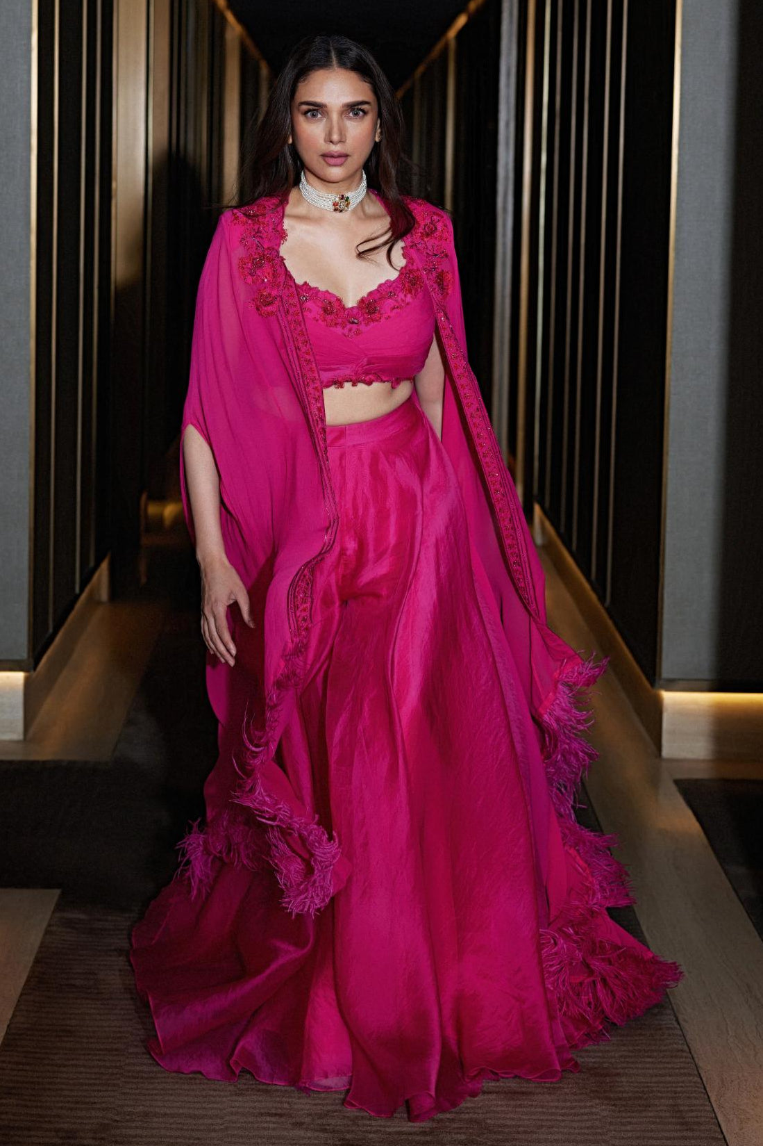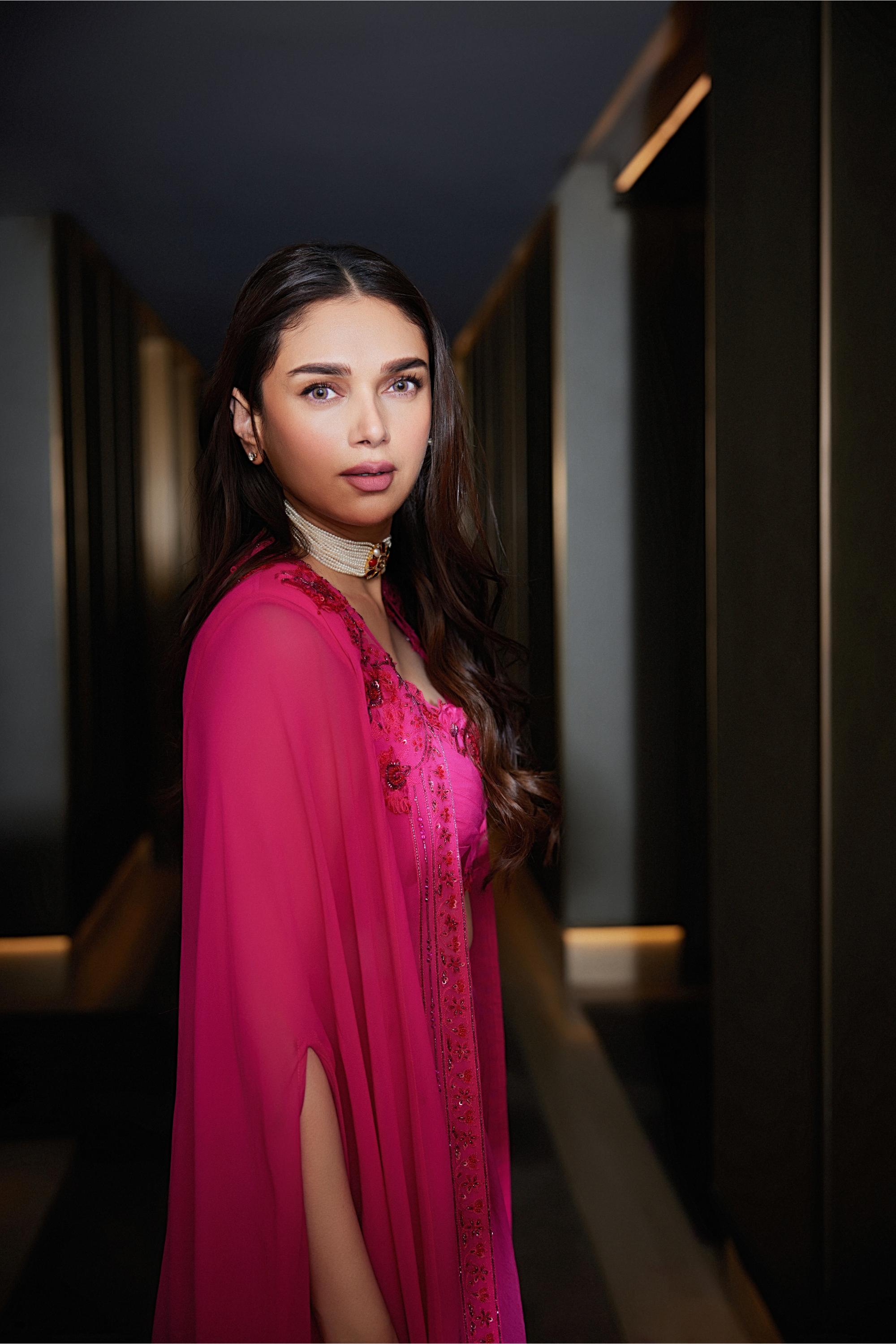 The Pink Dimensions Cajsa Sharara with Cape Set is a vision of ethereal grace and contemporary elegance. Designed in a soft ivory hue, this ensemble pairs a fluid sharara with a delicately detailed cape, creating a silhouette that’s both regal and refreshingly modern. The lightweight drape, subtle shimmer, and airy movement make it perfect for intimate weddings, festive soirées, or elevated daywear. Effortless yet striking—style it with pearl accents, soft waves, and nude-toned makeup for a look that whispers sophistication.