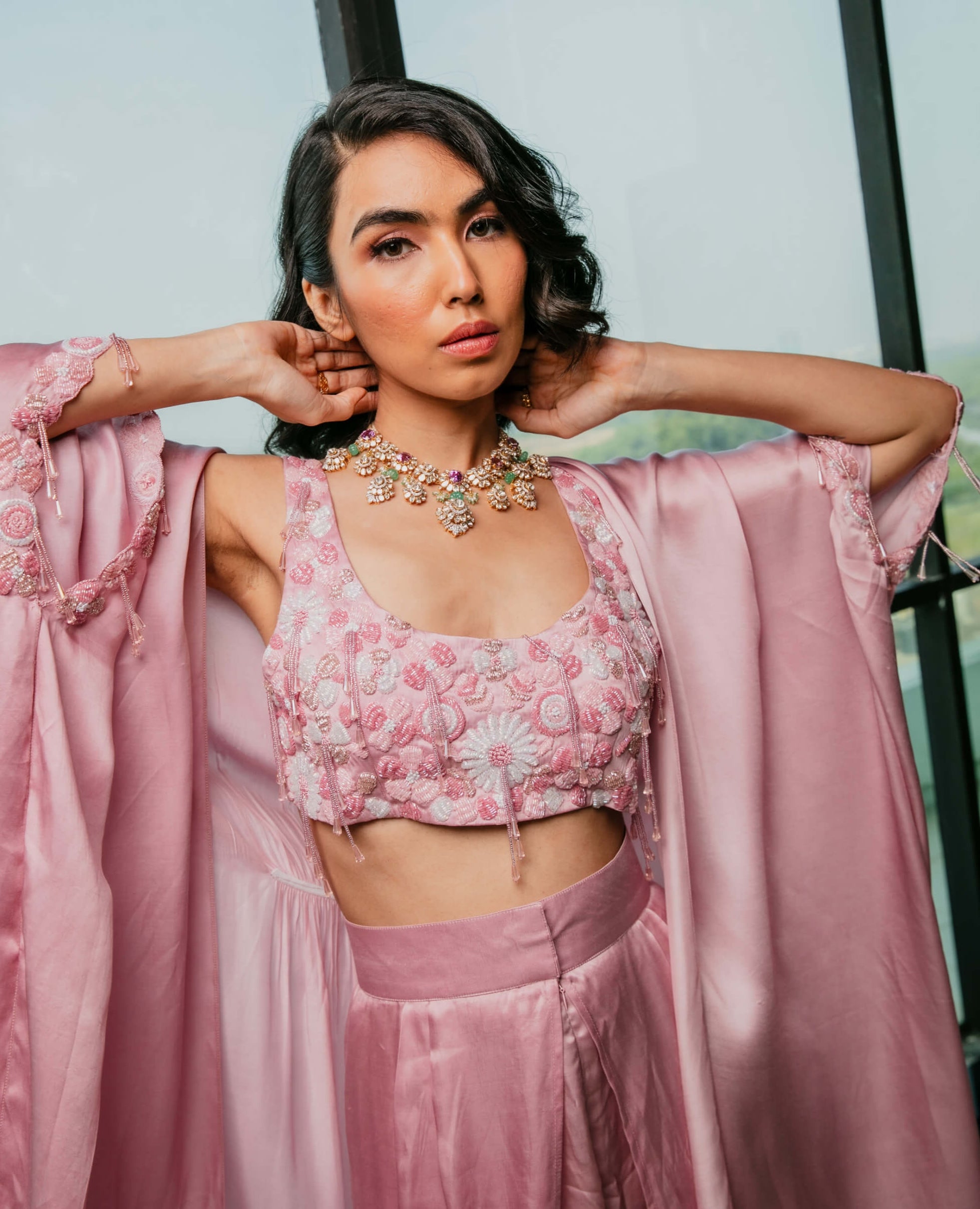 Components: 3 pieces (Cape, blouse and dhoti pants)