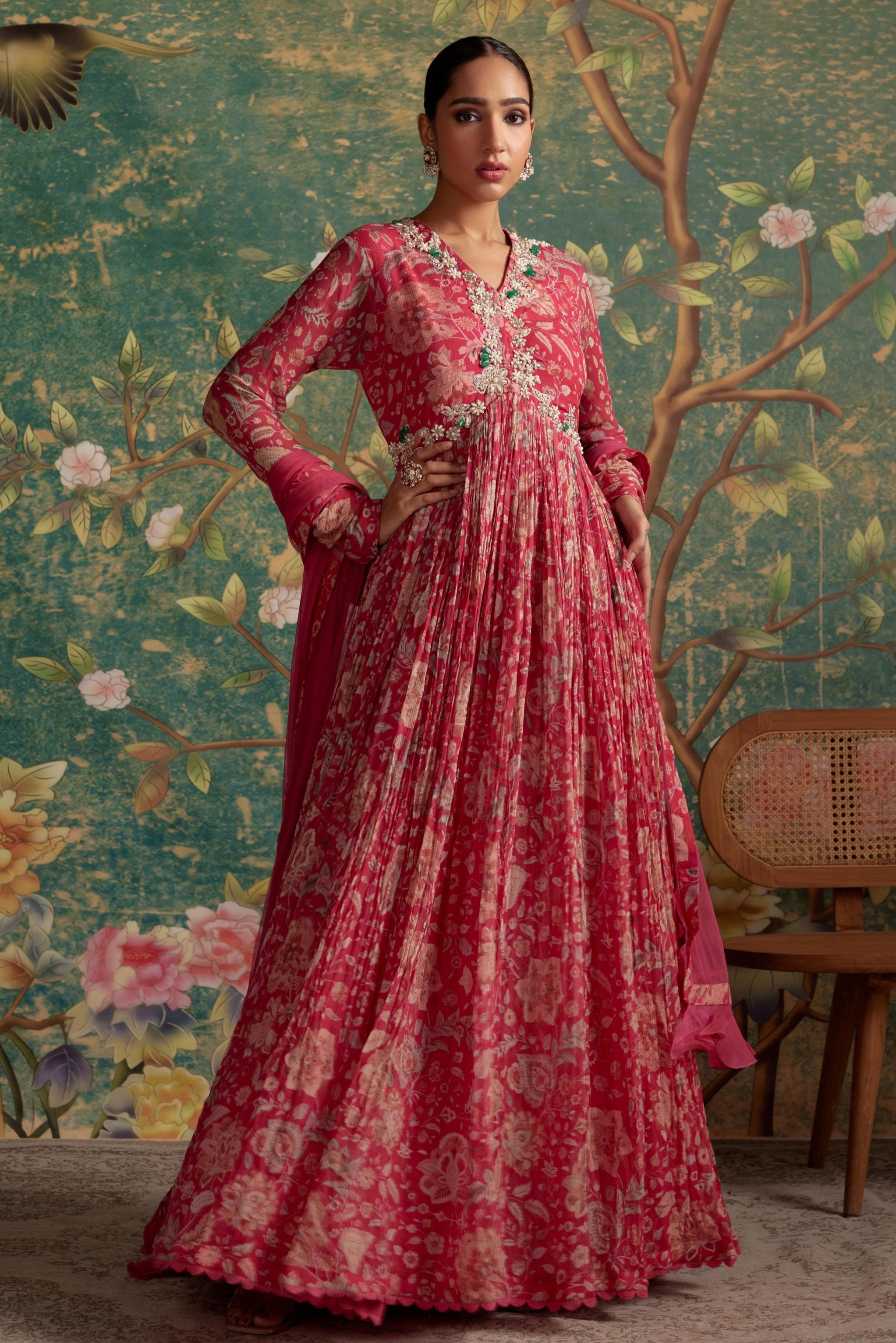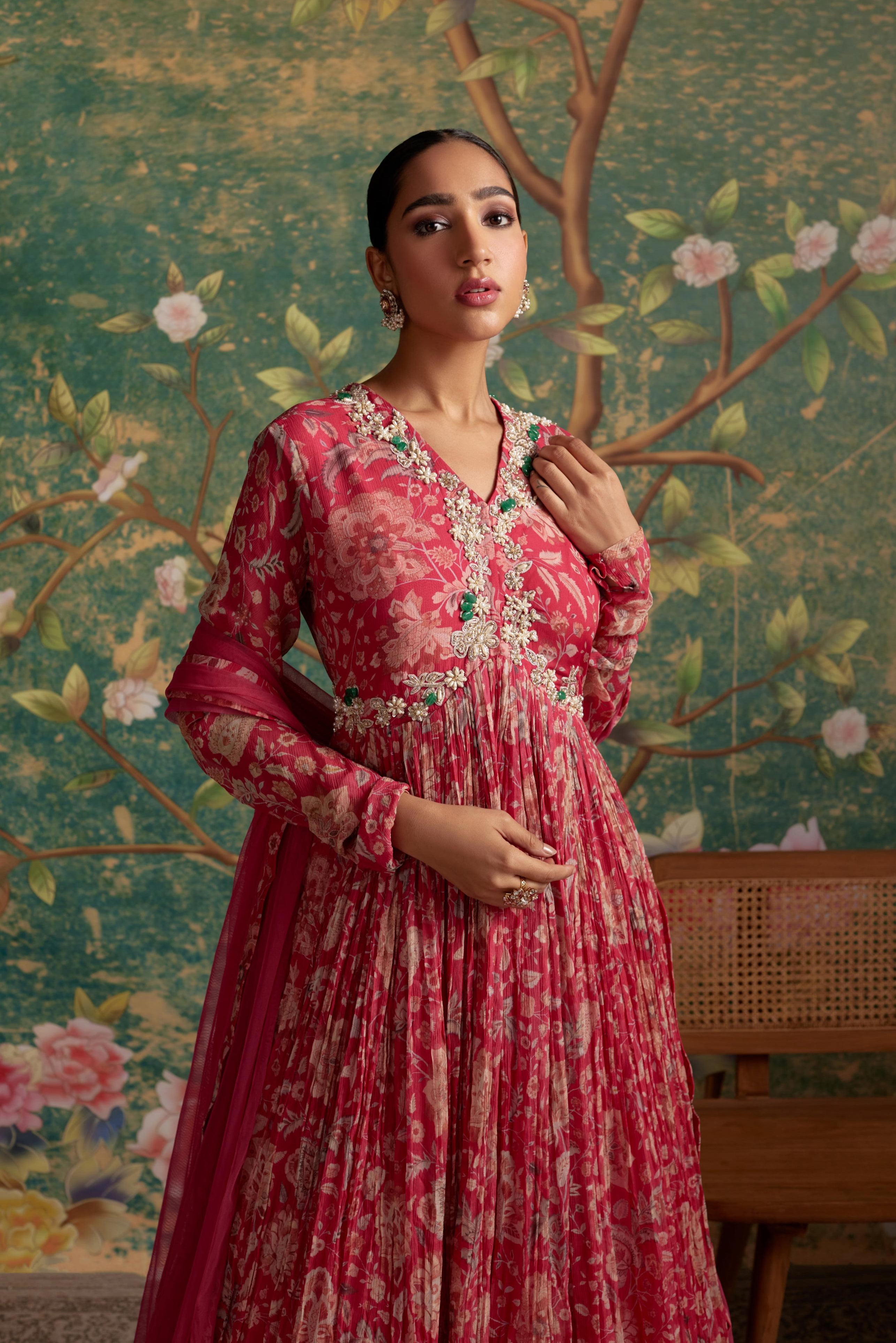 Step into a world of elegance with our Pink Flair Era Anarkali Set. This enchanting ensemble is designed to blend traditional craftsmanship with a contemporary flair. The soft pink fabric drapes beautifully, creating a graceful and flattering silhouette. Intricate detailing adds depth and sophistication, while the flowing Anarkali design offers freedom of movement and timeless charm. Perfect for weddings, festive celebrations, and cultural events, this set is ideal for those who want to showcase a perfect balance of heritage and modern style.