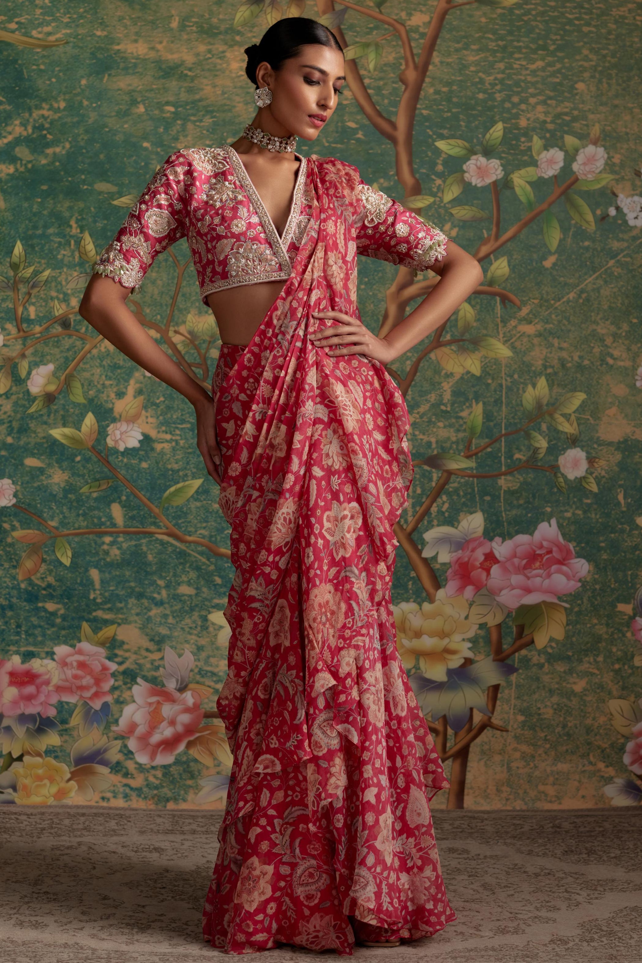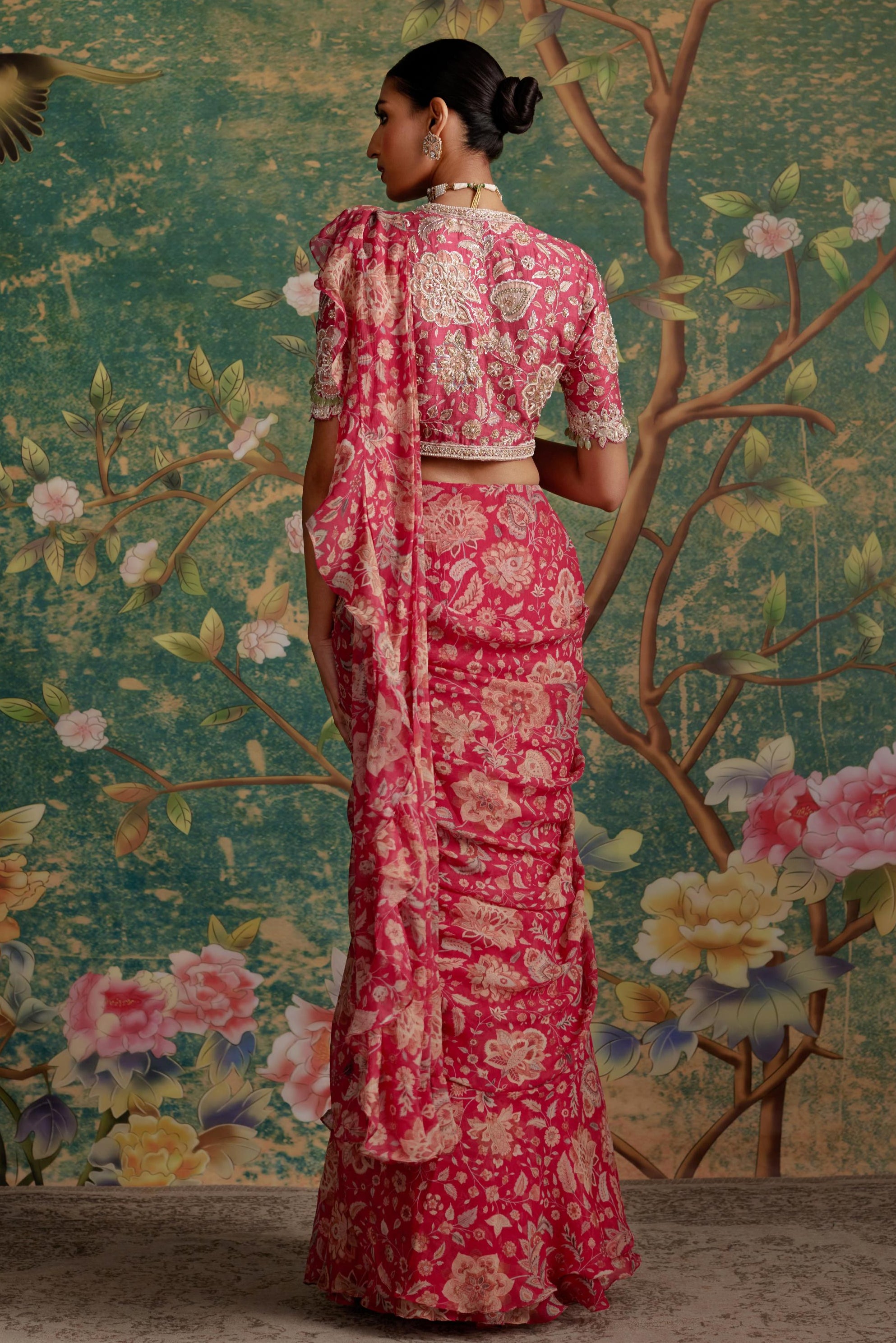Embrace a world of opulence with our Pink Flamboyance Era Saree Set. Designed to captivate, this saree set combines the vibrant beauty of rich pink fabric with luxurious details. The flowing drape and intricate embellishments add depth and grace, making it the perfect choice for grand weddings, festive occasions, or high-end celebrations. The Pink Flamboyance Era Saree Set is ideal for the woman who loves to make a bold statement while celebrating tradition with a modern twist. Elevate your style and shine with this timeless masterpiece.
