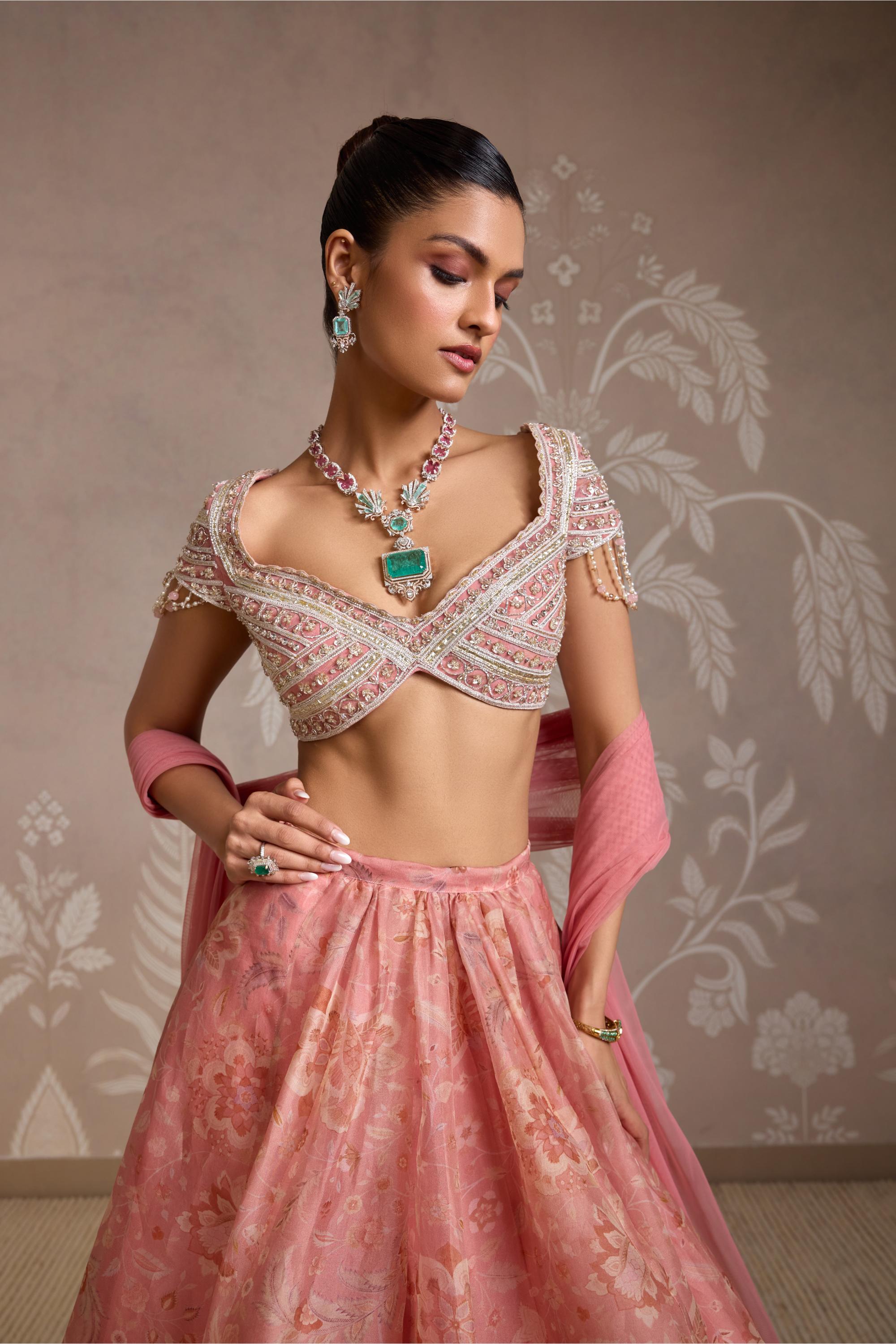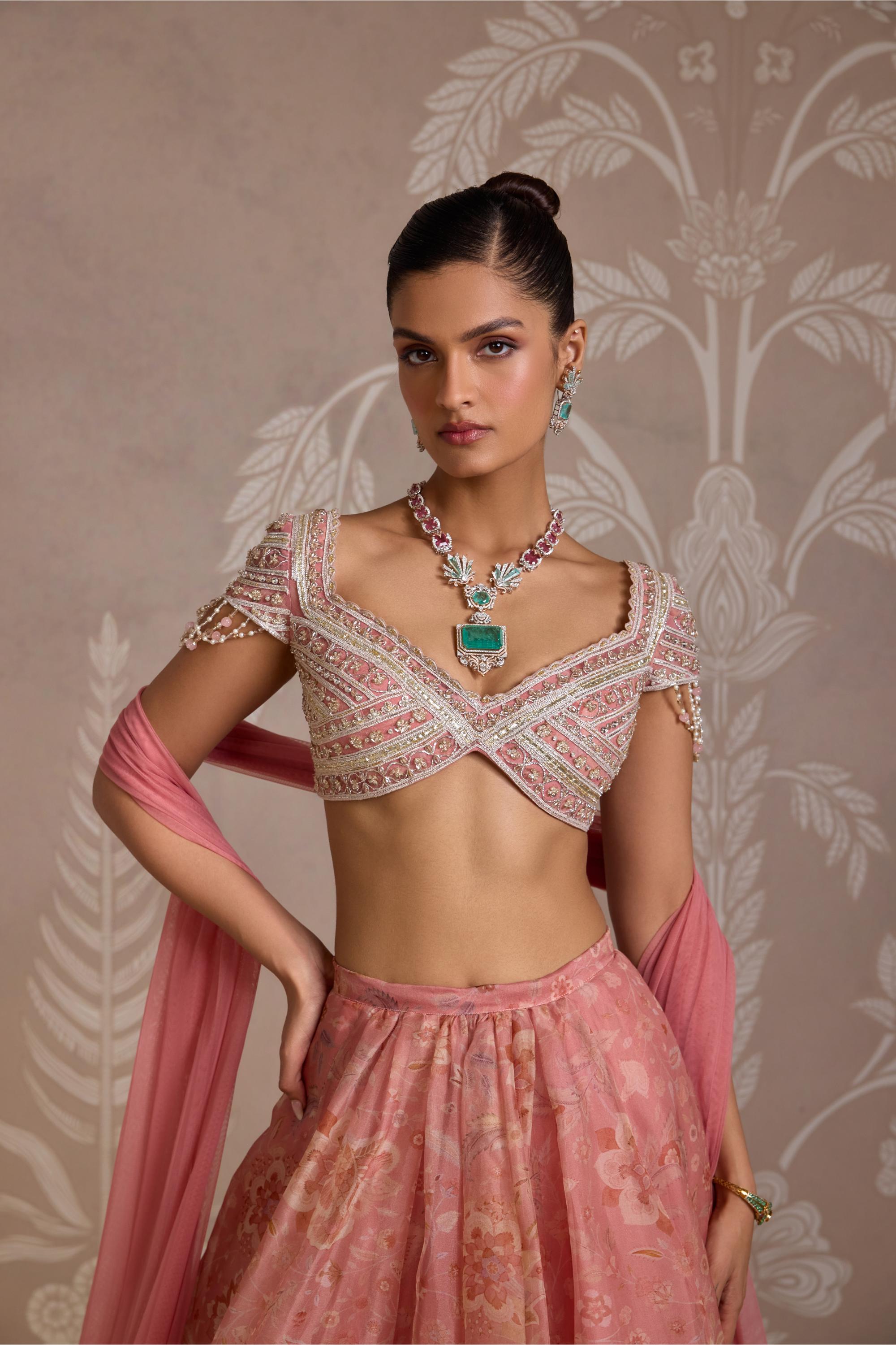 The Pink Folds Blouse with Lehenga is a chic ensemble that combines modern detailing with traditional charm. Crafted in a soft pink hue, the blouse features structured folds that add texture and dimension, perfectly paired with a flowing lehenga. Ideal for weddings, festive occasions, or special celebrations, this set offers elegance and style with a contemporary edge. A perfect choice for those who appreciate refined craftsmanship and graceful silhouettes.