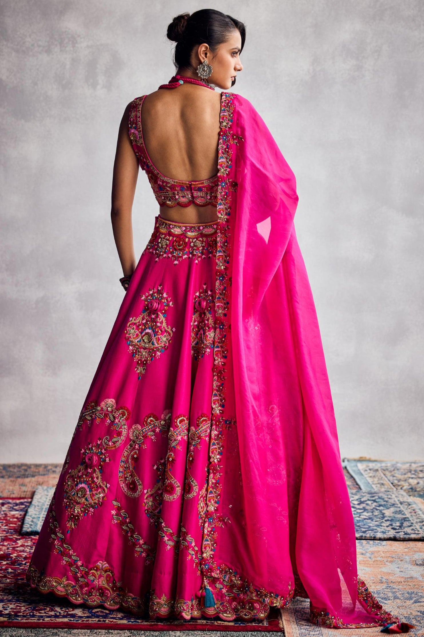 Whimsical and full of charm, the Pink Forever Vows Floral Embroidery Lehenga Set is a blooming tribute to love and femininity. Set in a delicate blush hue, this lehenga is adorned with intricate floral embroidery that evokes garden romance and artisanal beauty. Perfect for pre-wedding festivities, daytime vows, or a modern pastel bridal look, it combines traditional craftsmanship with contemporary elegance. For the bride or guest who adores floral detail and effortless grace, this lehenga is pure poetry in motion.