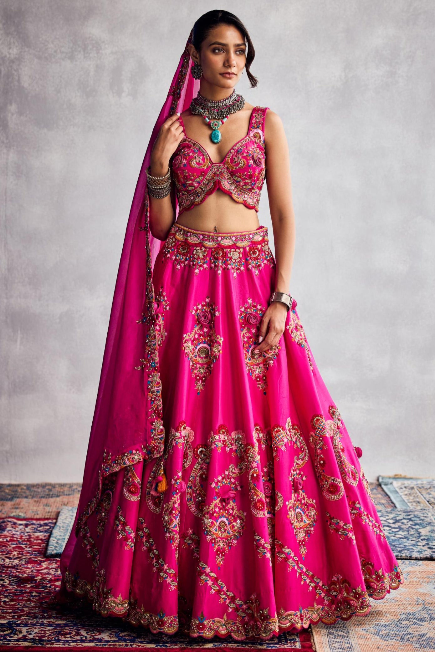 Components: 3 pieces (Lehenga, blouse, dupatta)