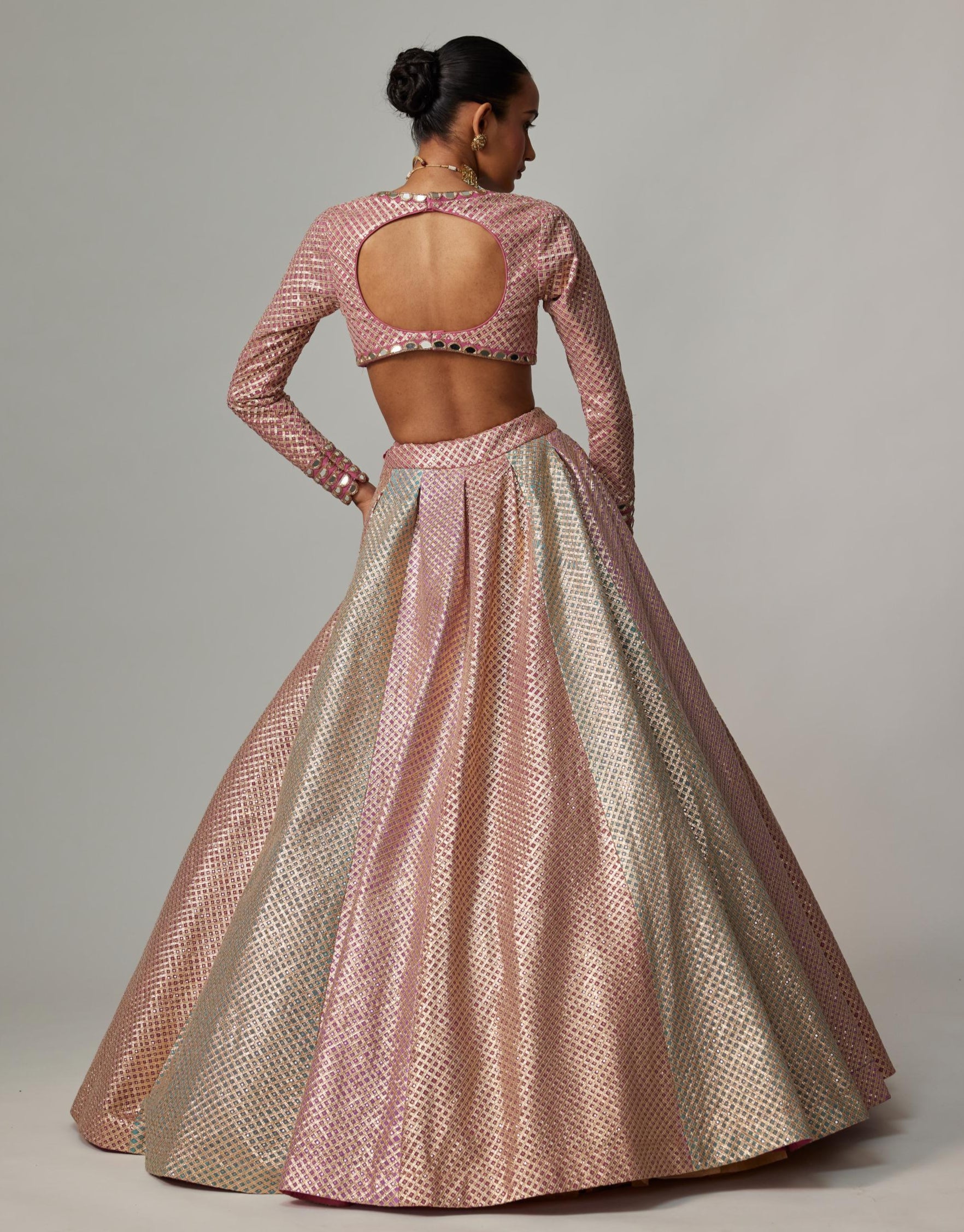 Festive, radiant, and youthfully elegant—the Pink Multicolor Noorani Metallic Crop Top with Skirt Set is designed to dazzle. Featuring a beautifully crafted crop top with multicolor metallic embroidery and a flowy pink skirt, this ensemble strikes the perfect balance between traditional craft and modern silhouette. Whether for mehendi, haldi, or destination wedding celebrations, this set is made for the woman who brings color, confidence, and sparkle wherever she goes.\