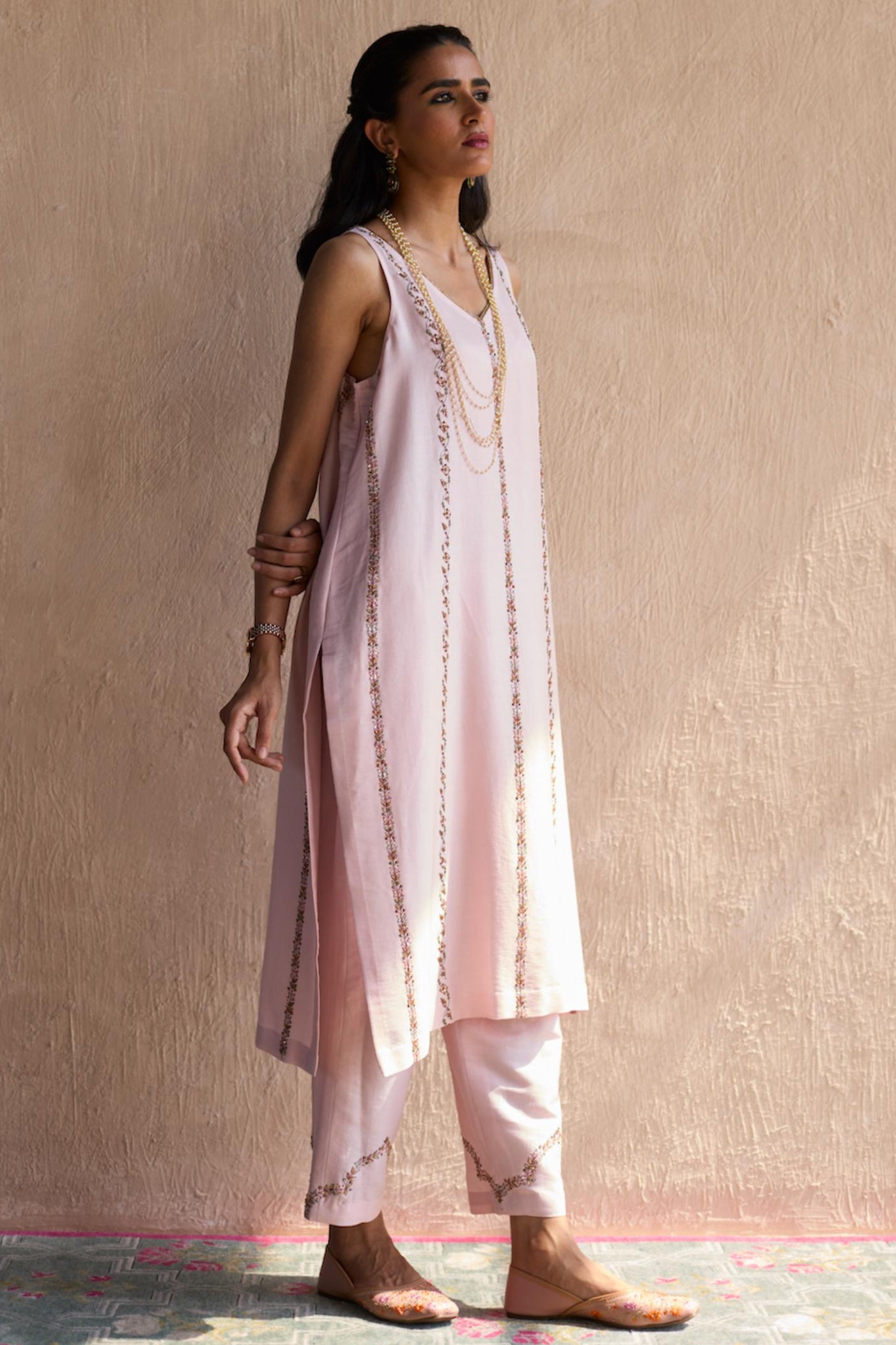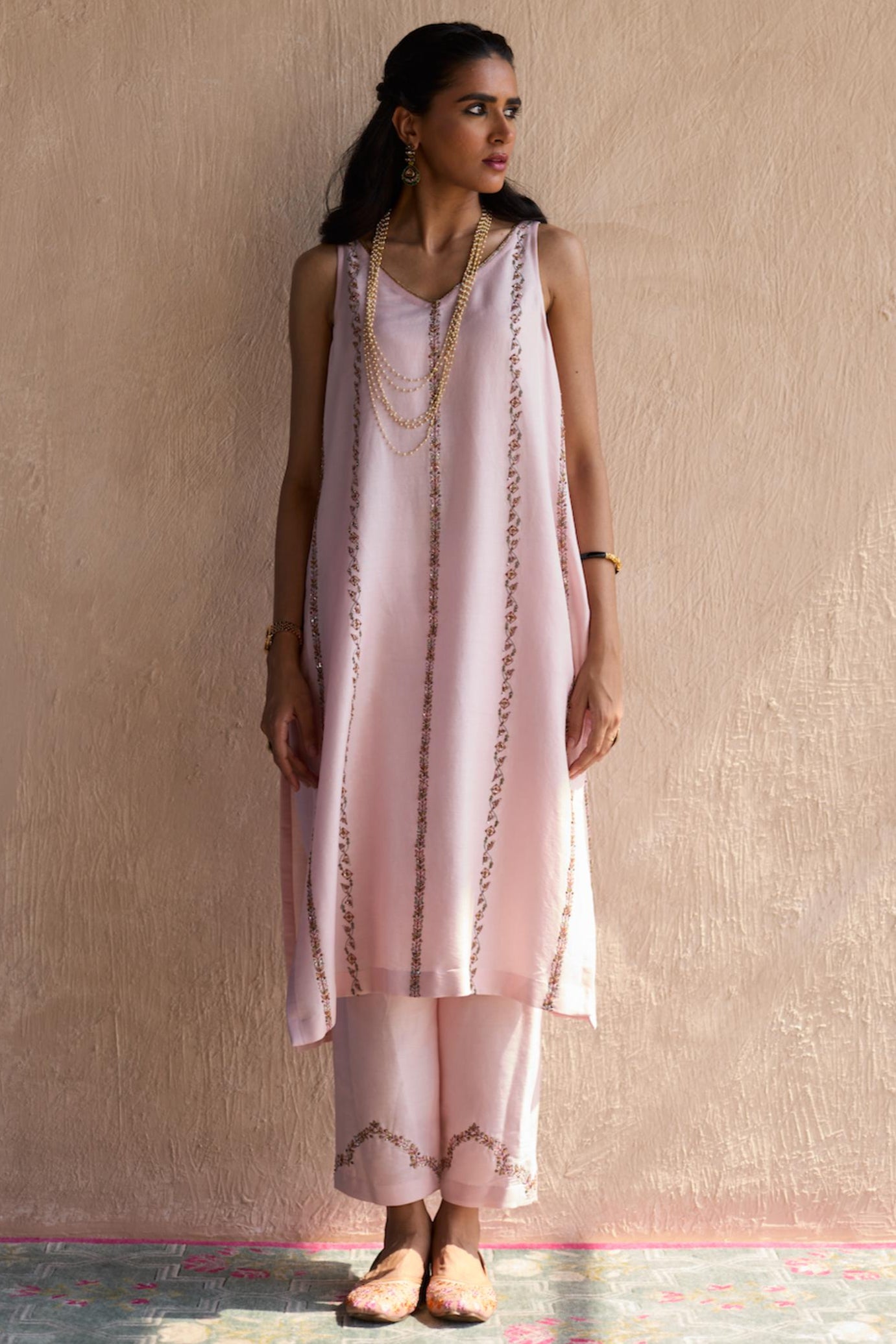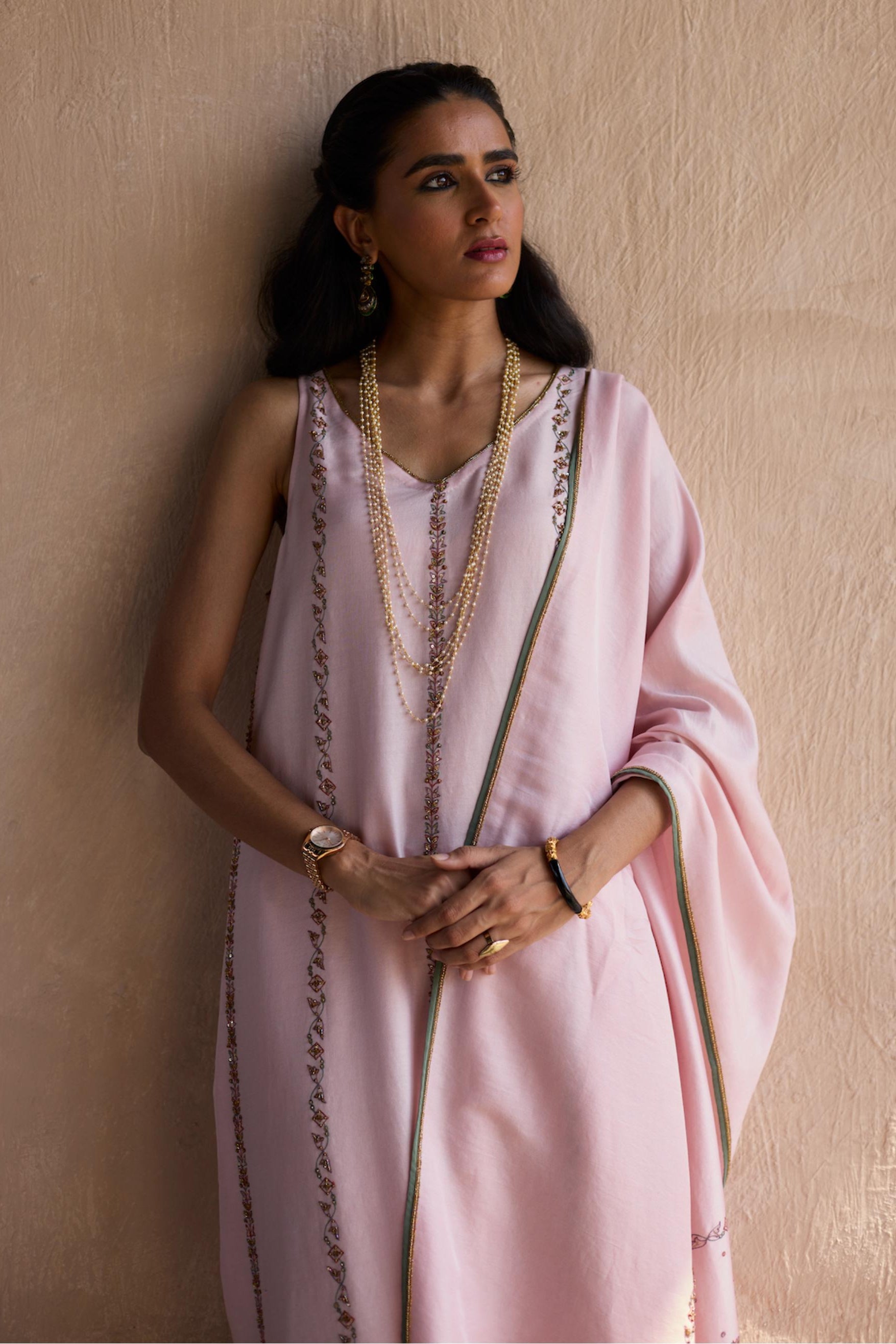 The Pink Nidhi Suit is a stunning blend of modern sophistication and classic charm. The soft pink fabric is elevated by intricate embroidery that adds a touch of elegance to the entire look. Designed with comfort in mind, this suit features a flattering silhouette, making it perfect for any festive occasion or intimate celebration. The delicate details and flowing design create an effortlessly graceful appearance. Pair it with minimal jewelry for a refined look or go bold with statement pieces to elevate your style.