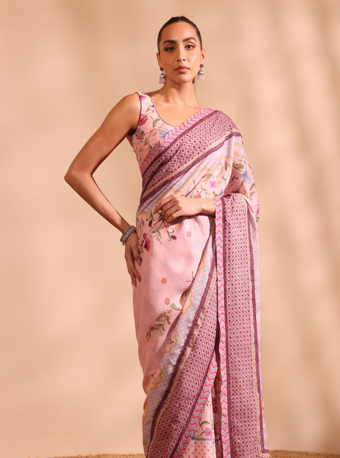 The Pink Niri Malgudi Days Saree is a charming and elegant piece that brings the nostalgic essence of "Malgudi Days" to life. Featuring a soft pink base, this saree is adorned with delicate, vintage-inspired prints that evoke the simplicity and beauty of rural life and traditional Indian craftsmanship. The gentle pink hue adds a feminine touch, making it perfect for daytime festivities, cultural gatherings, or intimate celebrations. With its graceful drape and timeless design, this saree offers both comfort and elegance, making it a perfect choice for those who appreciate heritage and modern style intertwined.