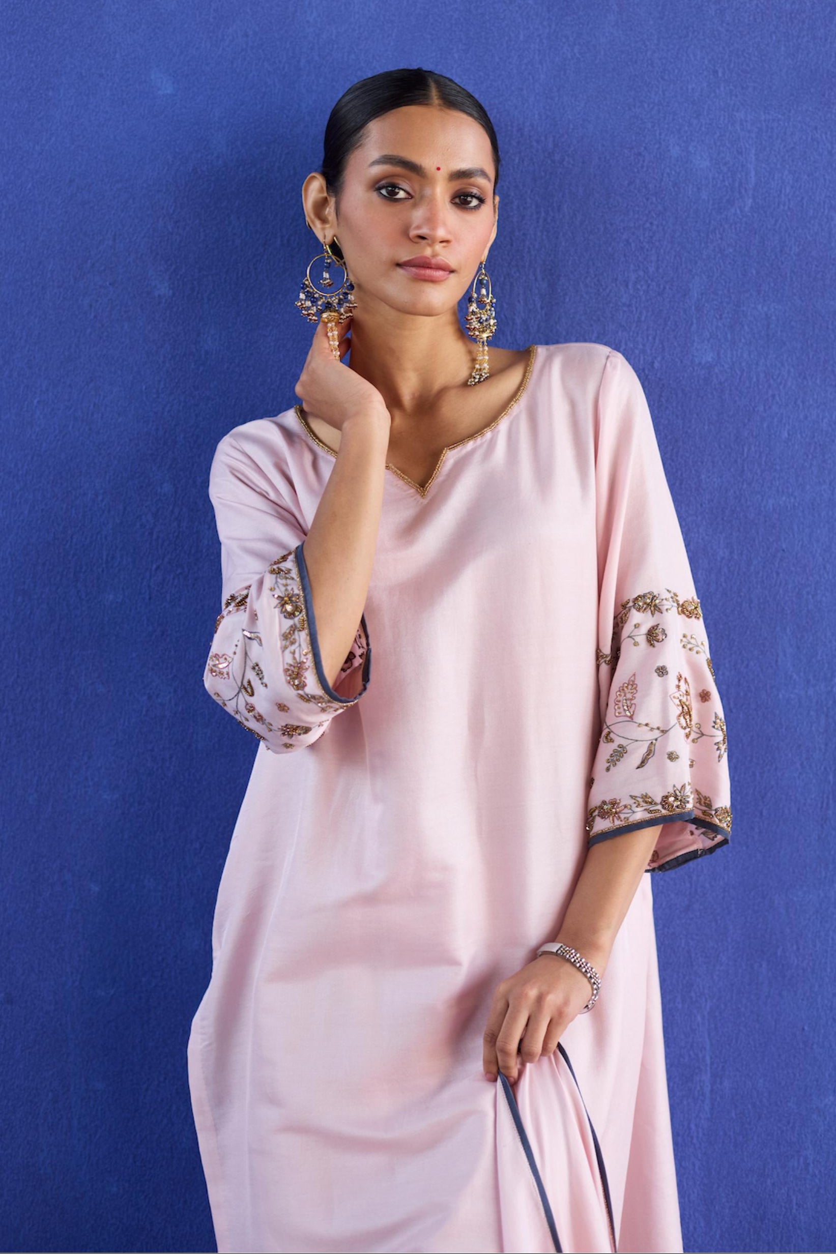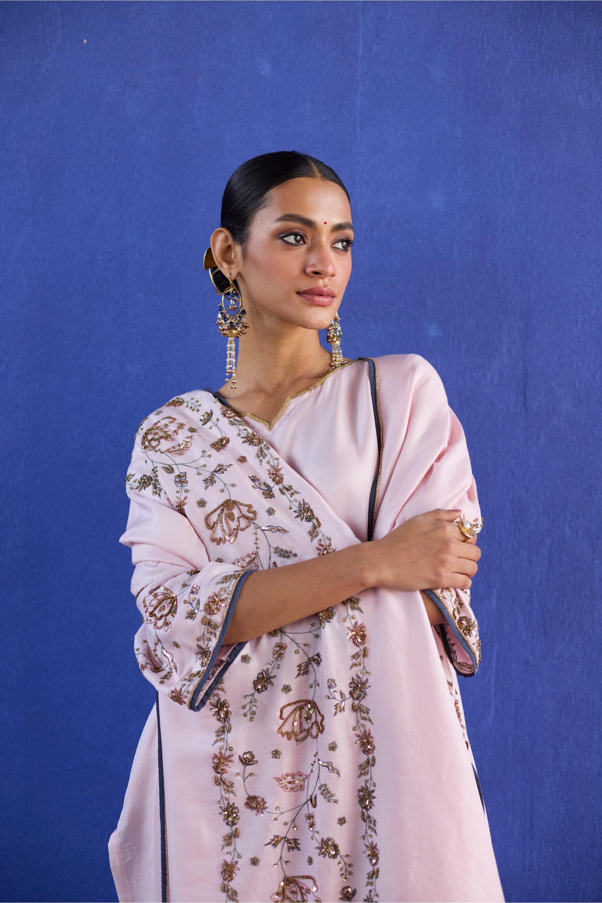 The Pink Noori Suit is a celebration of grace in a soft, romantic hue. Crafted for comfort and elegance, its flowing silhouette flatters with ease while intricate detailing lends a touch of refined charm. Perfect for festive mornings or sundown gatherings, it captures effortless femininity. Pair it with traditional jhumkas or contemporary accents for a versatile statement. A wardrobe essential for moments that call for quiet beauty.