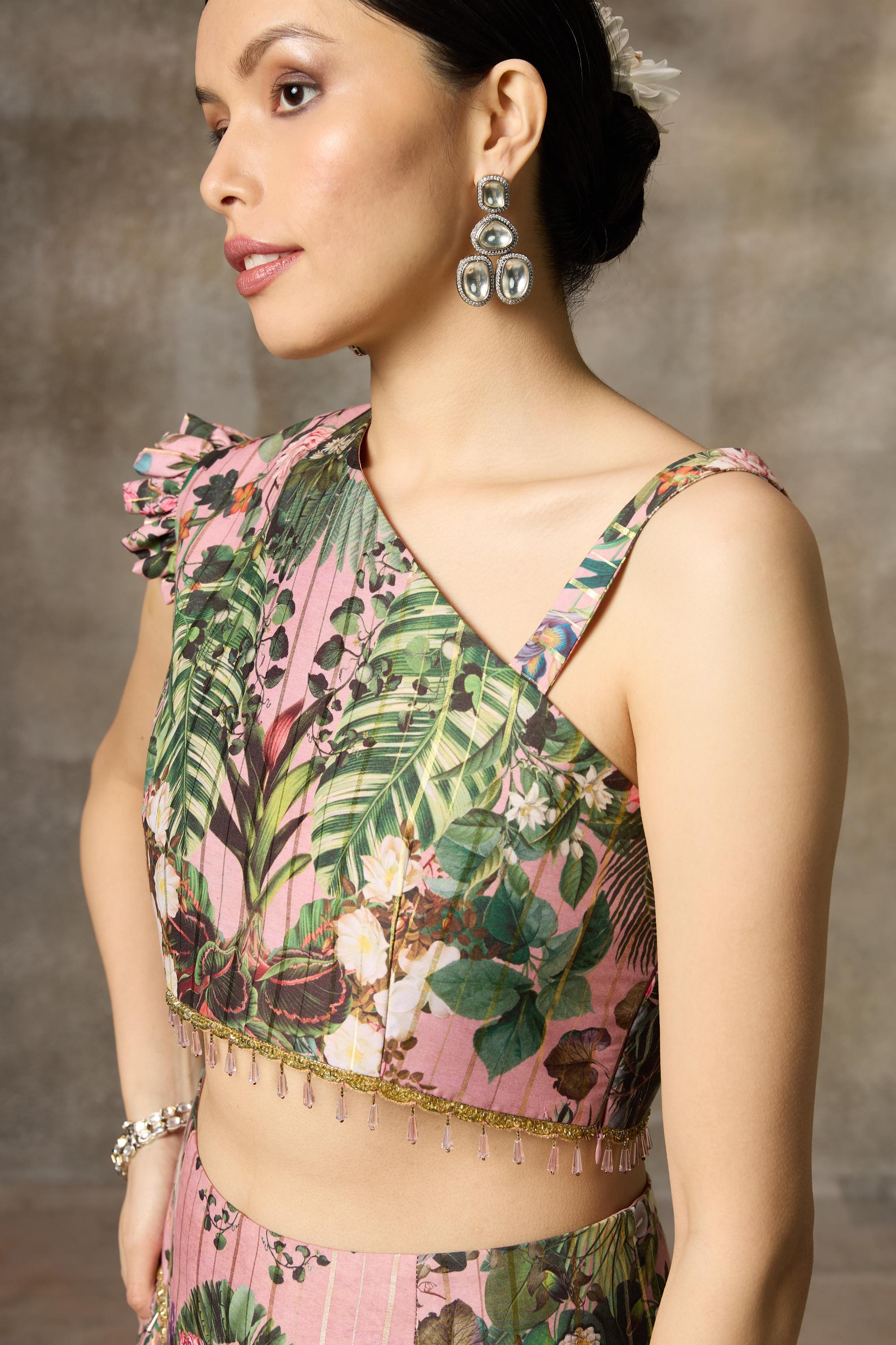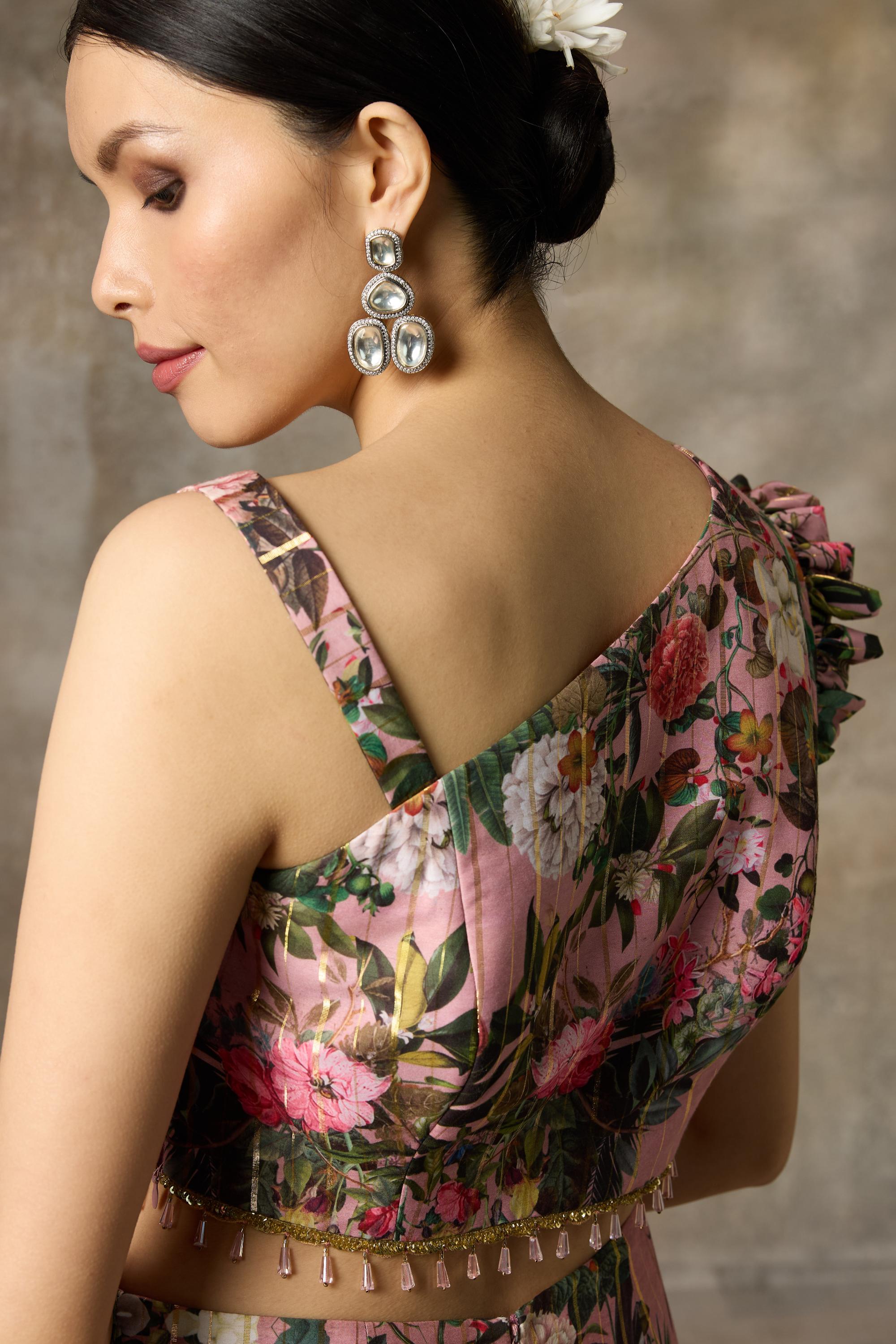 The Pink One-Shoulder Printed Skirt and Top set is a striking fusion of femininity and modern edge. Designed in a soft pink hue with playful yet elegant prints, the one-shoulder top adds a bold, asymmetrical flair, making it perfect for standout occasions. The coordinating skirt complements the top with a fluid, flattering silhouette that moves gracefully with every step. Ideal for cocktail parties, beach weddings, or festive celebrations, this ensemble brings together bold style and effortless charm.