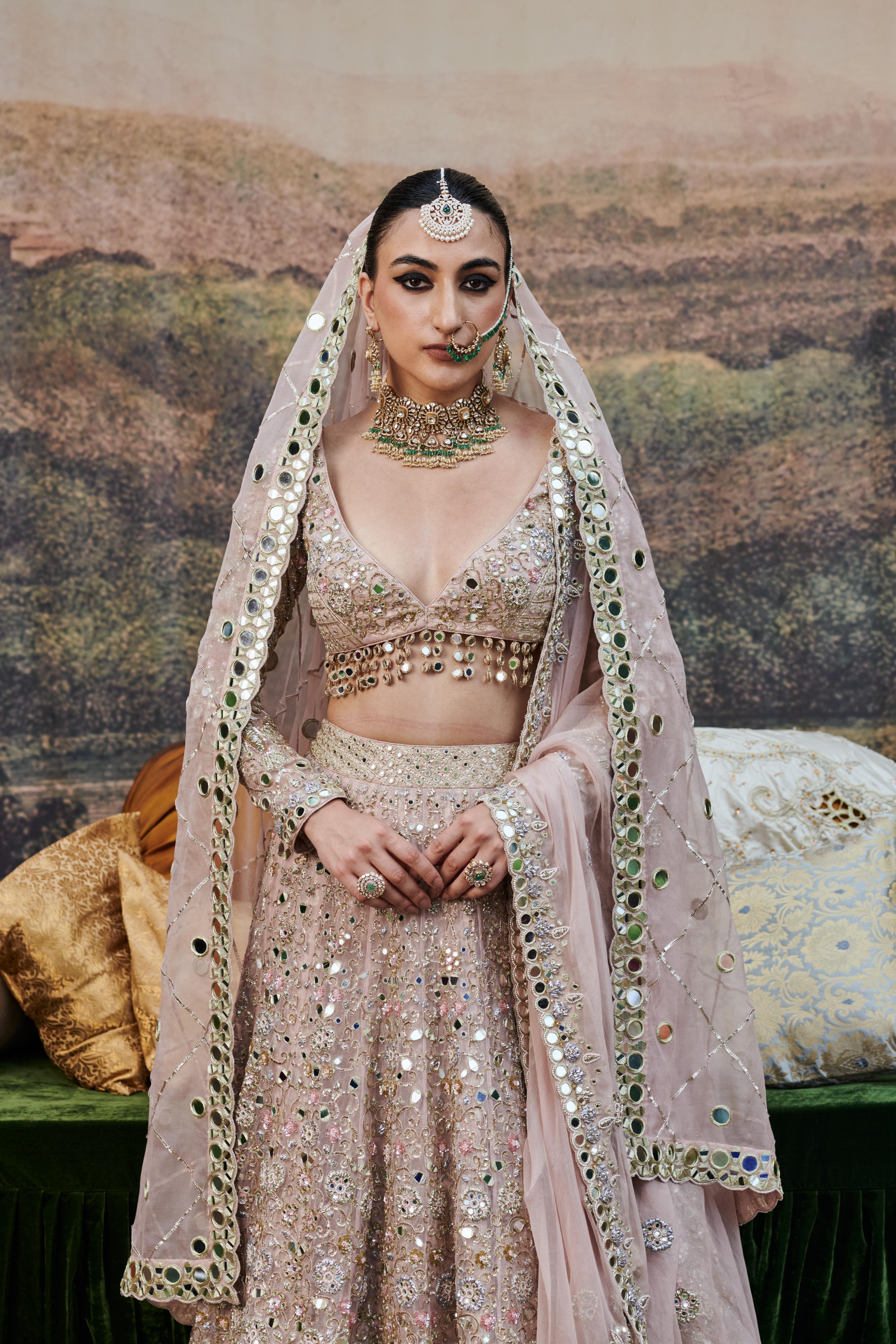 Components: 4 pieces (Lehenga, blouse, dupatta, veil)