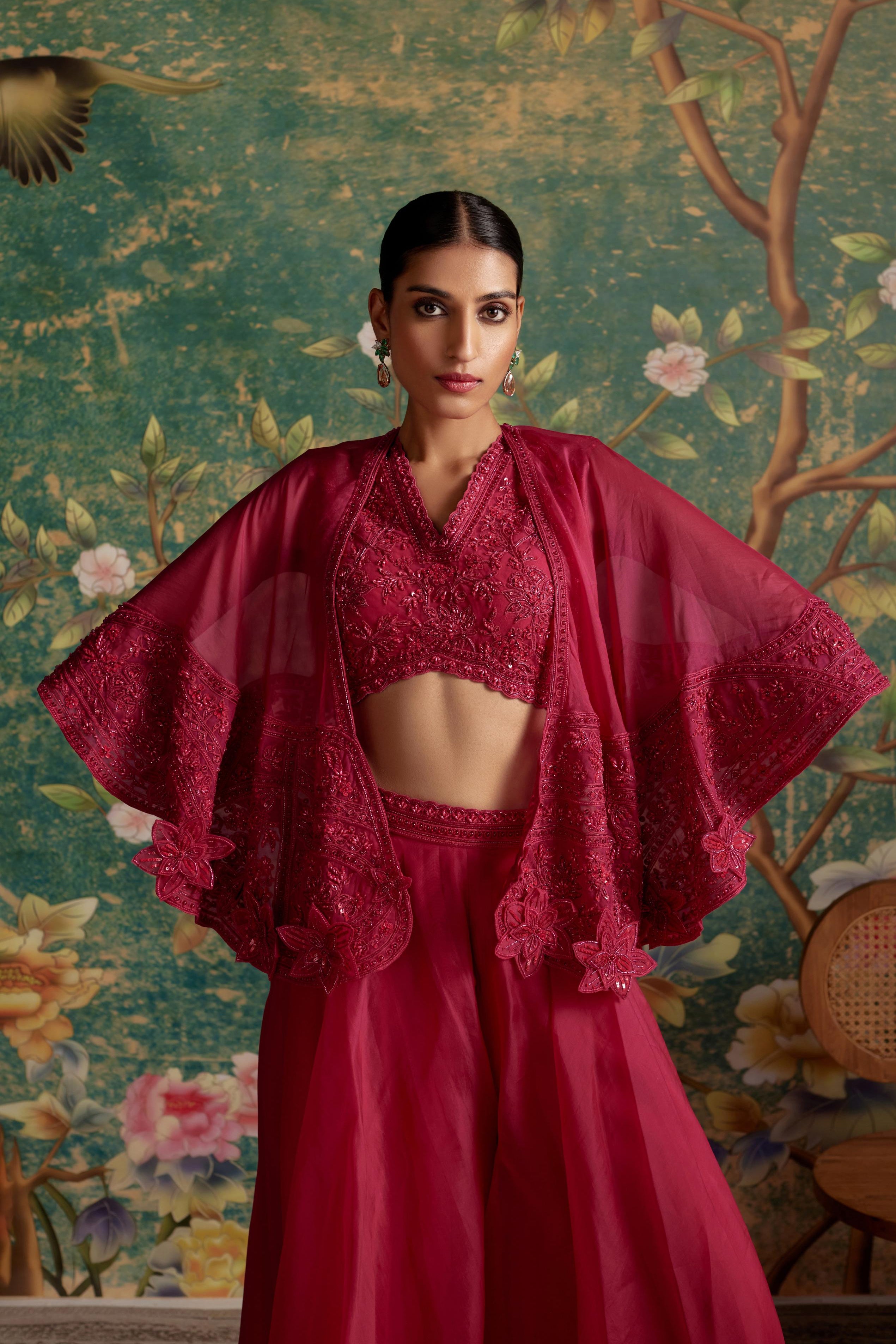 Components: 3 pieces (Cape, blouse, sharara)