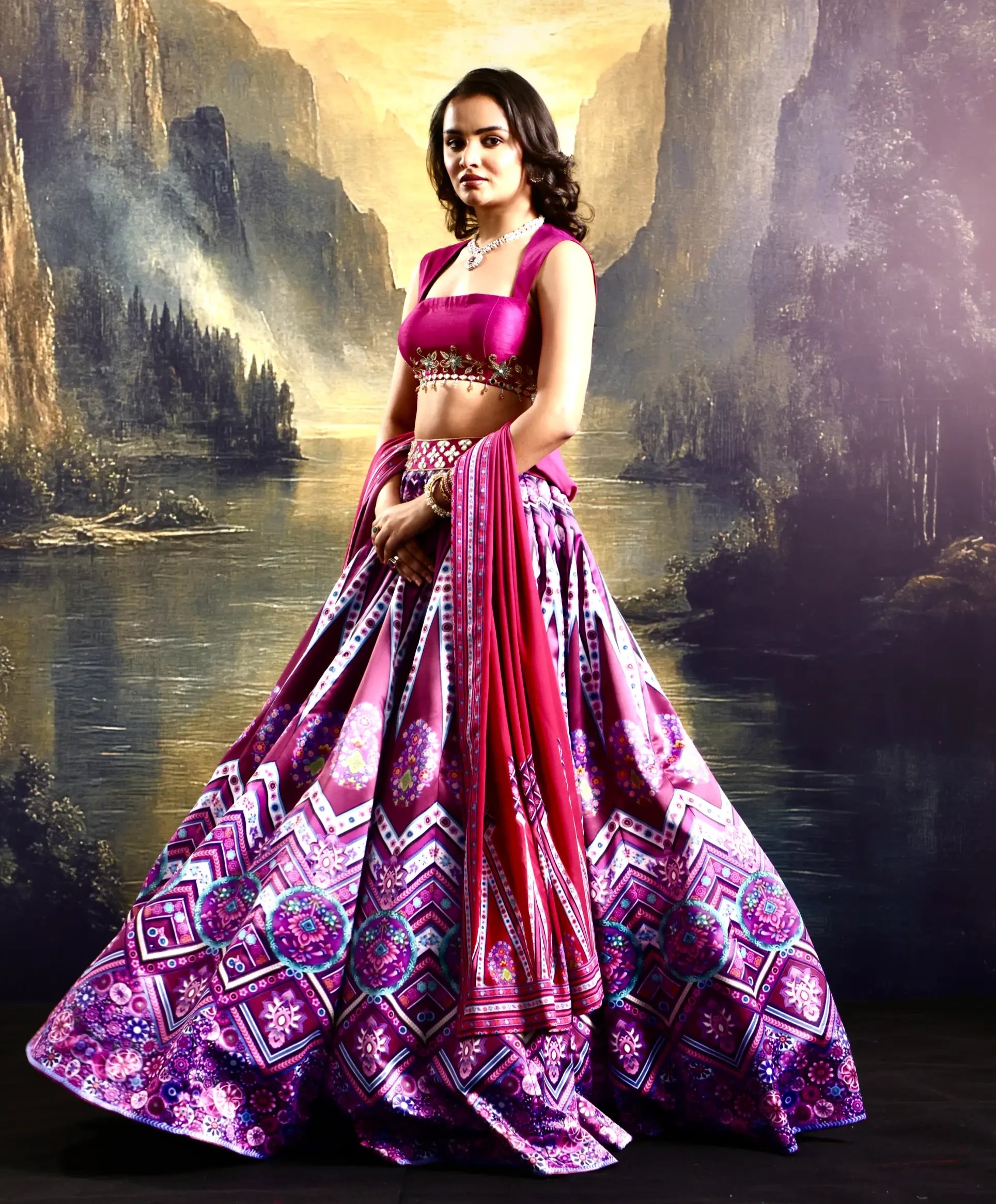 Exude timeless elegance with this pink satin printed lehenga, designed to make a stunning statement at any special occasion. The luxurious satin fabric offers a rich, smooth texture that beautifully enhances the intricate, vibrant print, creating a captivating visual effect. The hand-embroidered blouse features exquisite craftsmanship with delicate threadwork, adding depth and artistry to the ensemble. Paired with a matching dupatta, also adorned with fine embroidery, this lehenga set is the perfect blend of traditional charm and modern sophistication. Ideal for weddings, receptions, or festive celebrations, this outfit is designed to make you feel graceful, confident, and unforgettable.