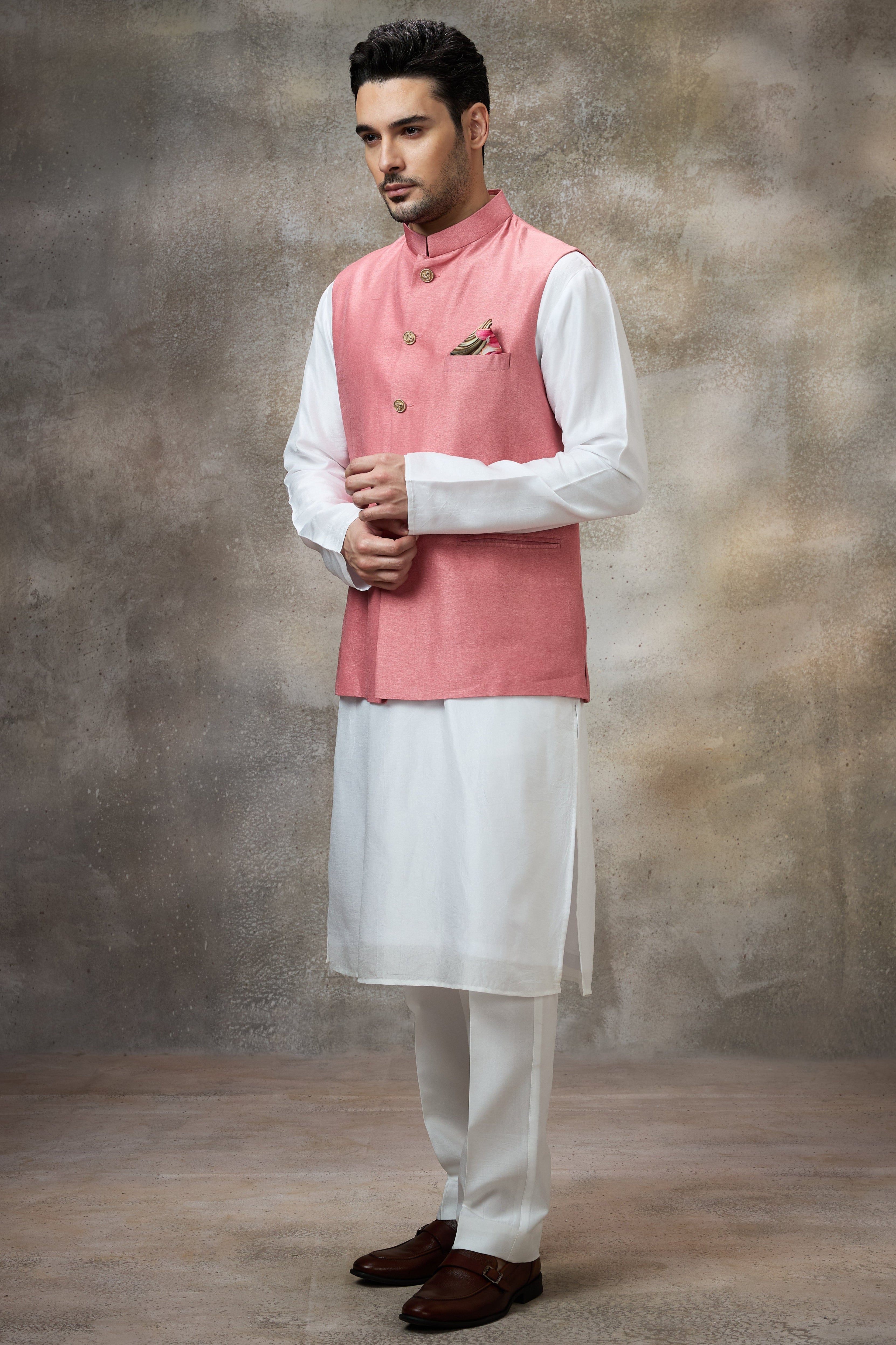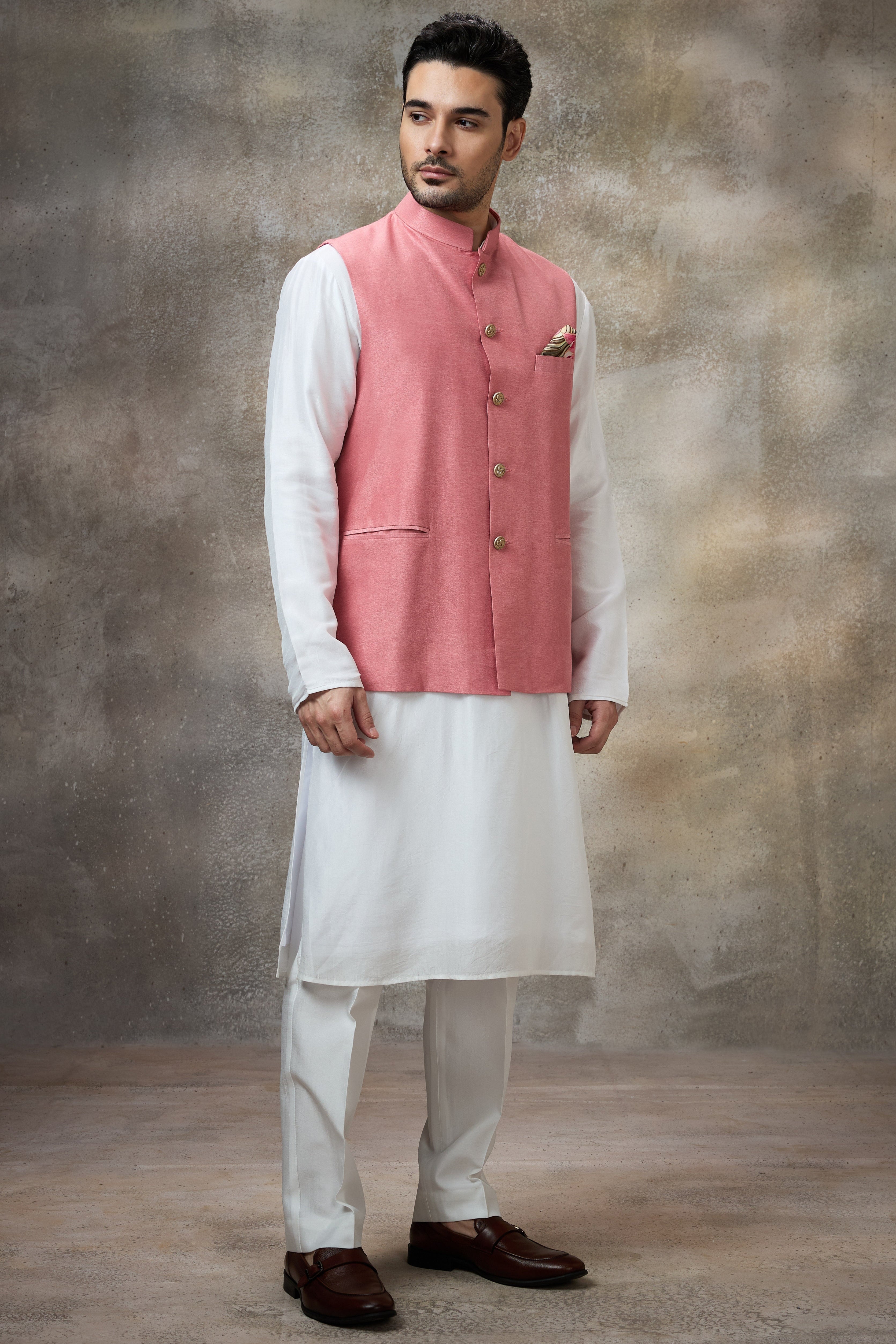 Fresh and elegant, the Pink Solid Koti with Kurta Set brings a soft, feminine vibe to ethnic wear. The tonal layering adds depth while maintaining simplicity. Comfortable and graceful, it's perfect for casual festivities or day events. The look is refined and effortlessly stylish. A lovely choice for a delicate ethnic statement.