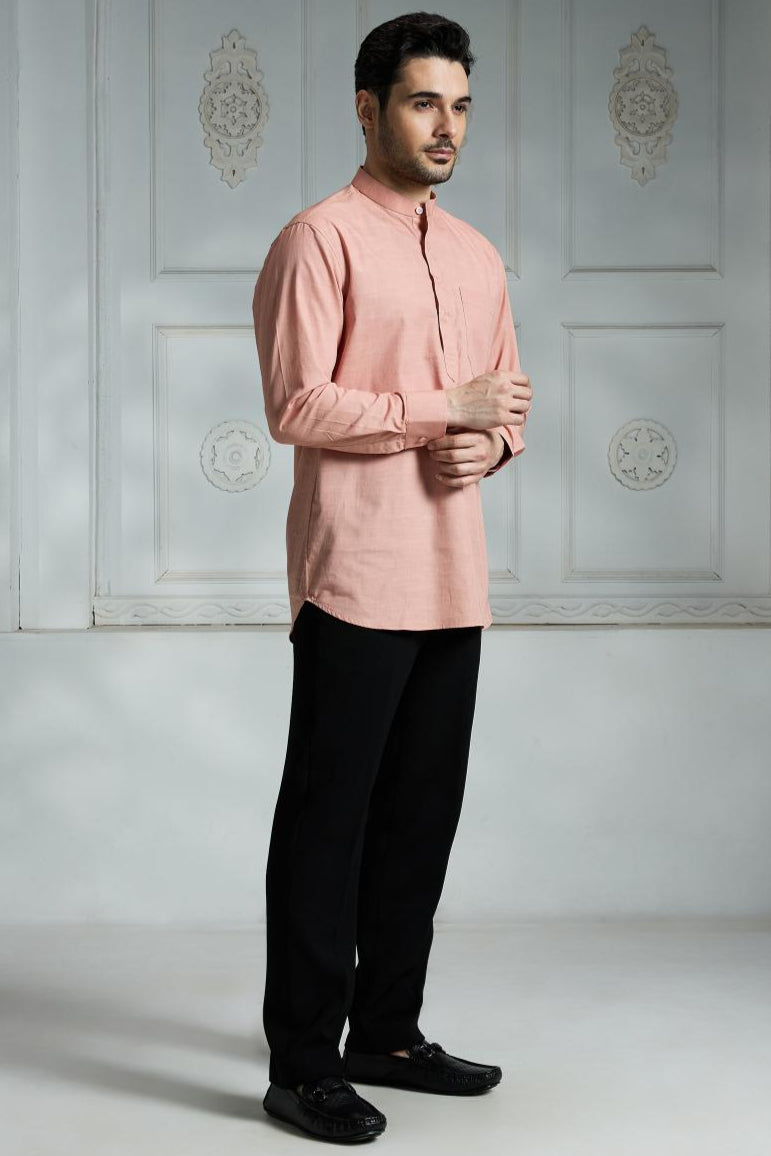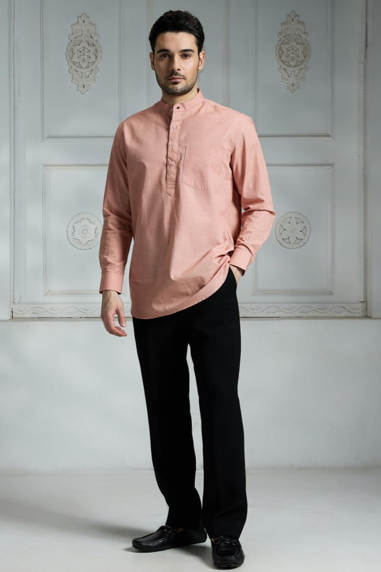 This elegant long-sleeved light pink shirt combines style and comfort effortlessly. Designed with a contemporary mandarin collar and a neat four-button placket, it also features a single chest pocket on the left side for added detail. Crafted from soft, breathable fabric, it offers a polished look perfect for both formal events and smart-casual settings. Pair it with tailored trousers for a sharp, sophisticated ensemble.