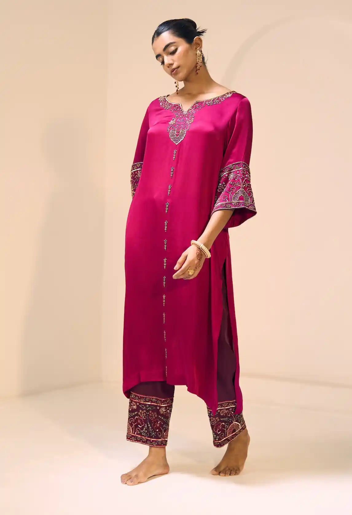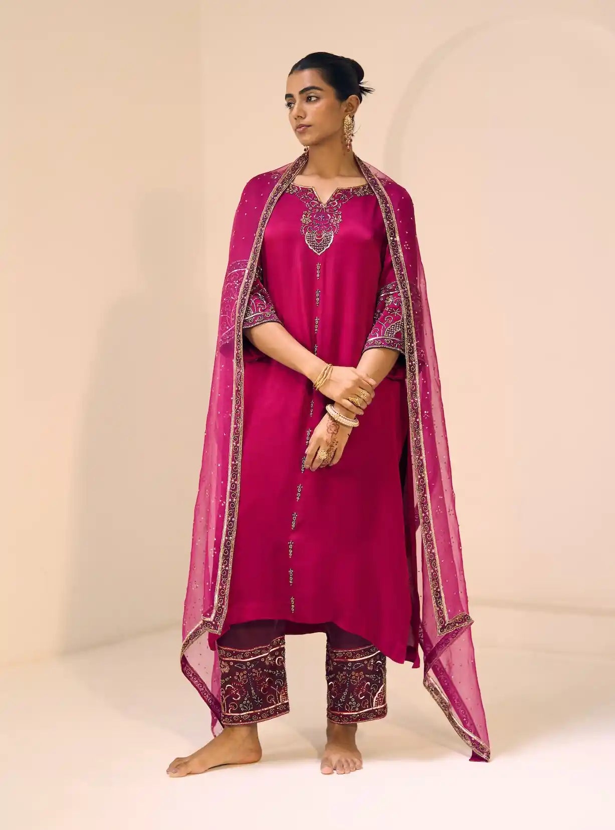 Embrace elegance with the pink taara kurta set, a stunning celebration of femininity. Crafted from luxurious satin georgette, the kurta features a soft pink hue that exudes romance, making it perfect for festive occasions or everyday wear. Paired with chic satin silk pants for a comfortable fit, this set enhances your silhouette beautifully. The delicate organza silk dupatta adds a sophisticated touch, completing the ensemble with grace. With the pink taara kurta set, you’ll radiate charm and confidence, making it an essential addition to your wardrobe.
