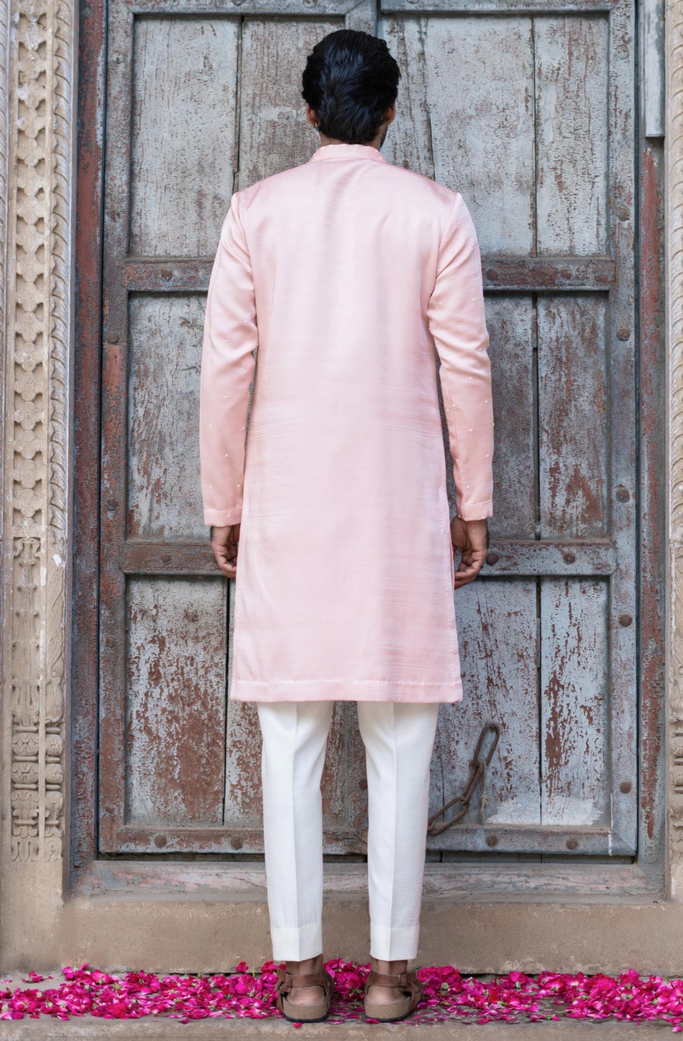 Refined and regal, the Pink Vishant Kurta Set is a statement in timeless sophistication. Rendered in a soft yet striking pink hue, the kurta features subtle detailing and fine craftsmanship that elevate its classic silhouette. Paired with coordinated bottoms and a dupatta or stole (optional), this ensemble is perfect for daytime functions, traditional ceremonies, or festive occasions. The Pink Vishant Kurta Set is designed for those who appreciate elegance, comfort, and a touch of tradition wrapped in modern finesse.