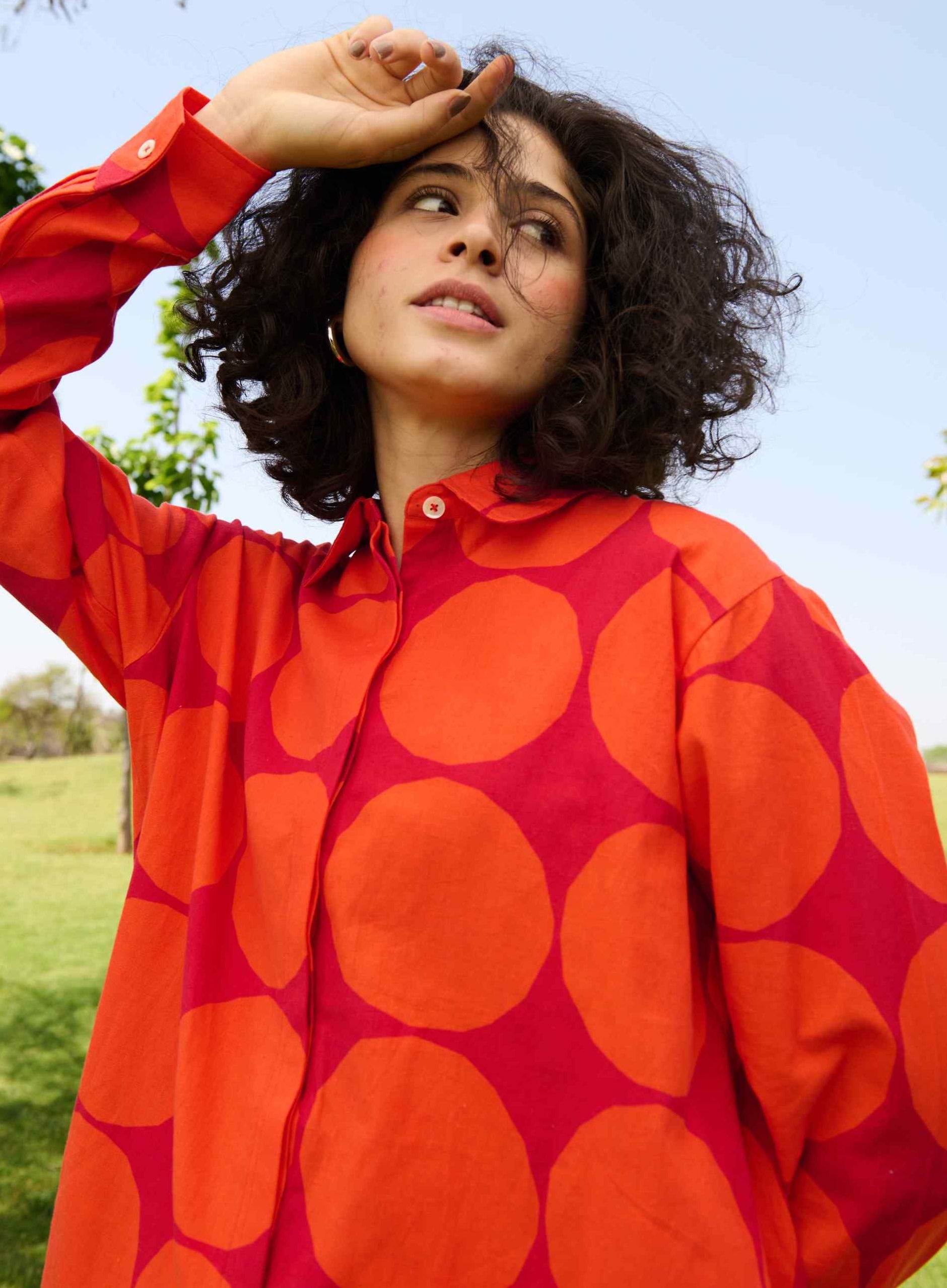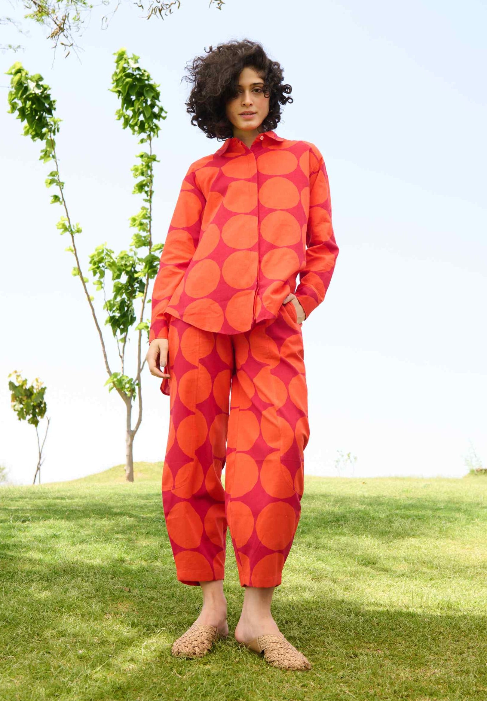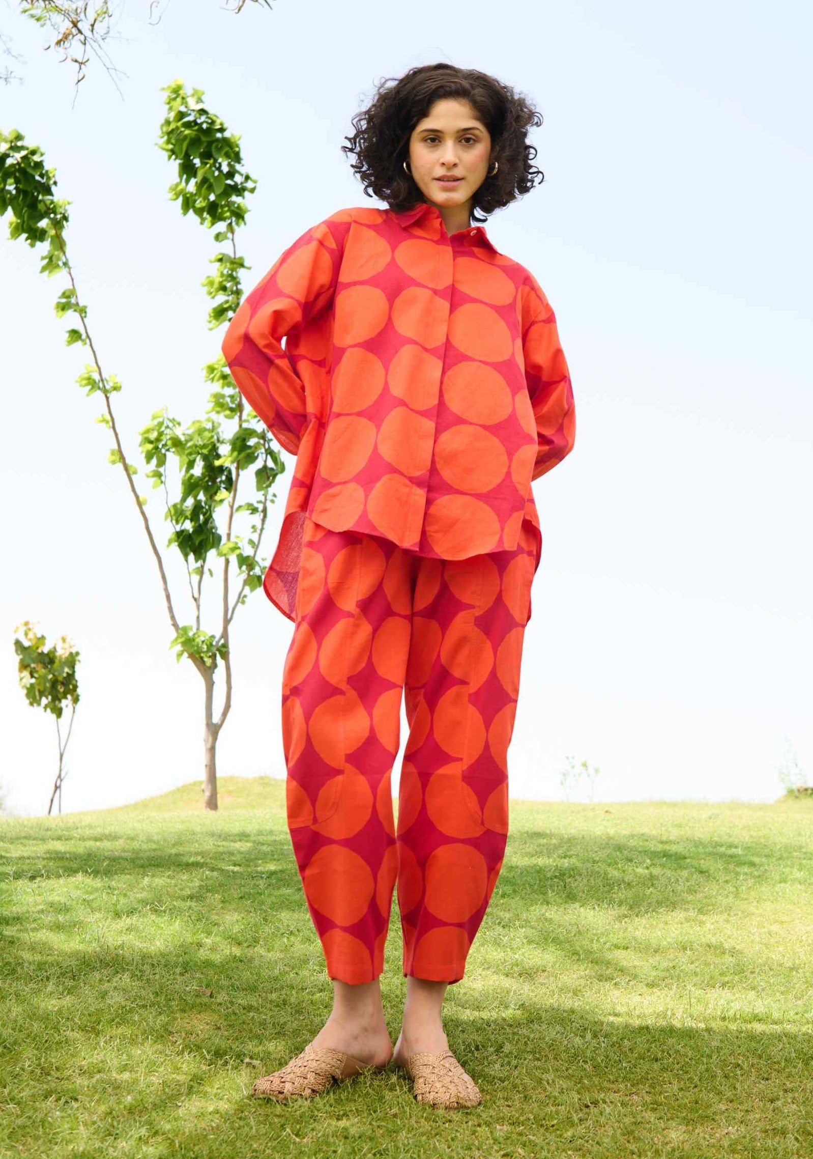 Elevate your wardrobe with the Marigold Coord Set, expertly crafted from our luxurious linen-cotton blend. This set features a button-down shirt in our eye-catching Polka Red print, paired with panelled trousers that showcase sophisticated stitch detailing. Perfect for adding a splash of color to both professional and casual settings, the Marigold Coord Set combines modern design with the breathable comfort of high-quality linen-cotton.