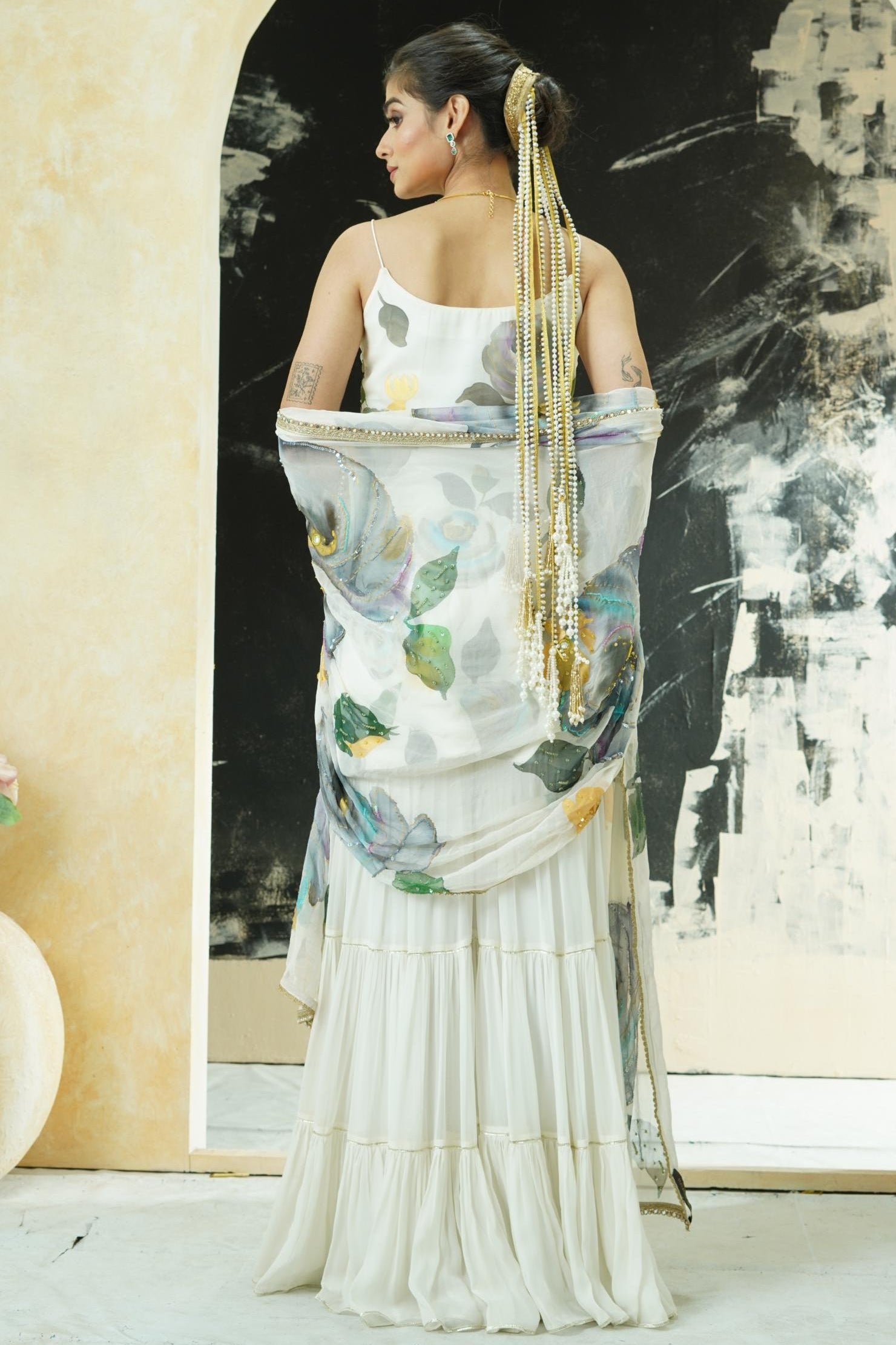 The Ivory Aangan Hand Painted Kurta with Sharara Set is a beautiful choice for those seeking comfort, charm, and artistic elegance. With its flowing silhouette and delicately illustrated design, this sharara set is perfect for mehendi events, festive brunches, and intimate wedding gatherings. The hand-painted detailing on the kurta elevates the ensemble, while the sharara offers graceful movement ideal for daytime functions. Bridesmaids, sisters of the groom, or guests looking for lightweight yet elevated attire will find this outfit both versatile and flattering. Its soft palette and airy structure allow you to celebrate with ease while looking effortlessly polished.