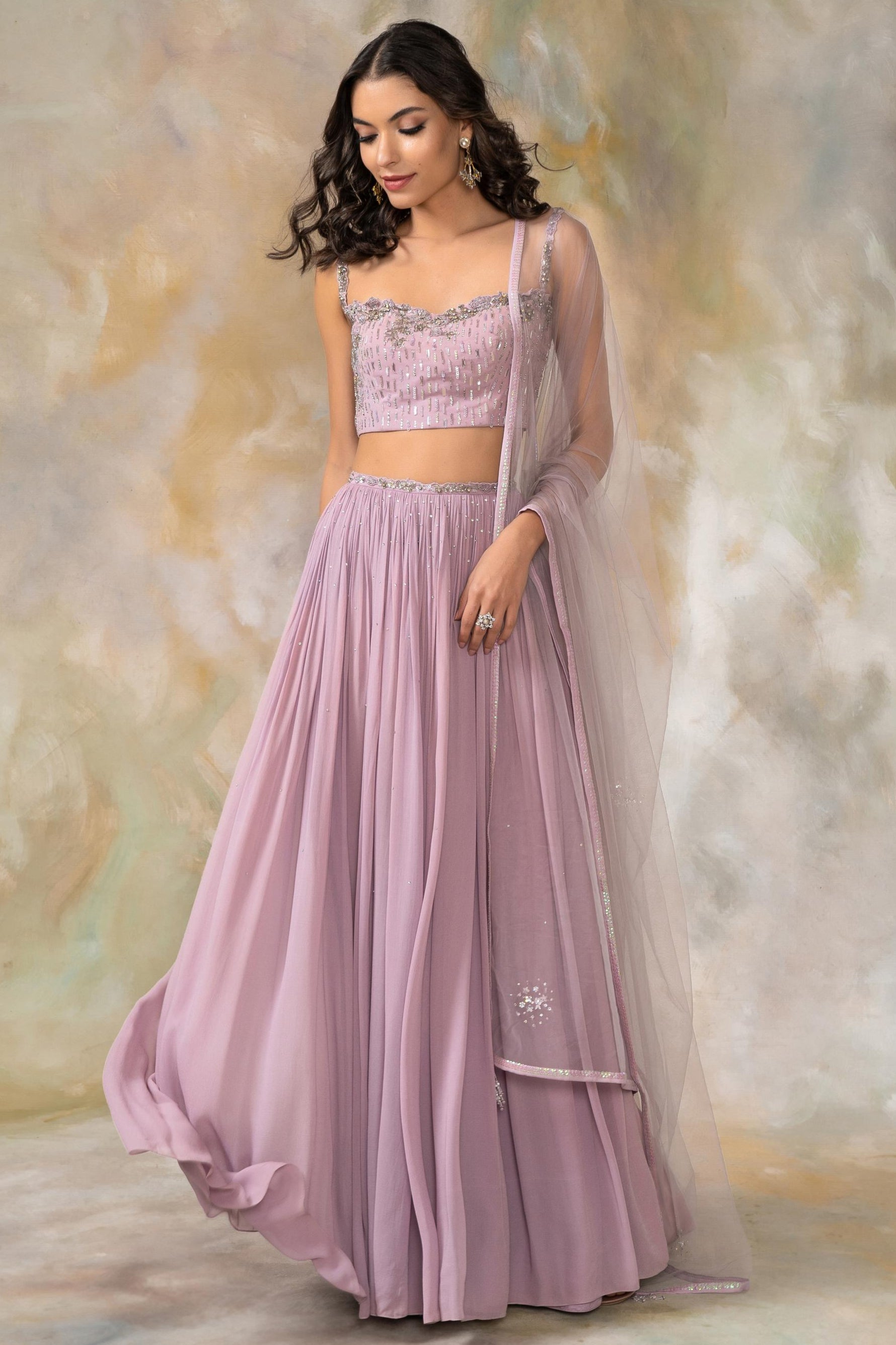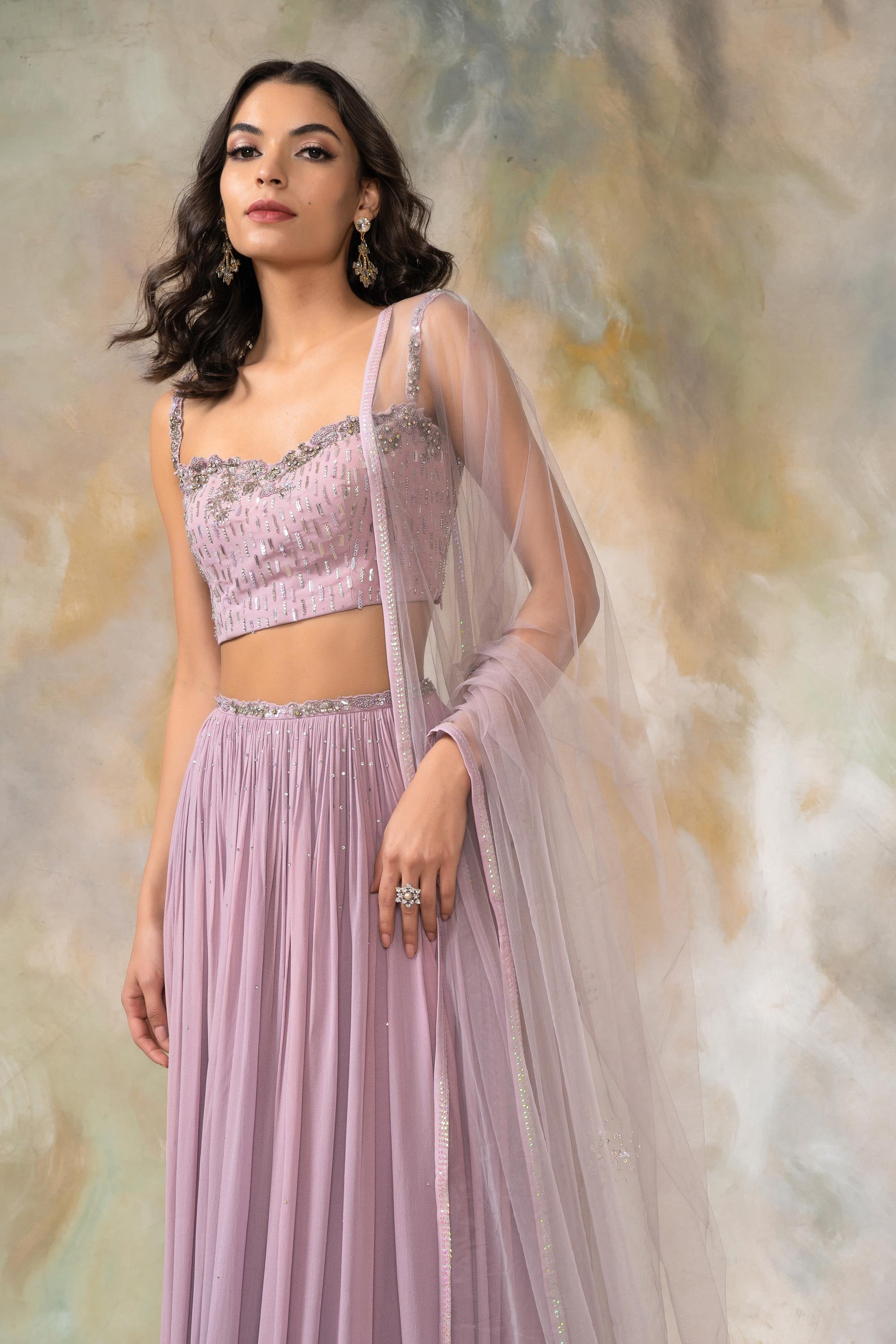 Step into timeless elegance with this purple crystal and sequin-embellished lehenga set, a breathtaking blend of opulence and contemporary allure. The rich purple hue exudes regal charm, while the intricate crystal and sequin embellishments add a captivating shimmer, ensuring you shine effortlessly at weddings, receptions, and festive celebrations. Designed for those who love a touch of grandeur, this lehenga set strikes the perfect balance between traditional artistry and modern sophistication.