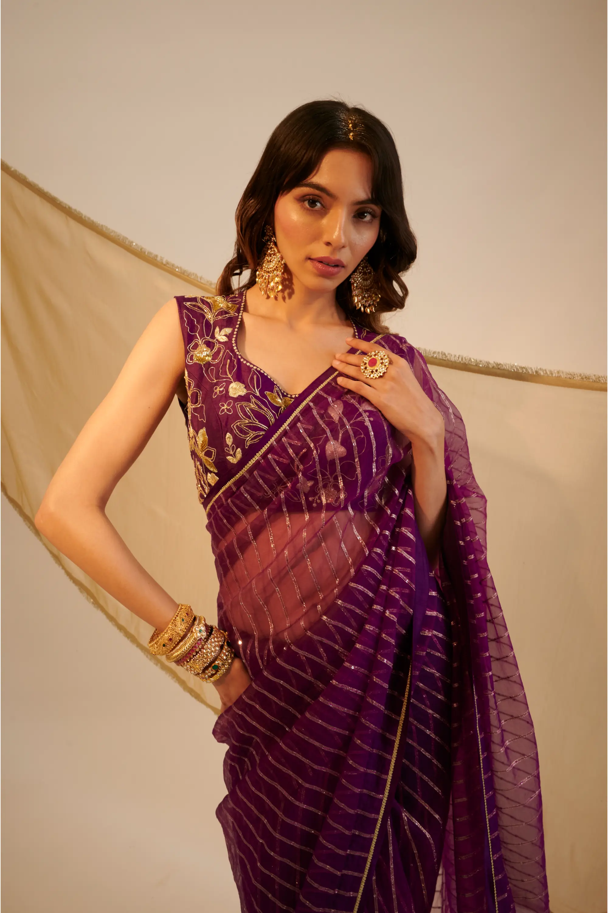Unveil your inner elegance with our exquisite purple embroidered organza saree, a perfect blend of sophistication and charm. Crafted from lightweight organza, this saree drapes beautifully, showcasing intricate embroidery that adds a touch of luxury to its rich purple hue. The accompanying blouse is designed to enhance the overall look, featuring delicate details that elevate your silhouette. Ideal for weddings, parties, or special occasions, this ensemble captures the essence of timeless beauty and modern style. Embrace the allure of organza and make a stunning statement with this captivating outfit.