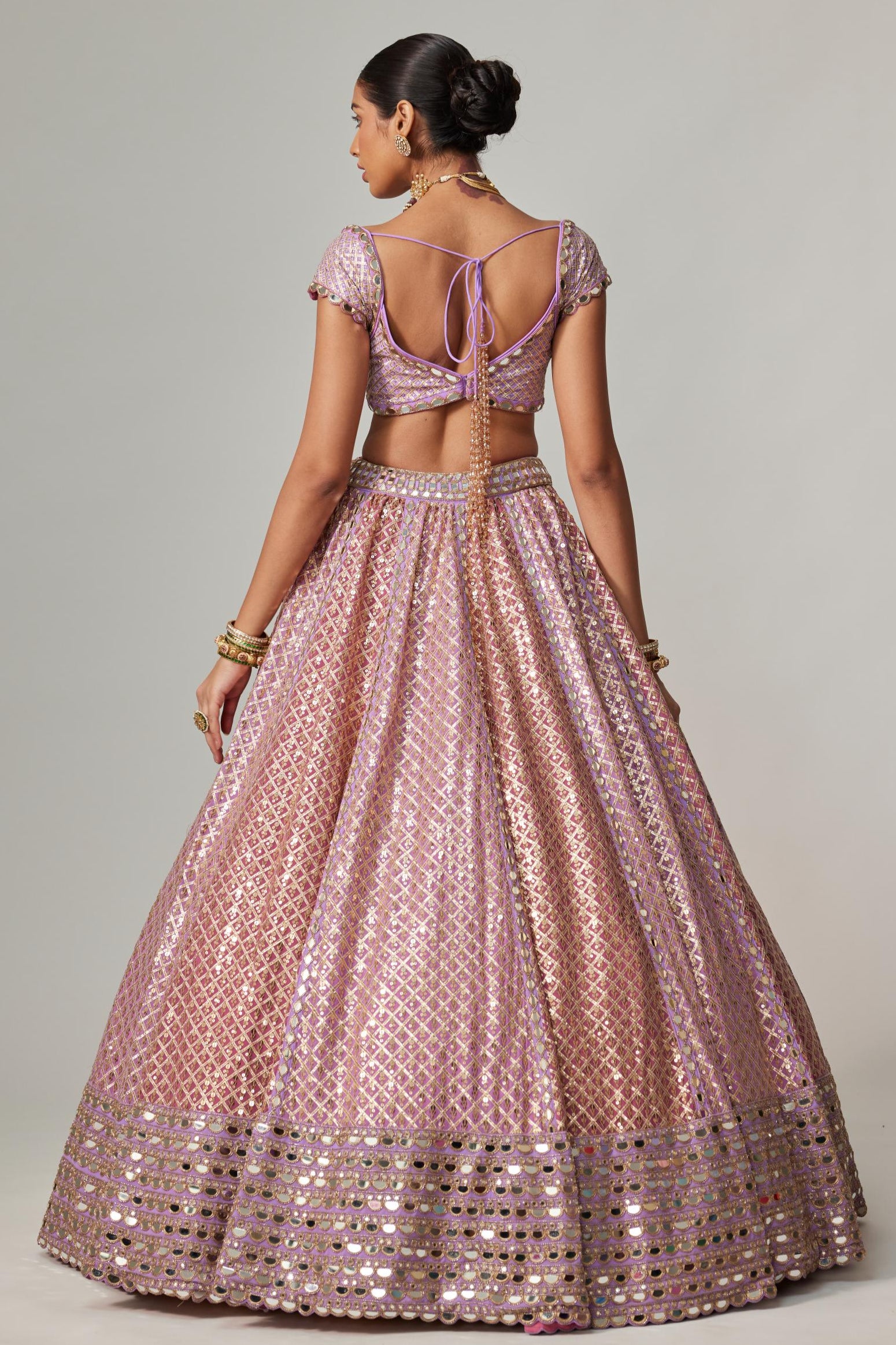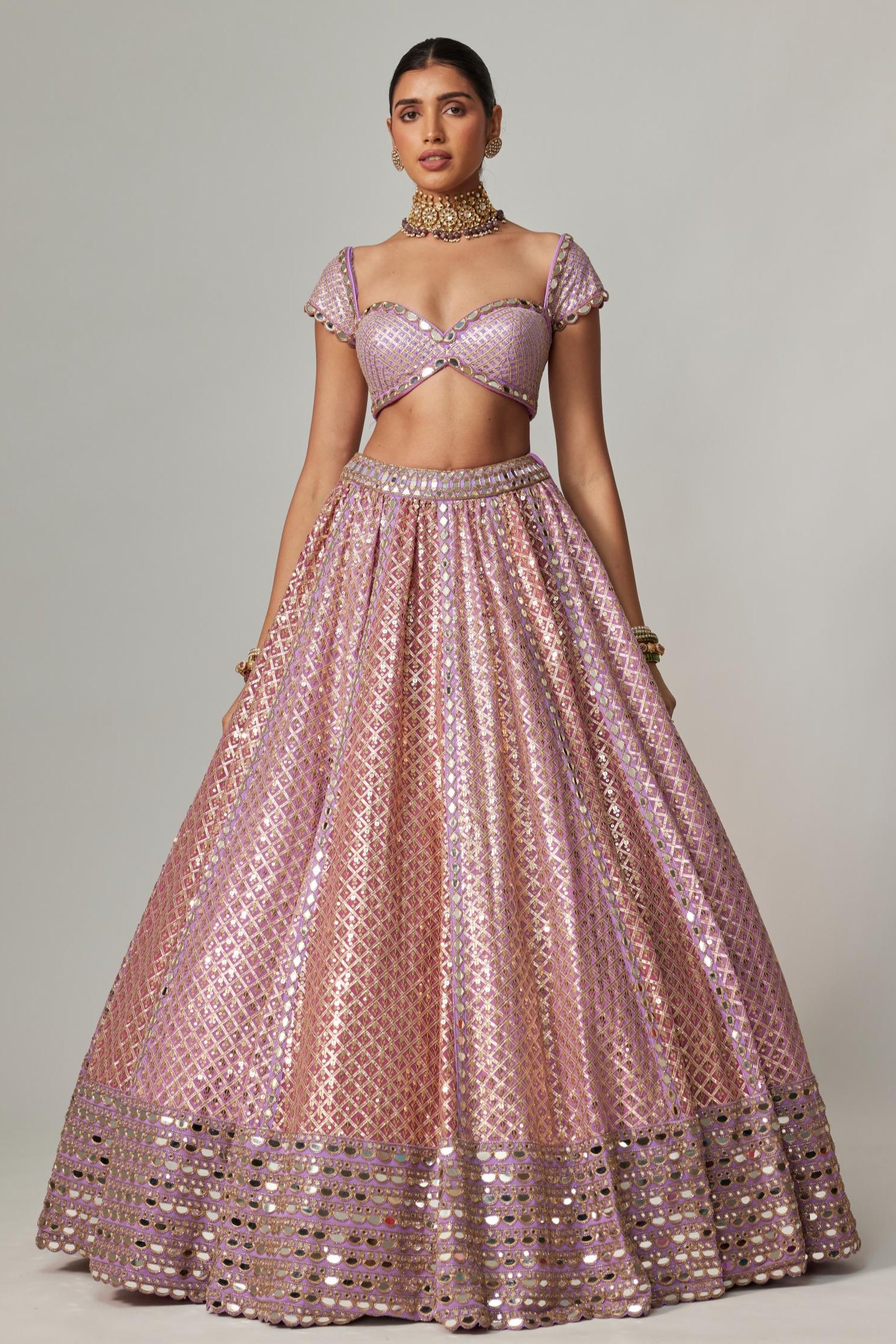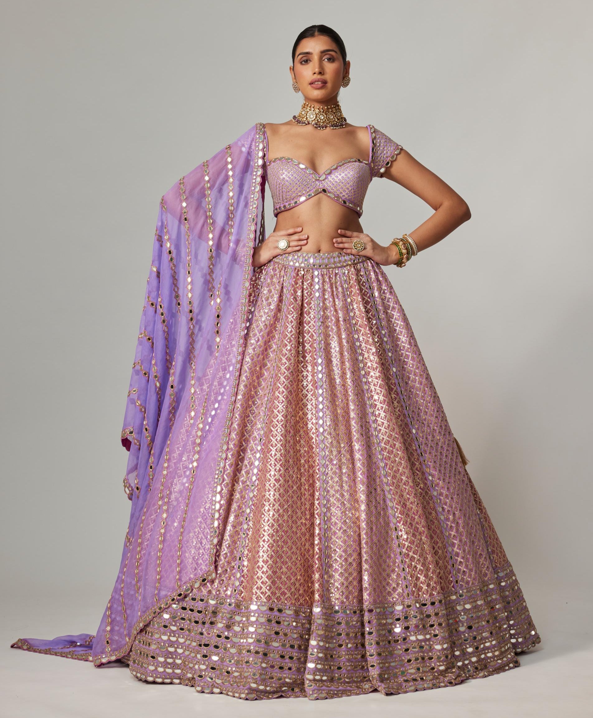 Opulent and unforgettable, the Purple Multicolor Noorani Heavy Metallic Lehenga Set is crafted for grand celebrations. Set in a regal purple base, the lehenga is richly adorned with heavy multicolor metallic embellishments that shimmer with every step. The statement blouse and coordinating dupatta complete the look with balance and brilliance. Perfect for receptions, sangeet nights, or destination weddings, this ensemble is for the woman who isn’t afraid to command the spotlight with bold elegance.