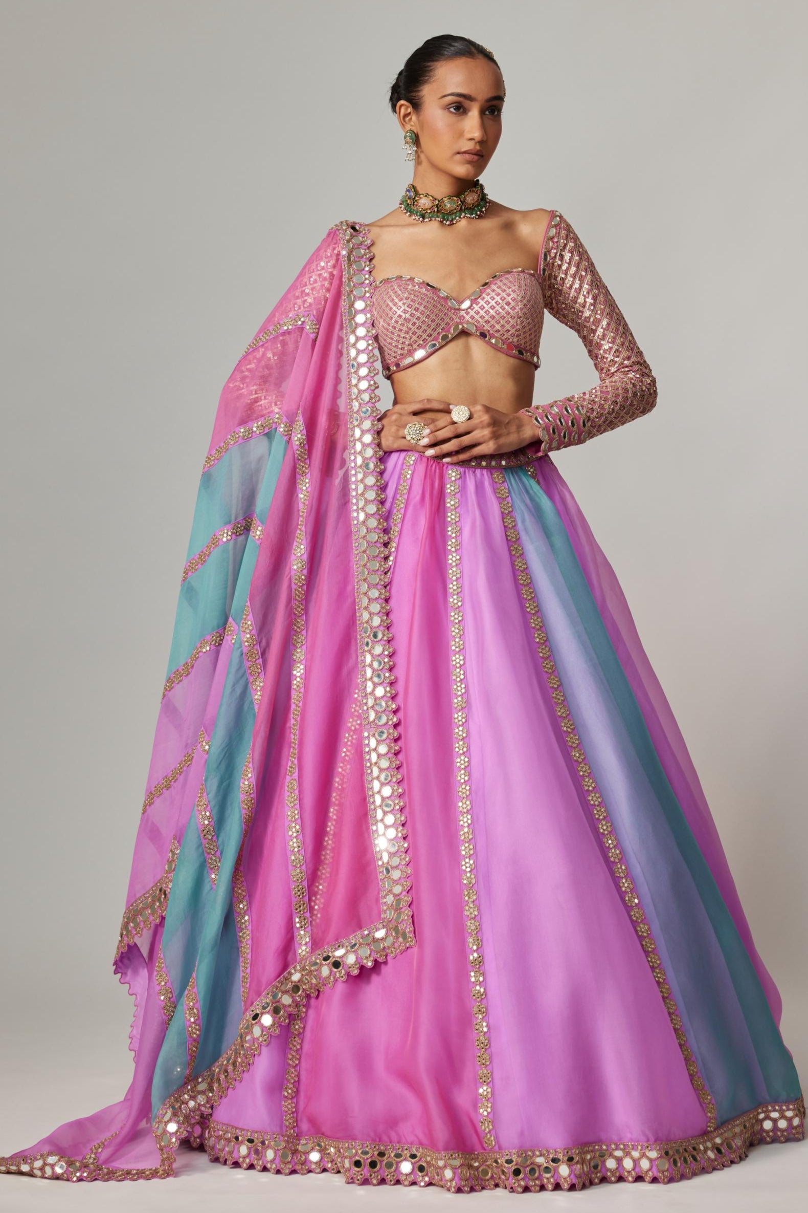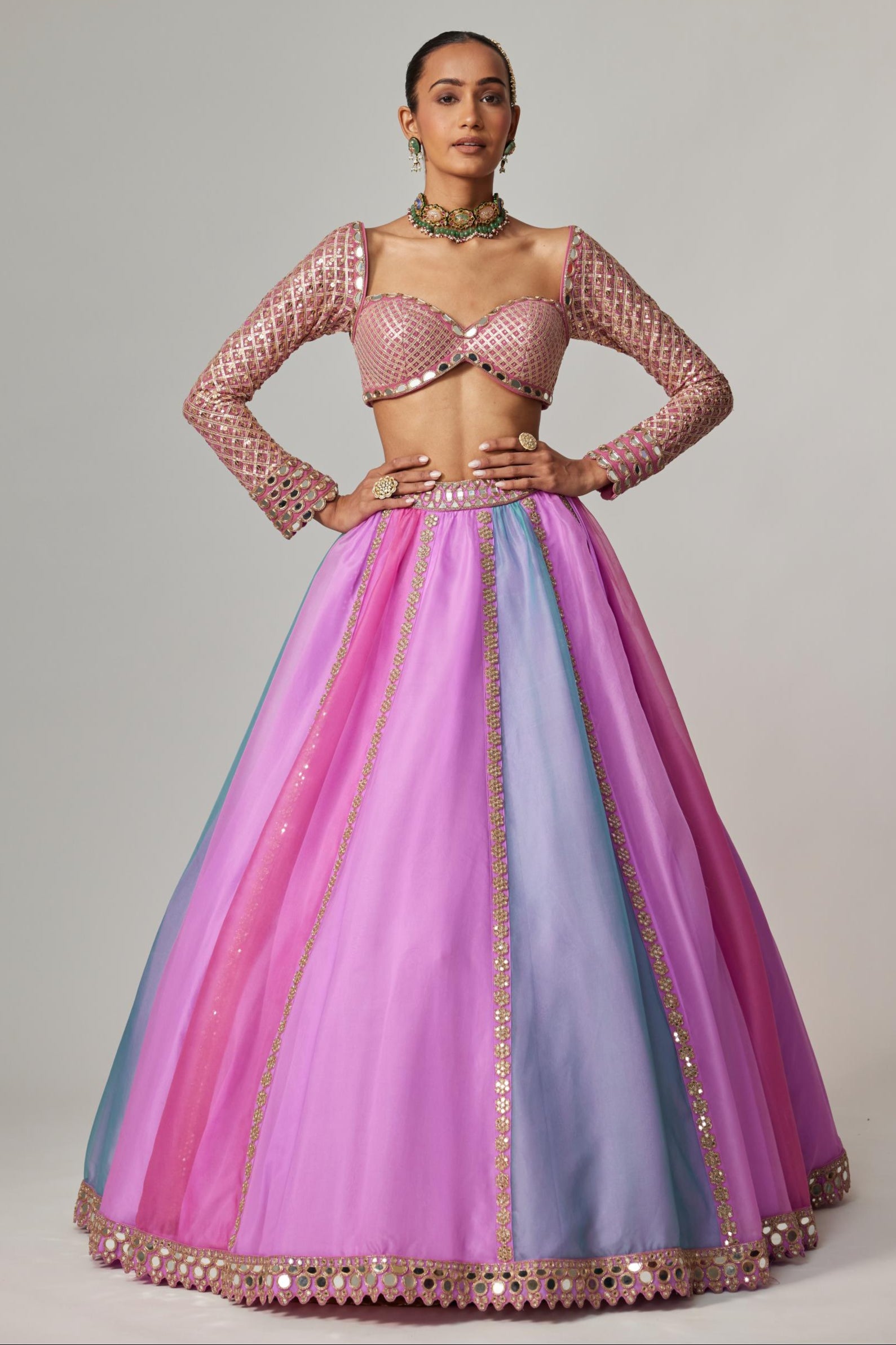 Elegant yet contemporary, the Purple Multicolor Noorani Linear Lehenga with Blouse is a statement in structured beauty. Featuring a deep purple base adorned with vibrant multicolor linear embroidery, this lehenga set blends traditional detailing with a modern graphic edge. The coordinating blouse adds definition and polish, making it ideal for wedding festivities, sangeet evenings, or festive soirées. Designed for the woman who embraces bold color and clean design, this ensemble is both timeless and trend-forward.