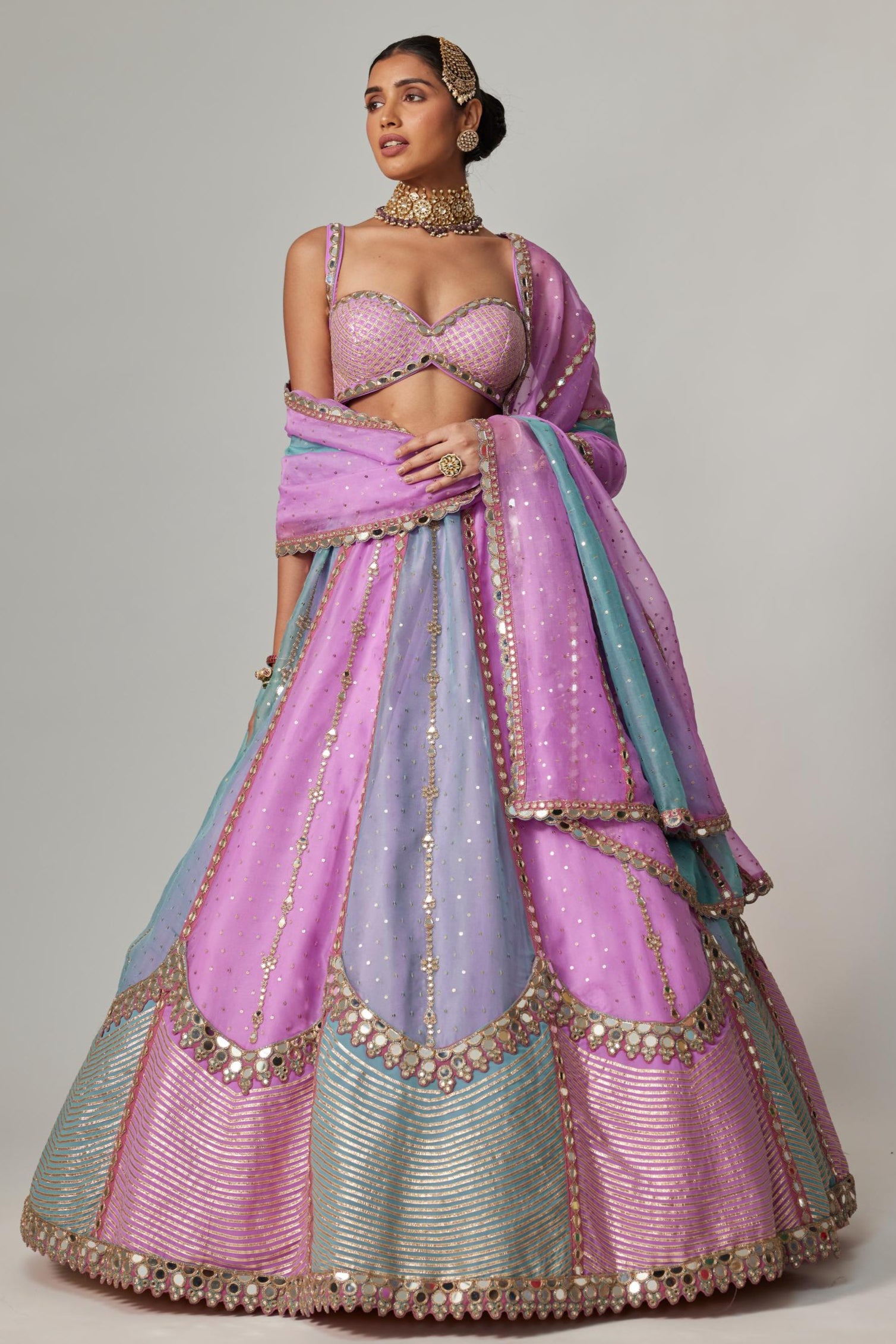 Glamorous and radiant the Purple Multicolor Noorani Sequin Scattered Lehenga is designed for the spotlight. Set on a regal purple base this lehenga features delicately scattered multicolor sequins that reflect light beautifully adding sparkle to every movement. Perfect for sangeet nights cocktail parties or festive receptions this look is bold celebratory and unapologetically vibrant. For the woman who embraces color and shine with confidence this lehenga is your statement moment.