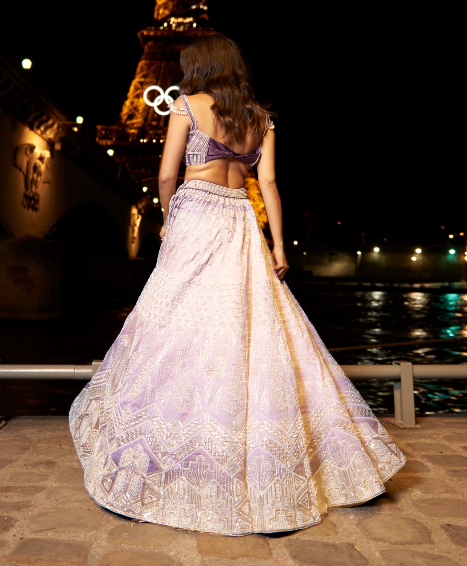 Discover the perfect blend of elegance and artistry with our purple ombre lehenga set. Handcrafted with meticulous attention to detail the linen satin lehenga features intricate hand embroidery that radiates grace and sophistication. The ensemble includes a matching blouse beautifully complemented by an ethereal organza dupatta that adds a touch of delicate charm. Ideal for special occasions and festive celebrations this lehenga set ensures you stand out with timeless beauty.