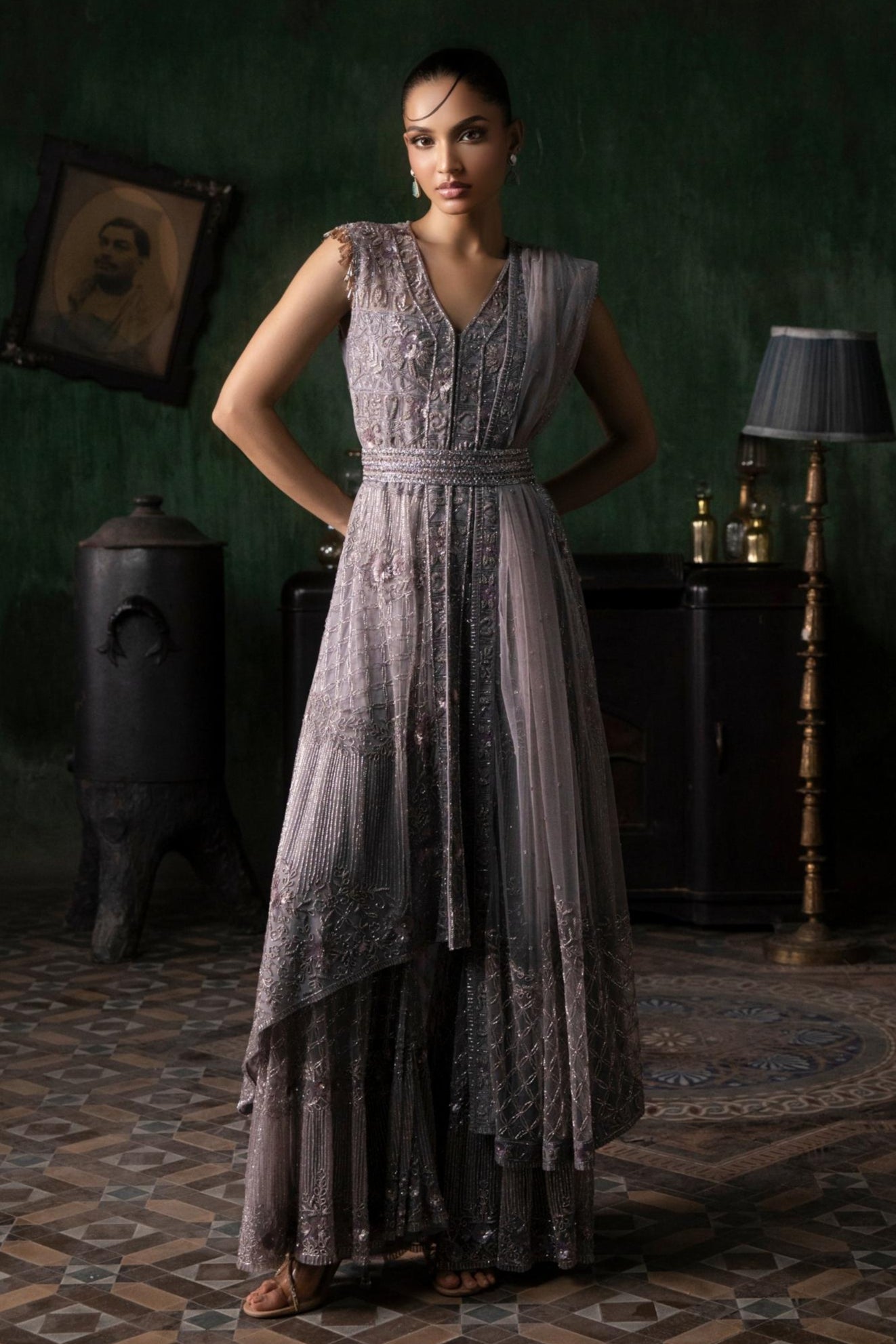 Esha Sethi Thirani is a Kolkata-based designer celebrated for her bold yet refined approach to Indian fashion. Her collections showcase contemporary silhouettes adorned with intricate embroidery, 3D embellishments, and structured draping. From sculptural lehengas to fluid sarees and dramatic gowns, each piece is crafted to make a statement while honoring traditional techniques. The label merges artistic craftsmanship with modern elegance, offering a distinctive take on occasion wear.
