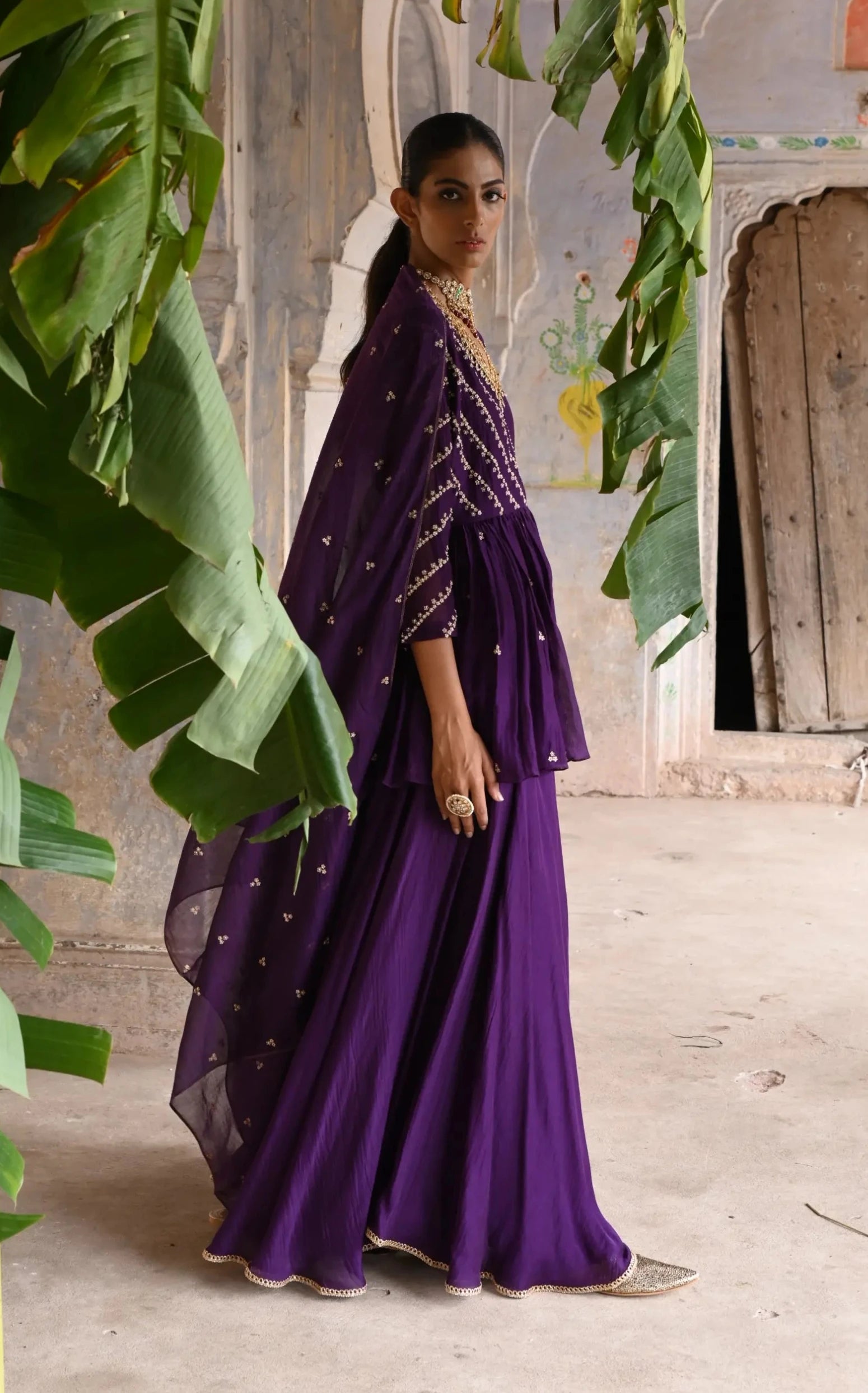 Step into sophistication with our Purple Peplum Set. This chic ensemble features a stylish peplum top paired with coordinating bottoms, perfect for adding a contemporary twist to your wardrobe. The rich purple hue brings a touch of vibrancy, making it ideal for both casual outings and special occasions.