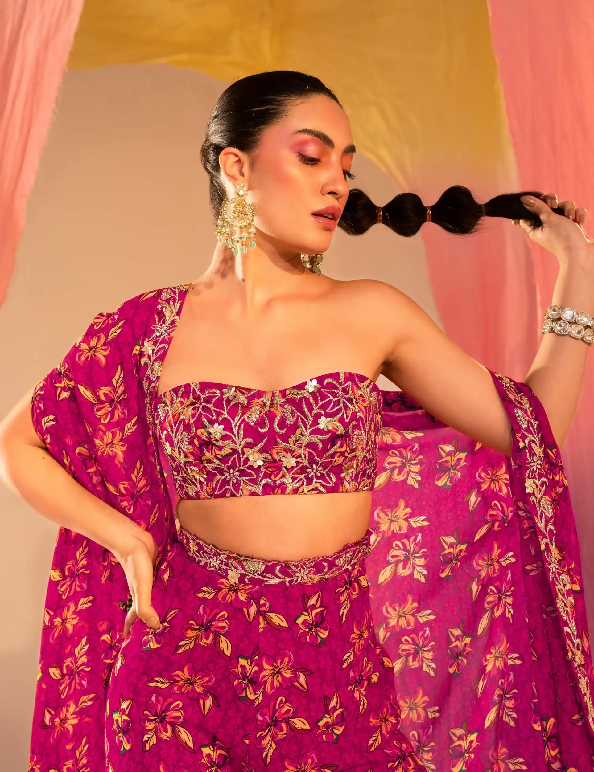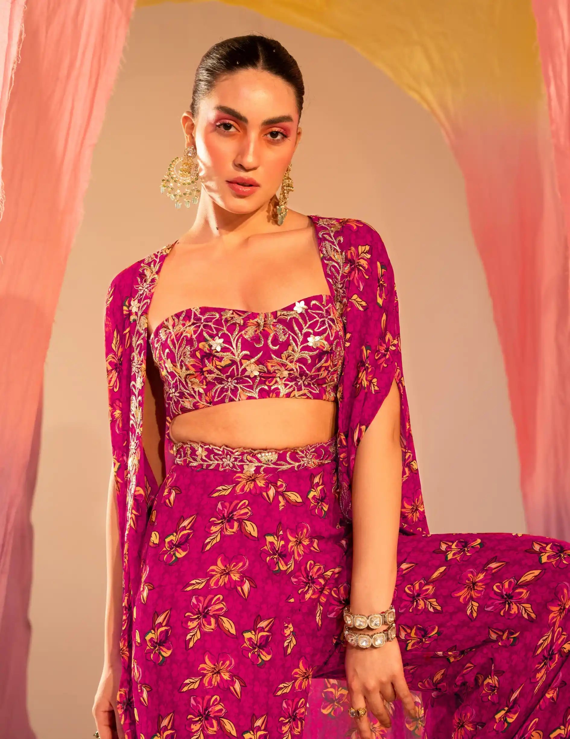 Add a touch of glamour to your wardrobe with our purple printed cape, featuring an embroidered tube blouse and stylish printed straight pants. This chic ensemble offers a perfect blend of contemporary design and elegance, with flowing layers that elevate any look. Ideal for special occasions or a night out, it’s a versatile statement piece that exudes confidence and style!