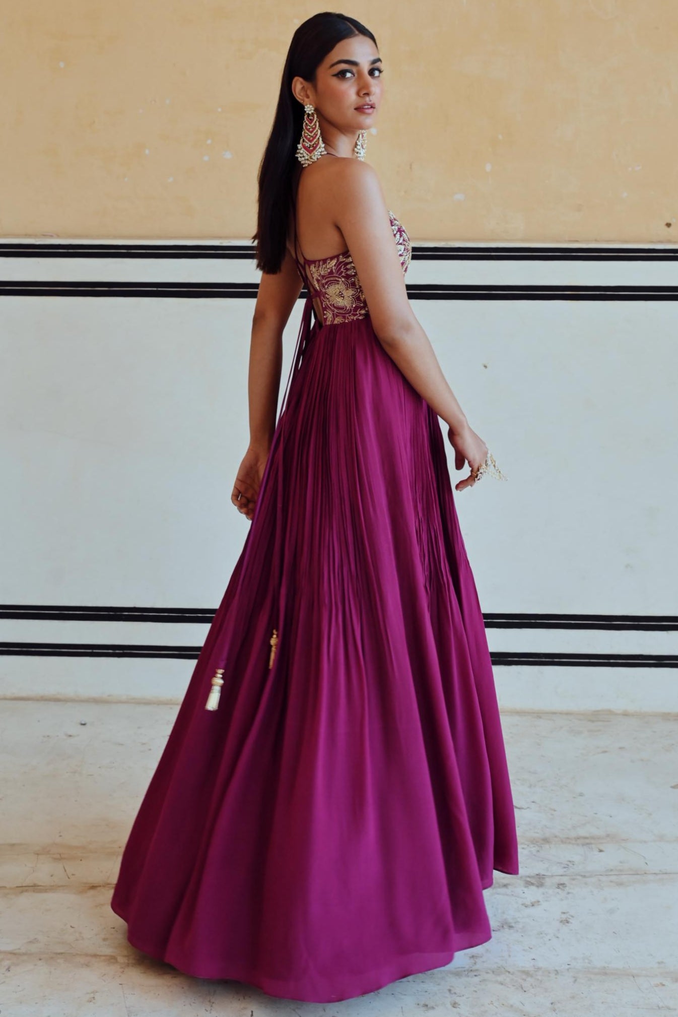 Step into regal elegance with the Purple Rahi Anarkali with Dupatta. Featuring a graceful silhouette and a rich hue, this ensemble is perfect for weddings, festive celebrations, and special occasions.