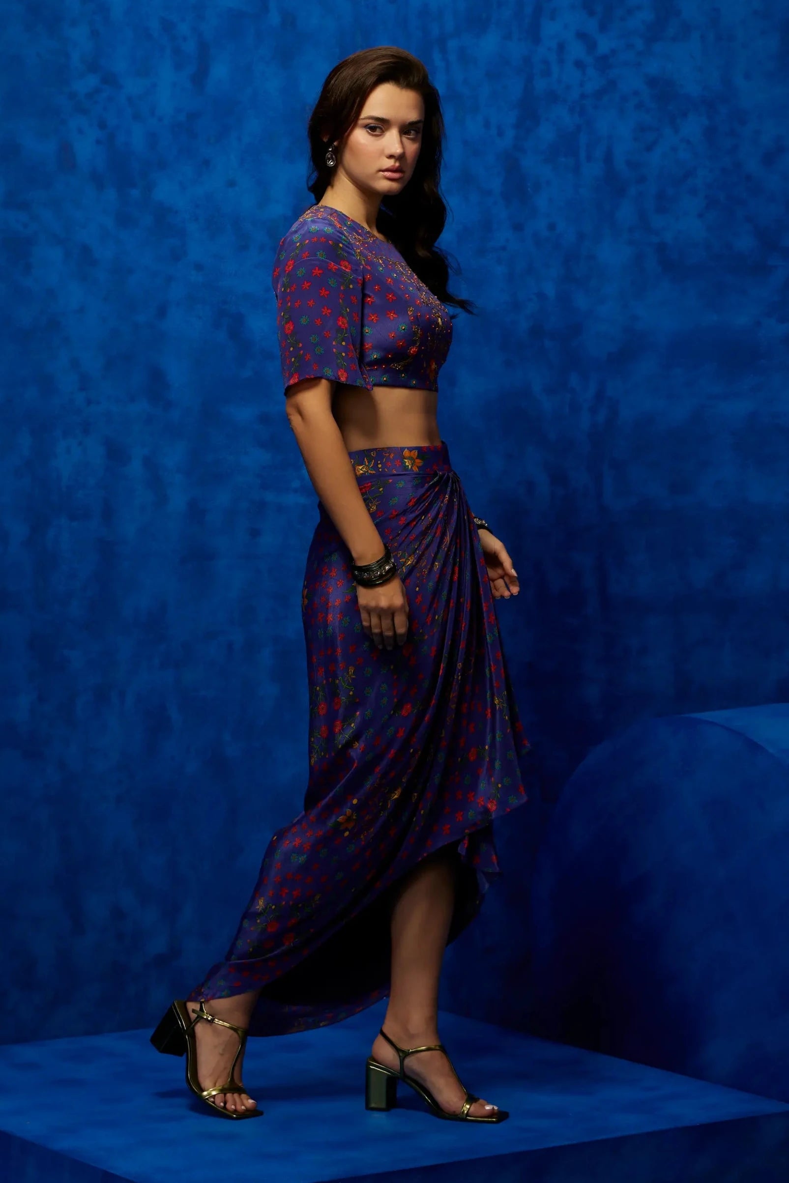Bring a bold, contemporary twist to your wardrobe with this purple shoti skirt paired with crop top. The vibrant purple shoti skirt offers a flattering, structured look, while the crop top adds a chic, modern edge. Perfect for casual outings, parties, or festive occasions, this set combines traditional influences with a fresh, youthful vibe, making it an ideal choice for stylish, statement-making looks.