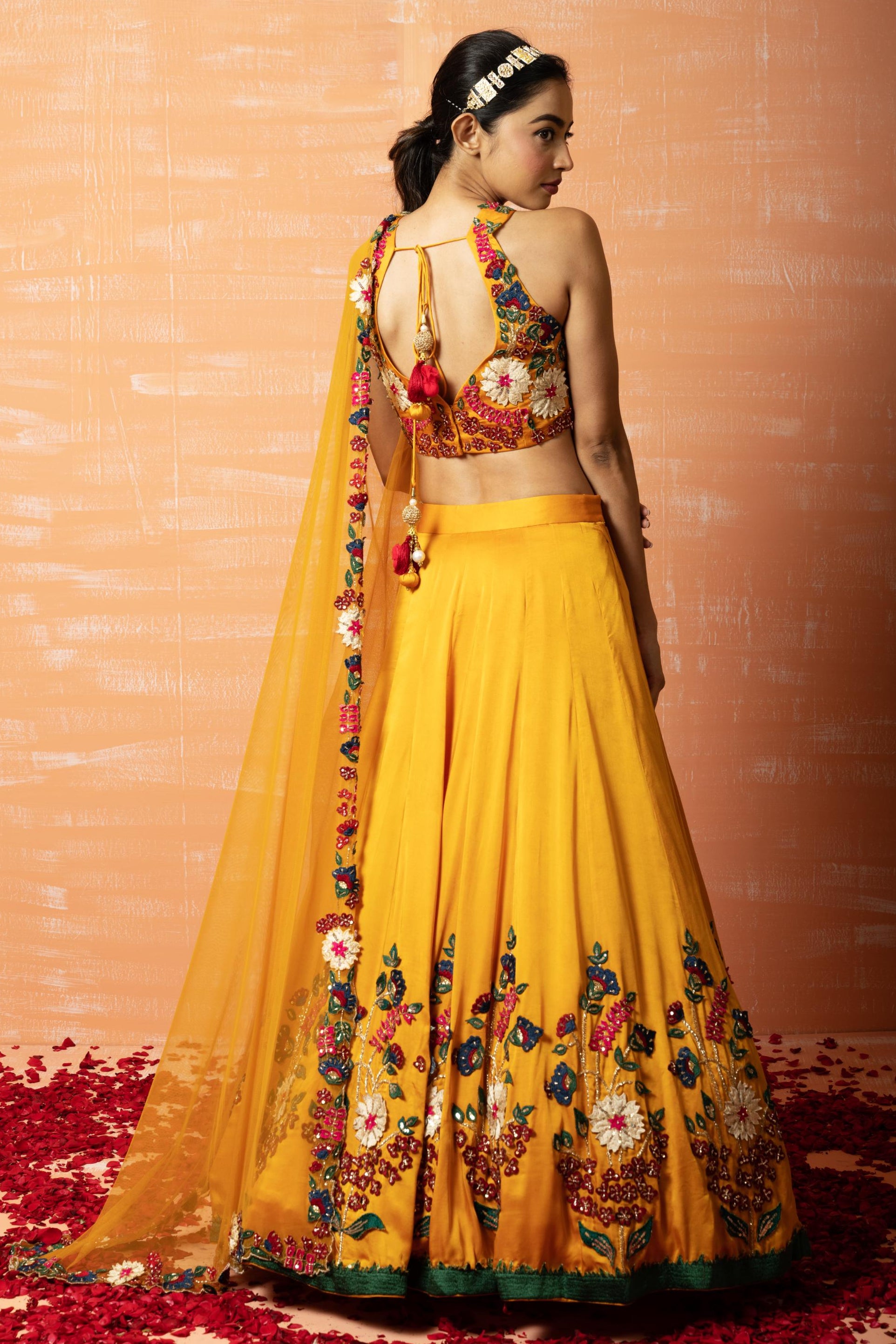 Bright and festive, this lehenga set blends yellow tones with sculpted 3D details. Lightweight movement keeps the lehenga set comfortable through long celebrations. Perfect for haldi or mehendi, this lehenga set adds cheerful vibrance. Elegant structure enhances the lehenga set beautifully. Designed for joyful occasions, this lehenga set flatters effortlessly. A polished, lively finish completes this lehenga set.