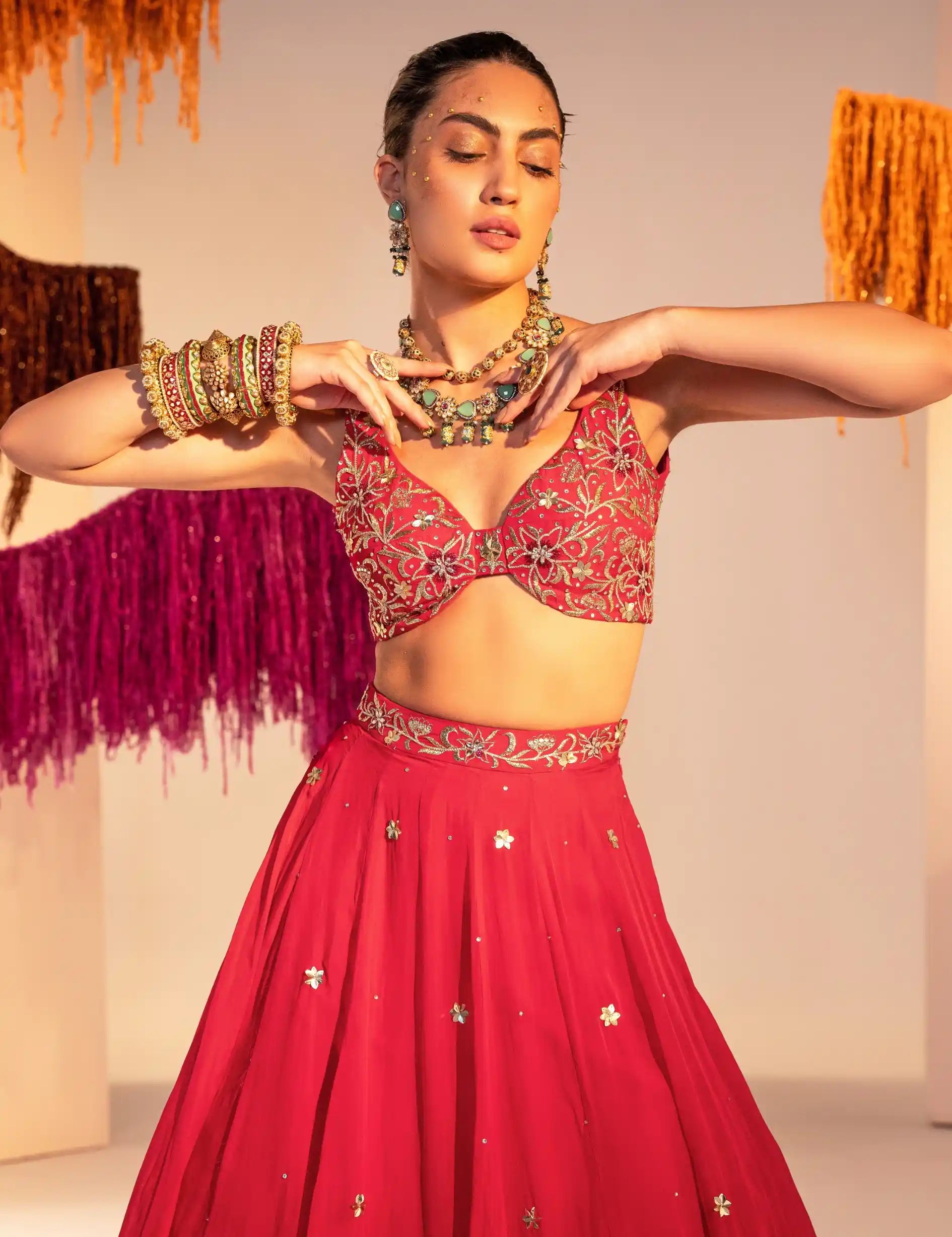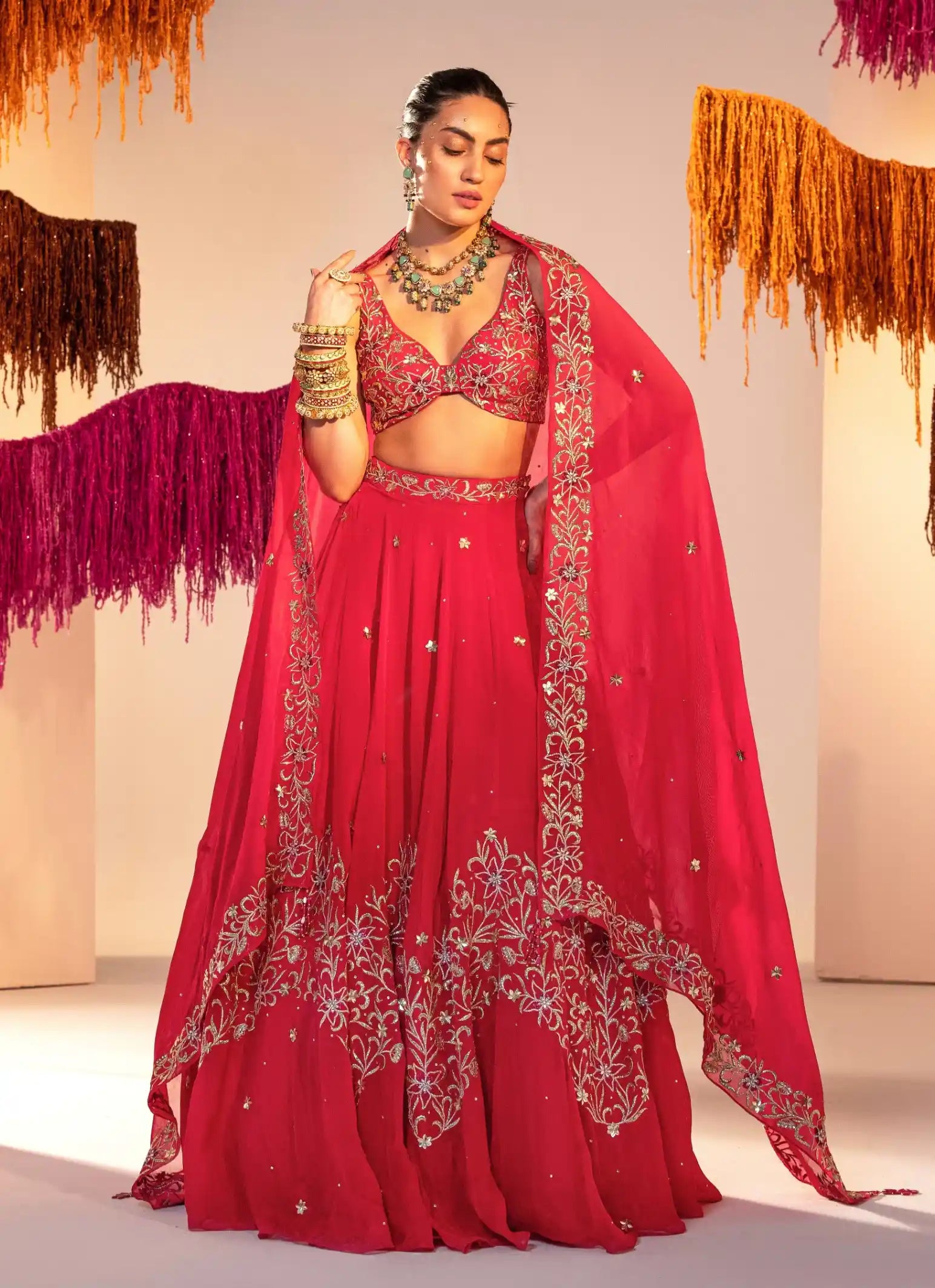 Components: 3 pieces (Lehenga, blouse, dupatta)