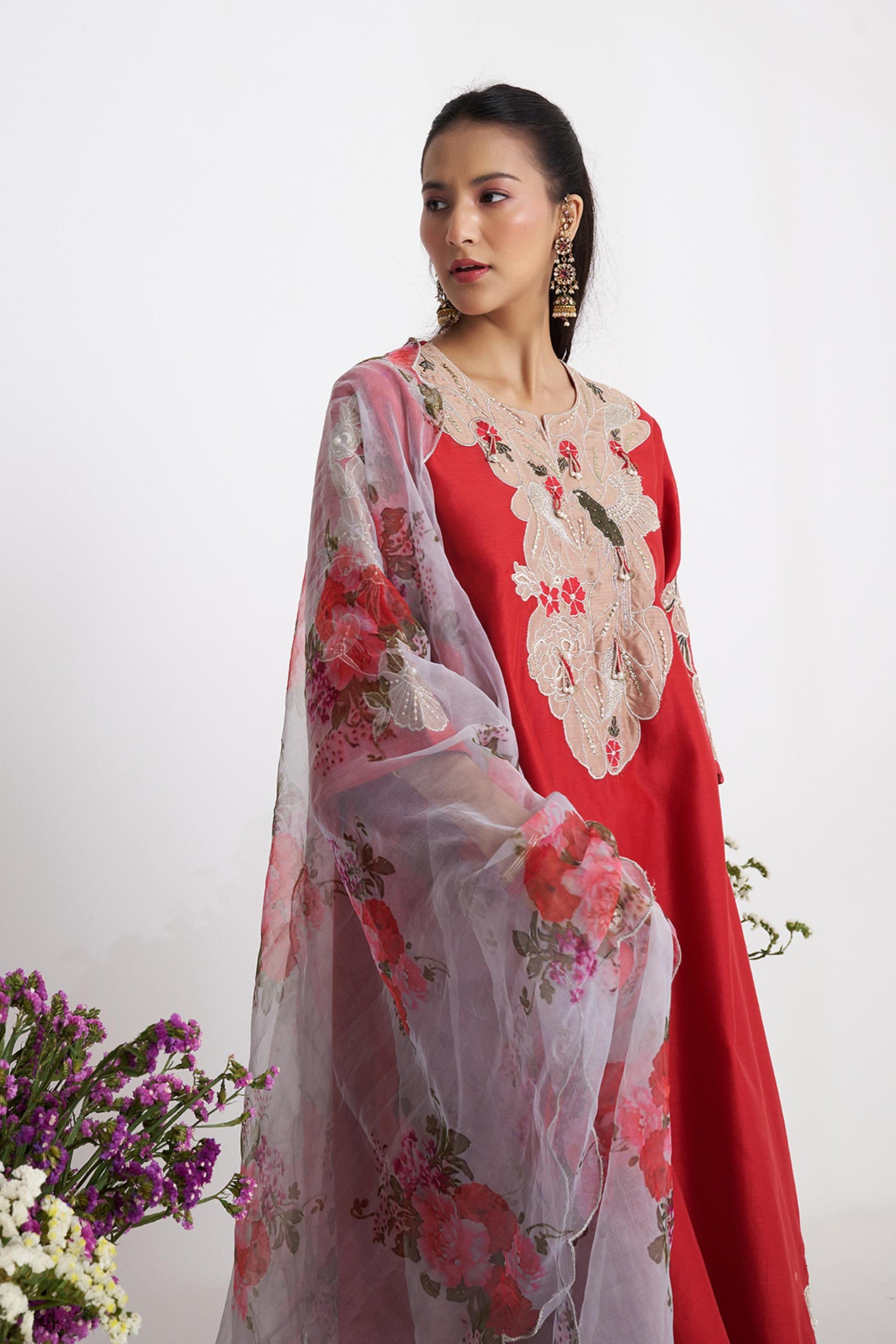 Elegant and timeless, the Red Bootedaar Kurta Set is a graceful nod to traditional Indian craftsmanship. Adorned with delicate booti (motif) embroidery throughout, this rich red ensemble blends intricate detailing with a clean, contemporary silhouette. The kurta is paired with coordinated bottoms and a lightweight dupatta, making it perfect for festive gatherings, intimate celebrations, or wedding functions. The Red Bootedaar Kurta Set brings together heritage artistry and modern ease—ideal for the woman who values culture and sophistication in equal measure.
