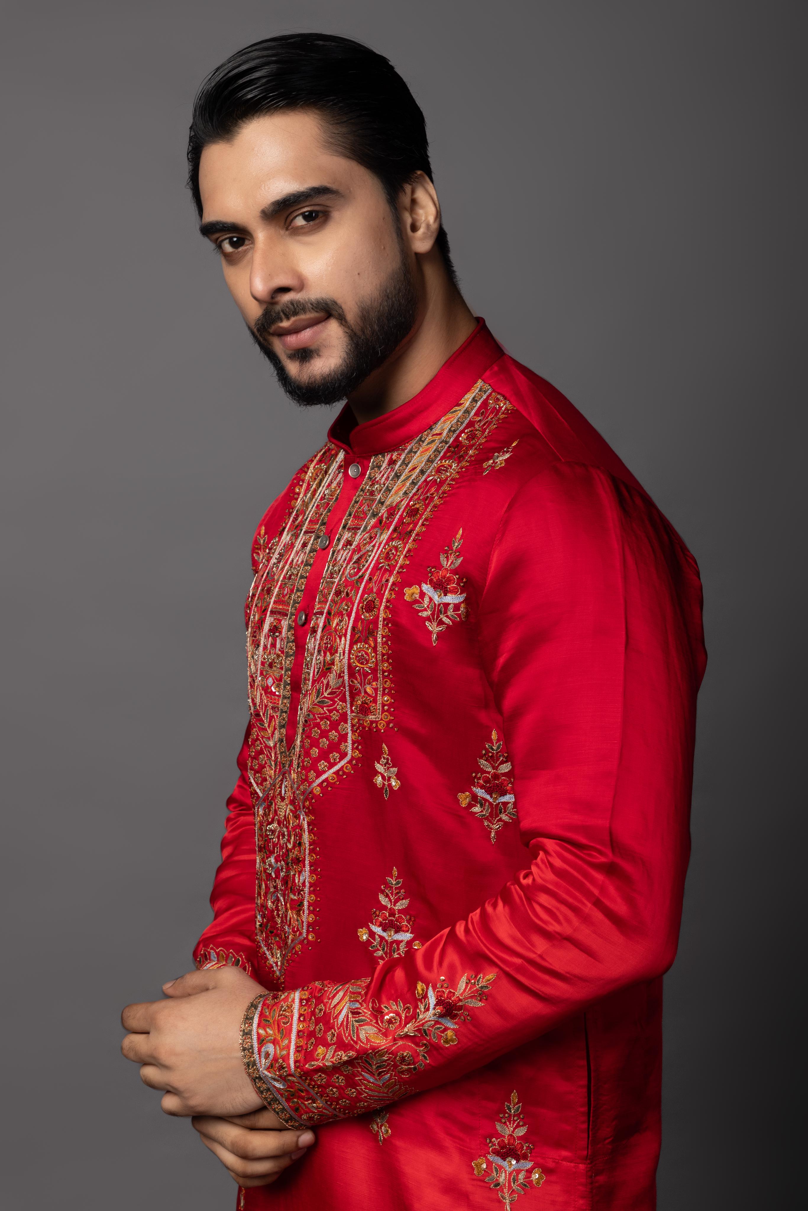 Unleash your inner radiance with the Red Crimson Enamel Kurta Set, a captivating ensemble that fuses boldness and elegance effortlessly. The rich crimson red hue exudes confidence and passion, making this kurta set the perfect choice for weddings, festive celebrations, and formal occasions where you want to stand out with grace and sophistication.