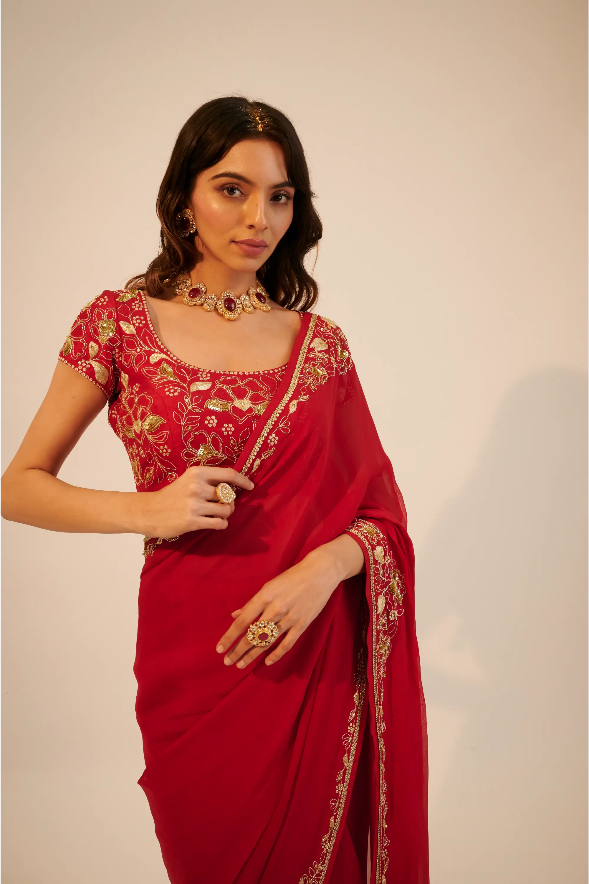 Step into the spotlight with our exquisite red embroidered organza saree, a perfect blend of tradition and contemporary elegance. Crafted from lightweight organza, this saree drapes beautifully, showcasing its intricate embroidery that adds depth and sophistication to the overall look. The accompanying blouse is designed to complement the saree perfectly, featuring delicate details that enhance your silhouette. Ideal for weddings, parties, and special occasions, this ensemble embodies timeless beauty and grace. Make a lasting impression with this stunning outfit that highlights your unique style and appreciation for fine craftsmanship.