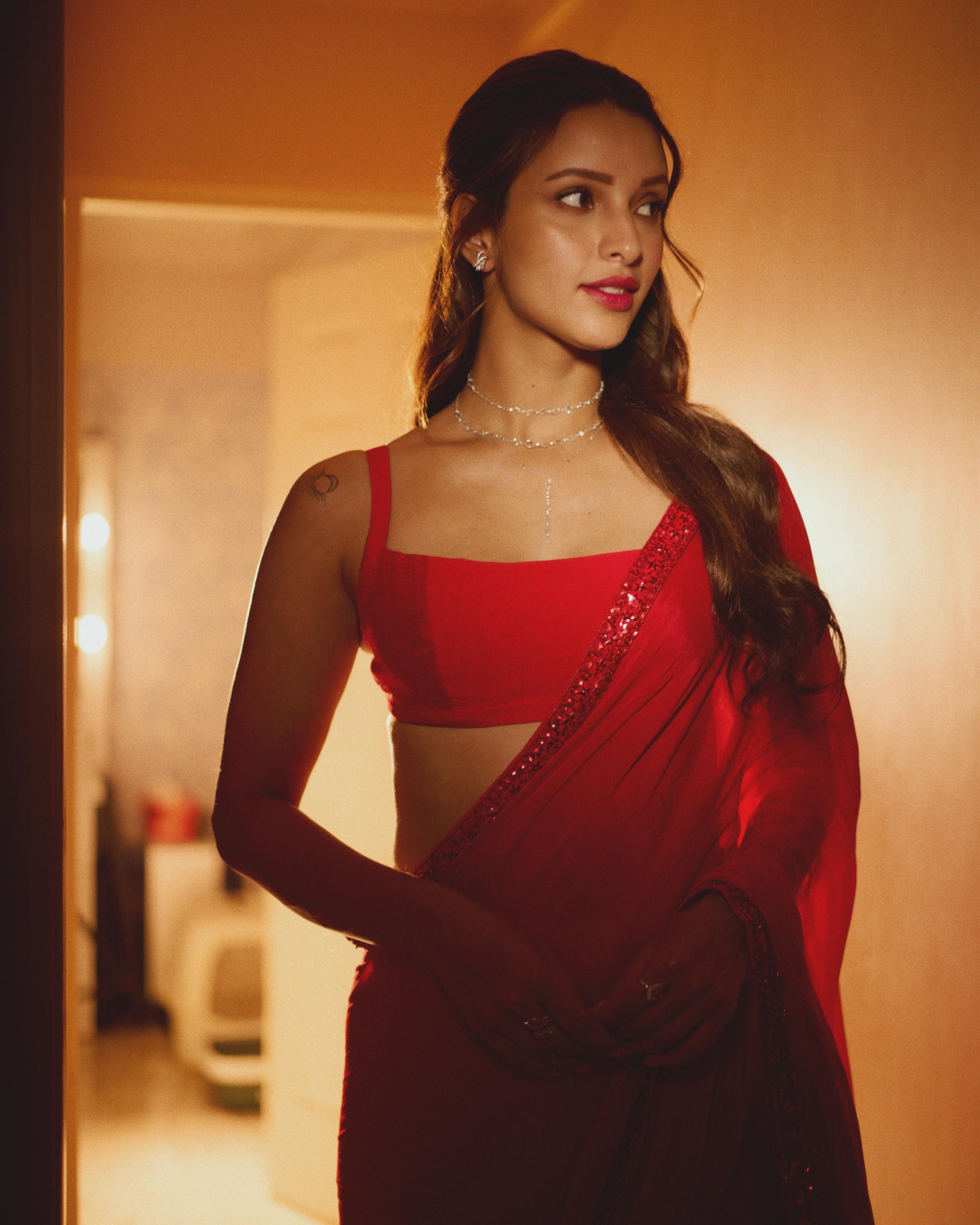 Unleash timeless elegance with the Red Fire Star Saree Set, a stunning ensemble that combines tradition with modern flair. This vibrant red saree features intricate detailing that sparkles like a star, adding a touch of glamour and sophistication to any occasion. Perfect for weddings, festive celebrations, or special events, this saree set will make you the center of attention. The luxurious fabric drapes beautifully, ensuring both comfort and style, while the bold red color exudes confidence and grace. Elevate your festive wardrobe with this eye-catching saree that embodies elegance and modern charm.