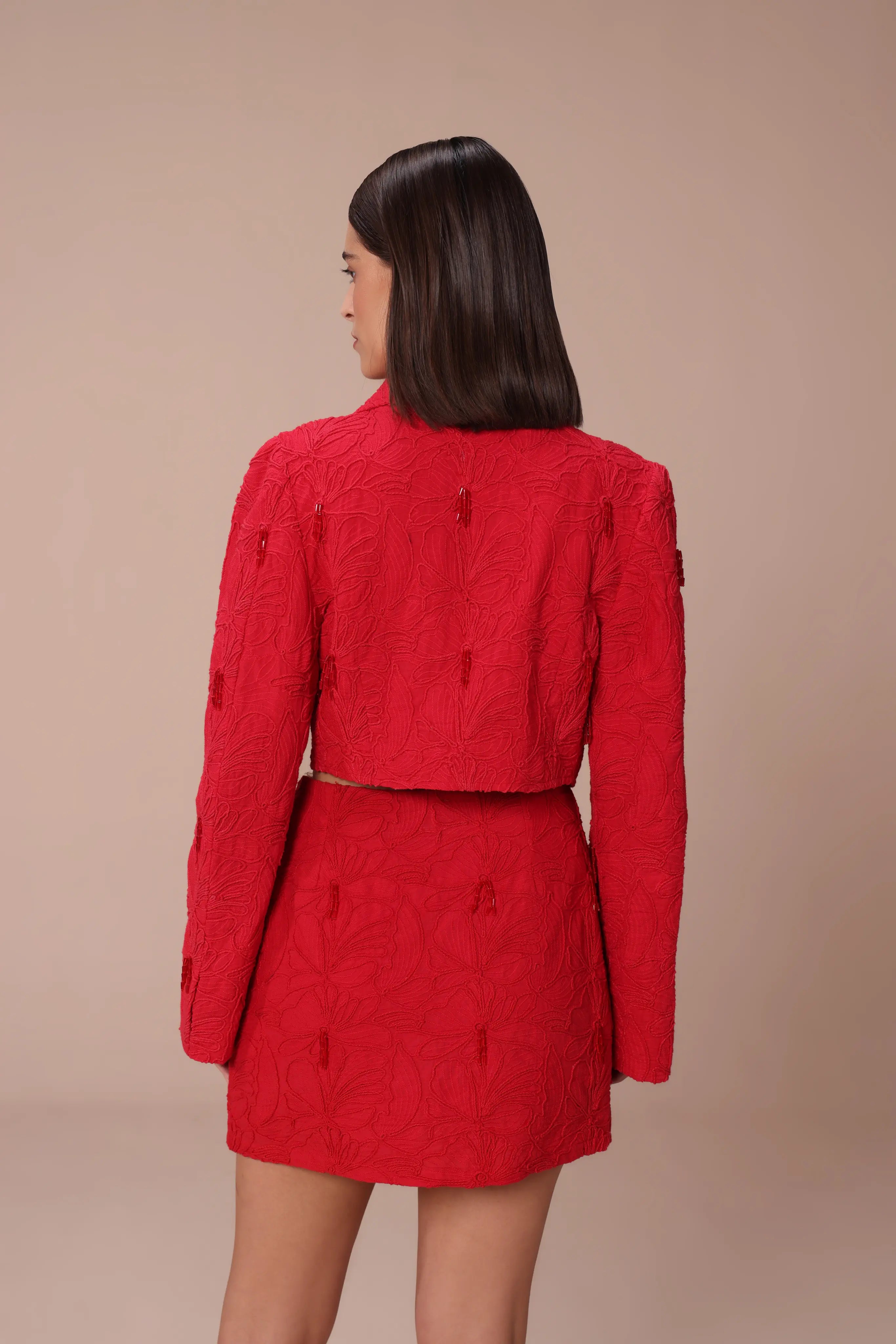 Step into a world of bold beauty and intricate craftsmanship with our Red Floral Embroidered Cropped Co-Ord Set. This stunning two-piece ensemble features a vibrant red hue and delicate floral embroidery, bringing together elegance and modern flair. The cropped top, adorned with detailed floral stitching, beautifully complements the high-waisted, tailored pants for a flattering, feminine silhouette. Perfect for everything from a garden party to a night out, this set adds a touch of sophistication and charm to any occasion. Crafted from premium materials, the set combines comfort with high-fashion appeal, making it a must-have for any wardrobe.