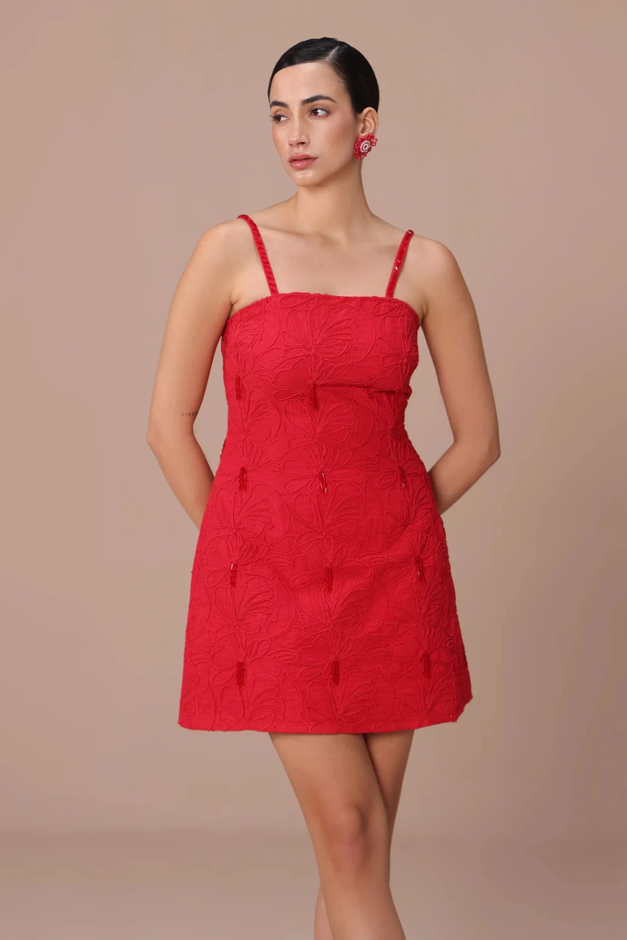 The Red Floral Embroidered Dress combines bold, vibrant red fabric with intricate floral embroidery, creating a stunning, eye-catching look. Featuring delicate flower patterns that add texture and dimension, this dress exudes femininity and charm. Ideal for weddings, parties, or evening events, the dress offers a flattering silhouette that enhances your natural shape. Perfect for those seeking a stylish yet sophisticated outfit, this red floral embroidered dress is a timeless addition to any wardrobe.