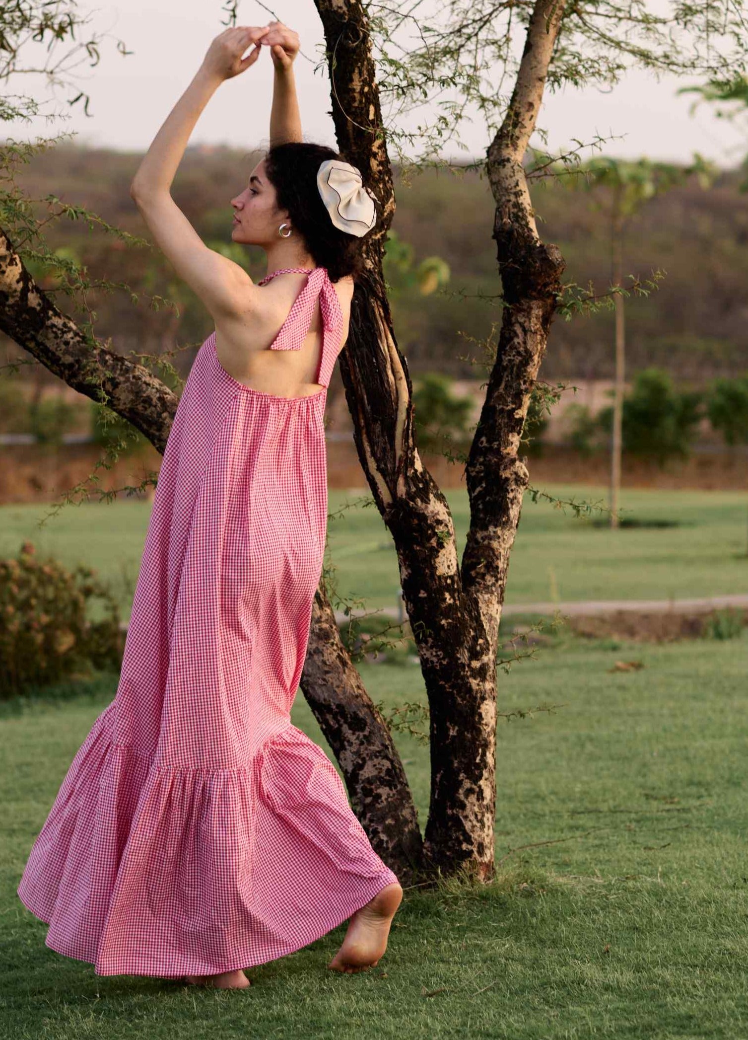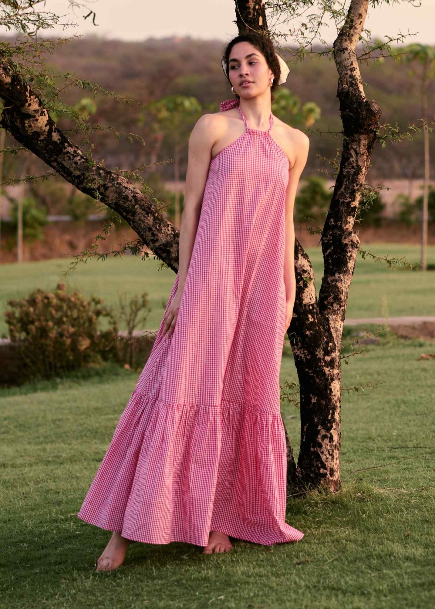 Introducing the Birds of Paradise Halter Neck Dress, crafted from yarn-dyed Madras cotton checks. This sophisticated dress features a flattering halter neck design, highlighting its classic Madras checks pattern. Perfect for both casual and semi-formal occasions, the Birds of Paradise Dress blends traditional charm with contemporary style, offering a chic and comfortable option for any event.
