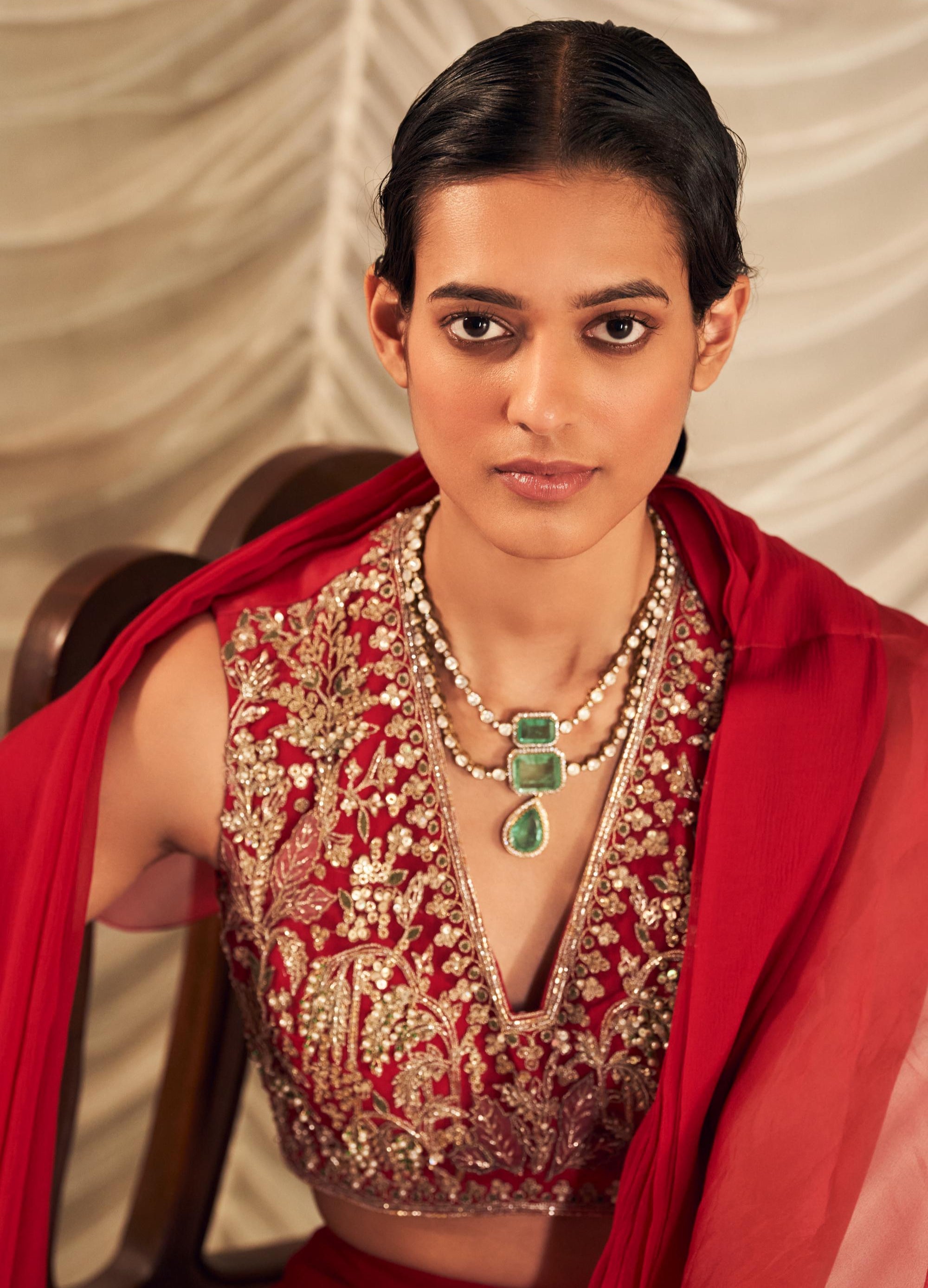 Embrace timeless elegance with the Red Naeem Hunar Saree Set, a perfect blend of bold color and intricate craftsmanship. Designed in a striking red hue, this saree features delicate detailing and a graceful drape that enhances its traditional beauty. Ideal for weddings, festive occasions, and cultural celebrations, this set ensures you make a statement of sophistication and confidence. Celebrate the season with radiance and charm in this exquisite saree set.